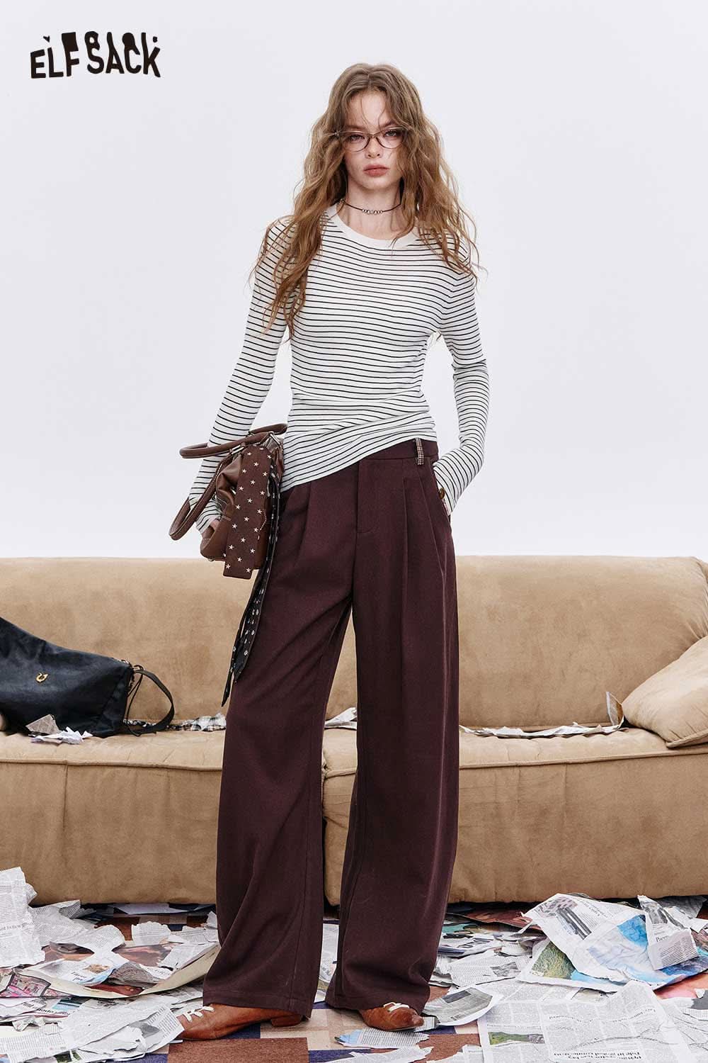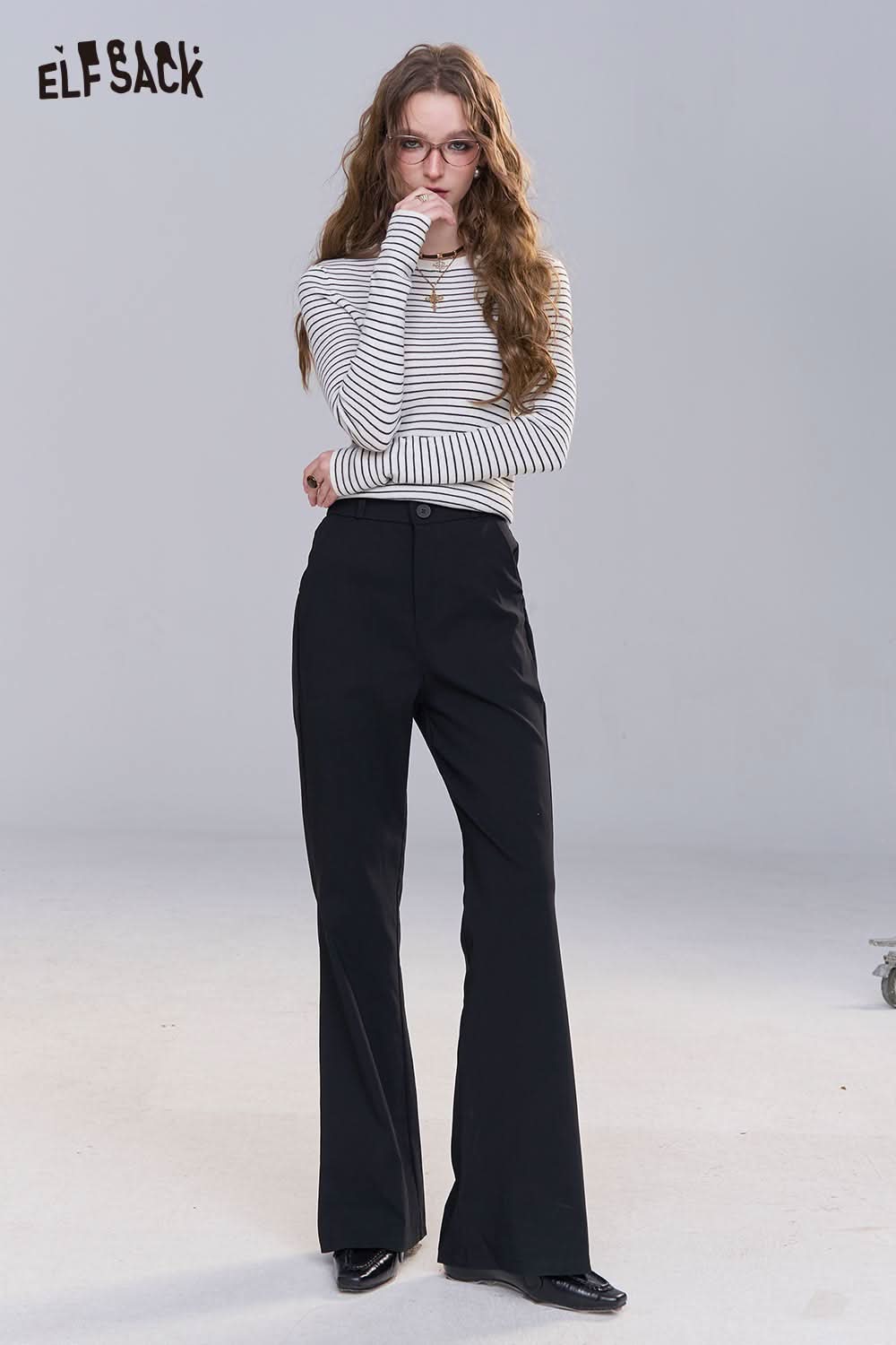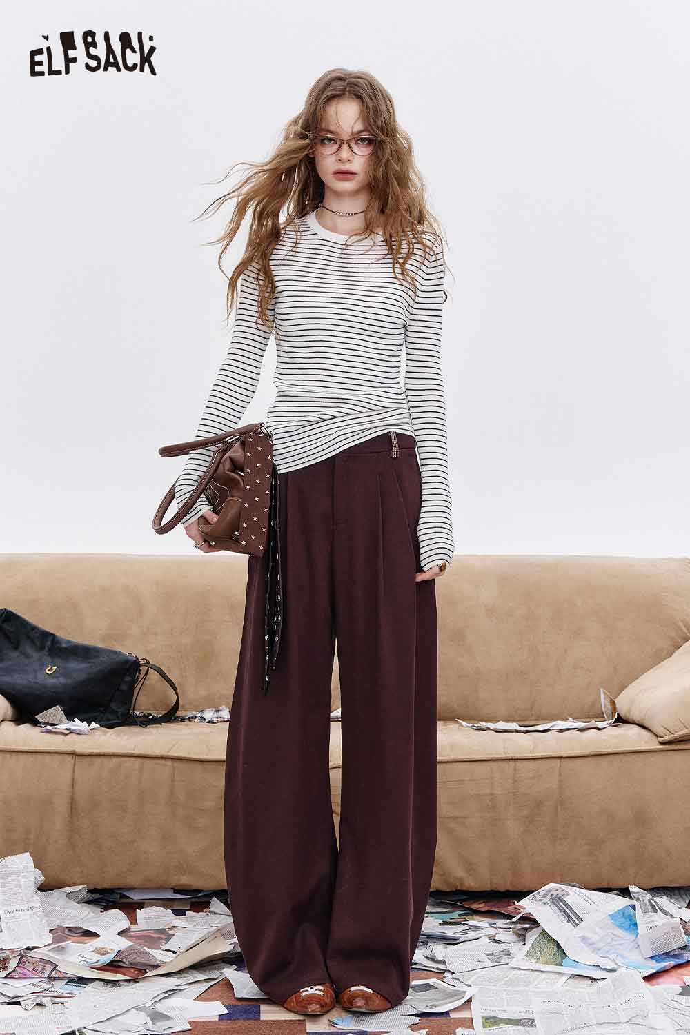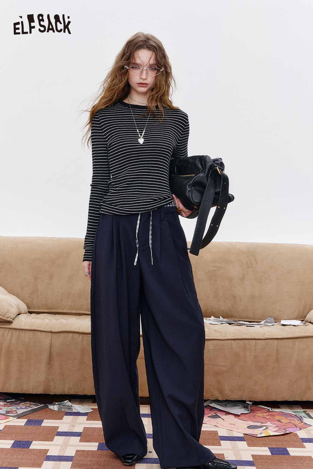 Breathable Cotton Blend Striped Design Essential Basic Long Sleeve Top