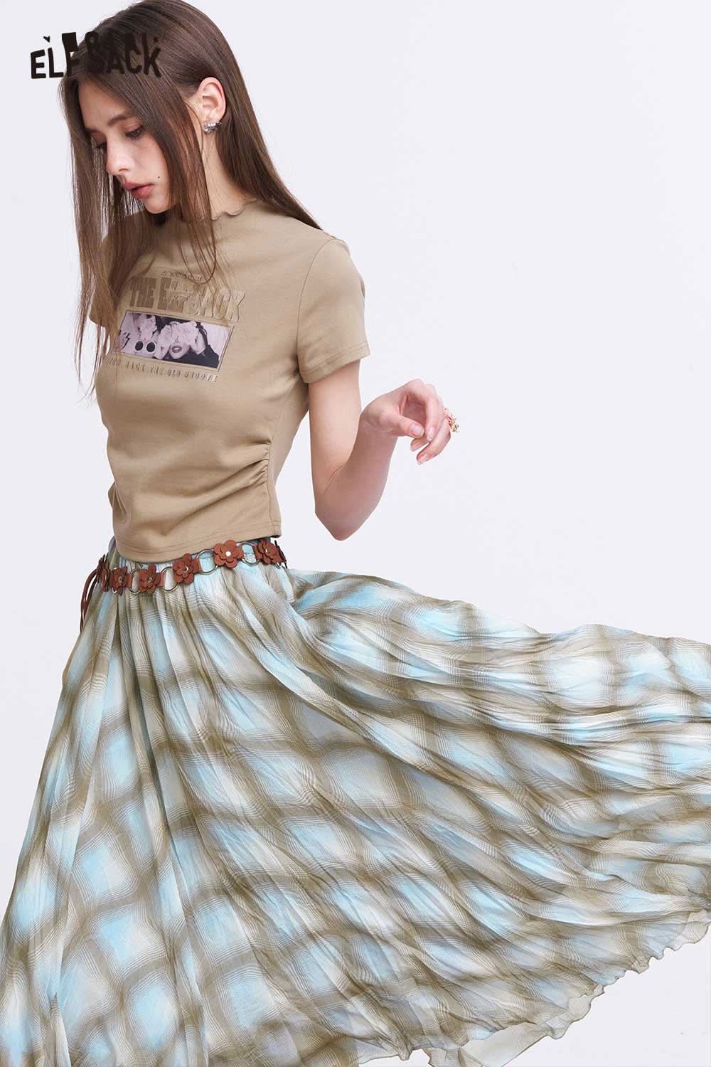 プレッピーなチェック柄フェイクベルトディテールプリーツショートスカート