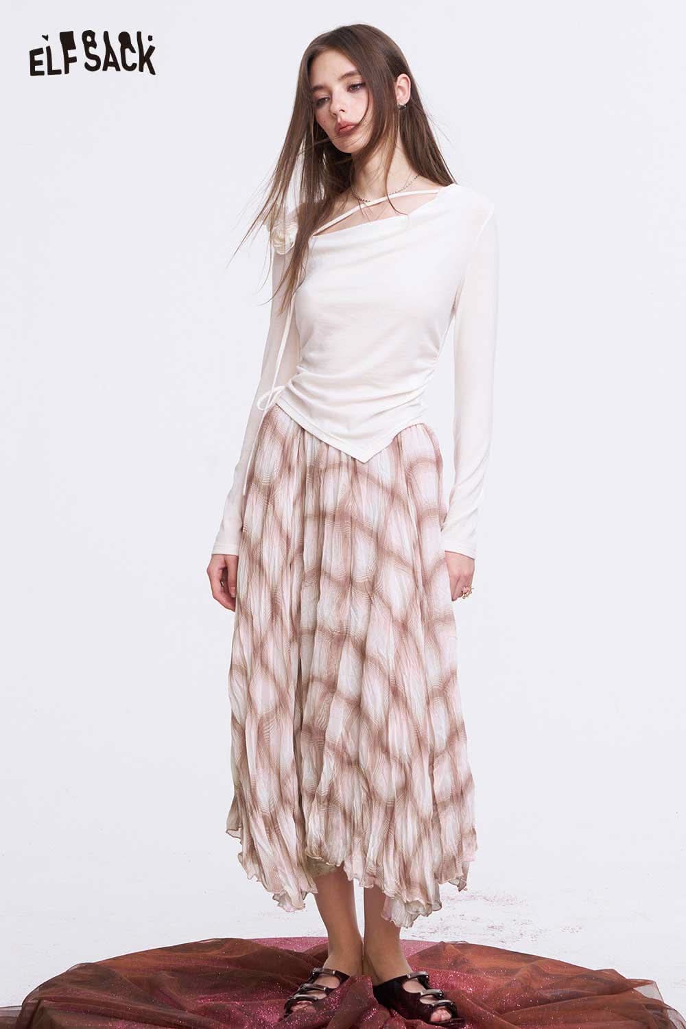 Spring High-Waist A-Line Print Irregular Beach Vacation Style Fashion Long Skirt