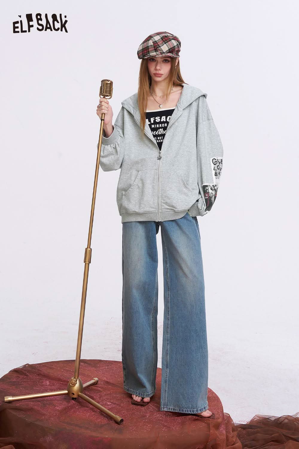 オリジナルガールズプリントミドル丈フード付きライトジャケットレディースゆったりアウターウェア