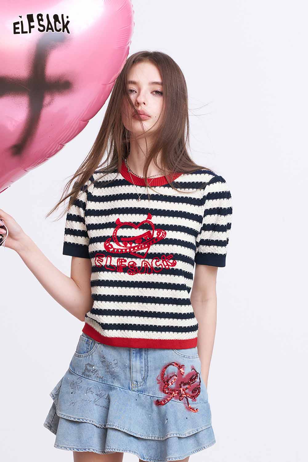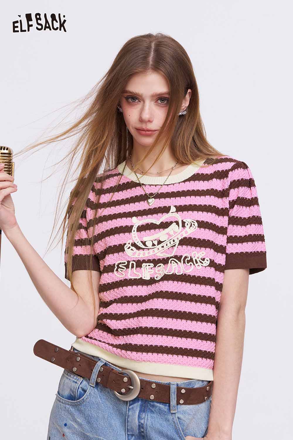 Y2K Striped Knit T-Shirt