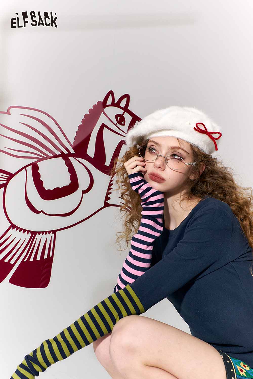 ELFSACK color block stripe sleeve t-shirt styled with a quirky hat and long striped sleeves