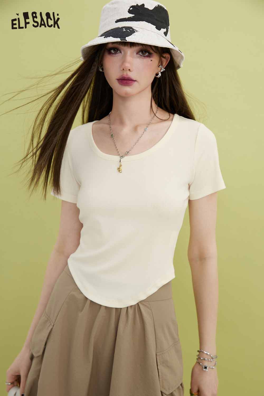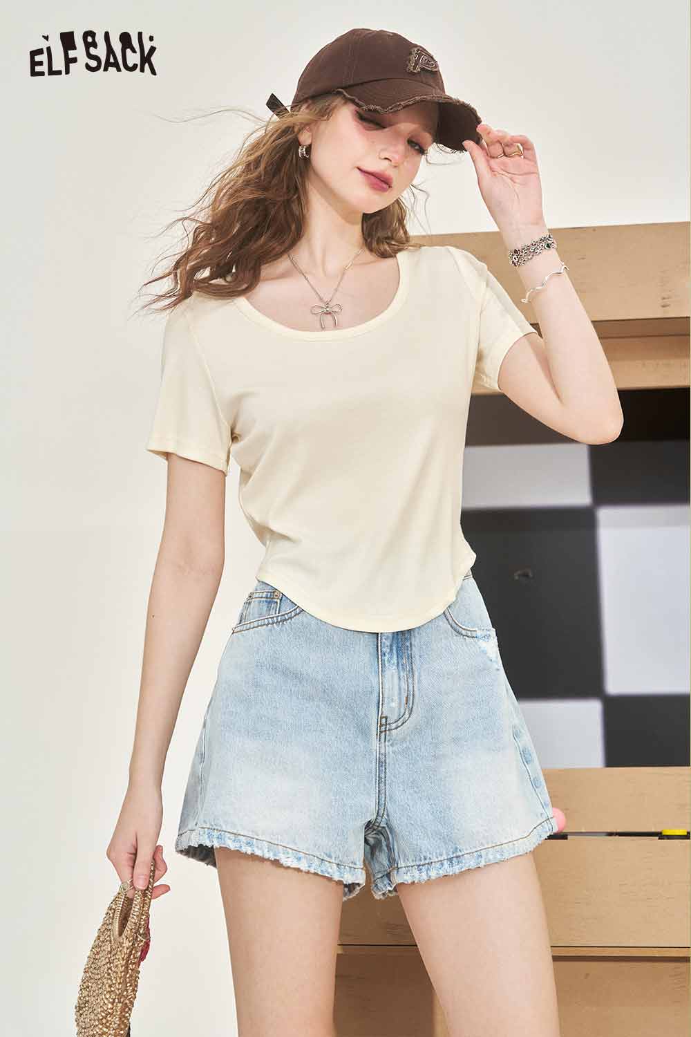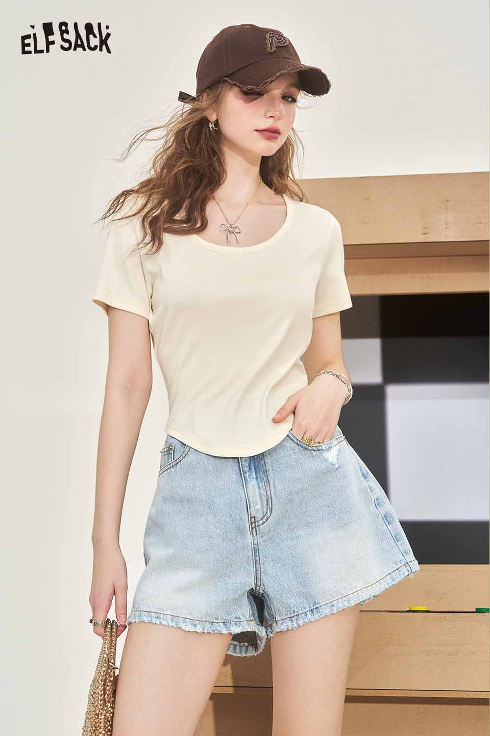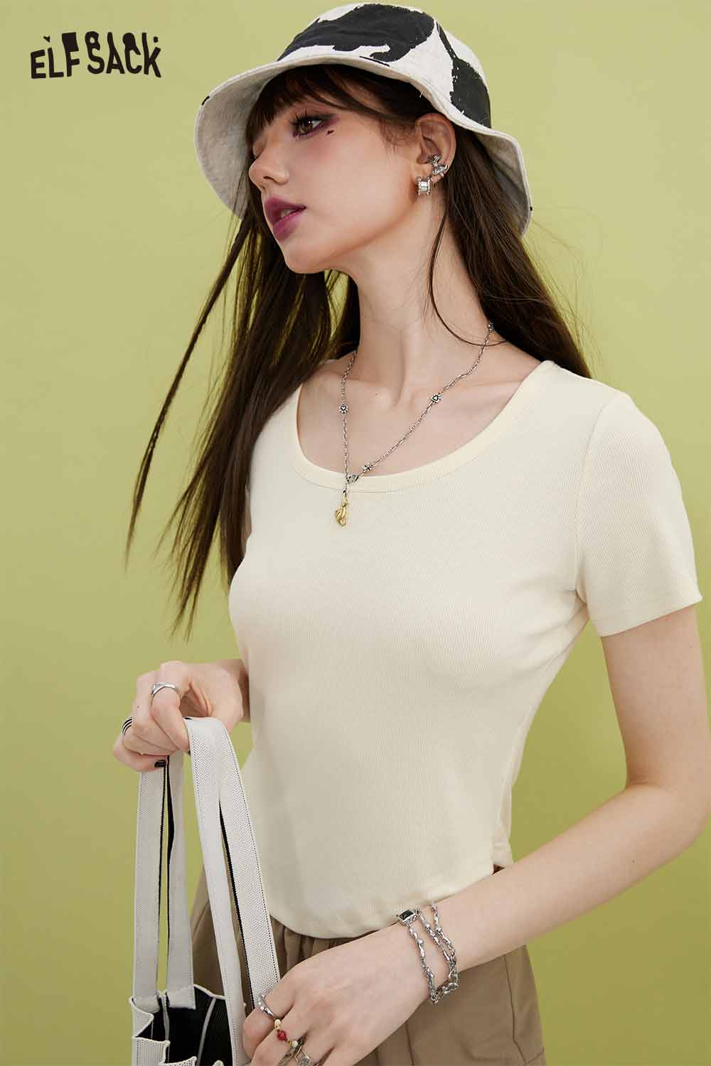 Minimalist Solid U Neck Slim Fit Short Sleeve Tshirt