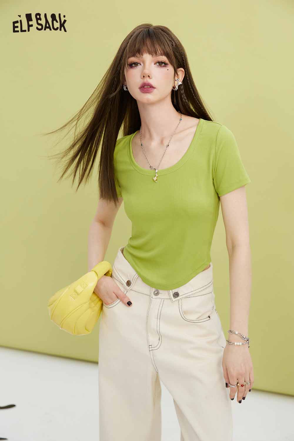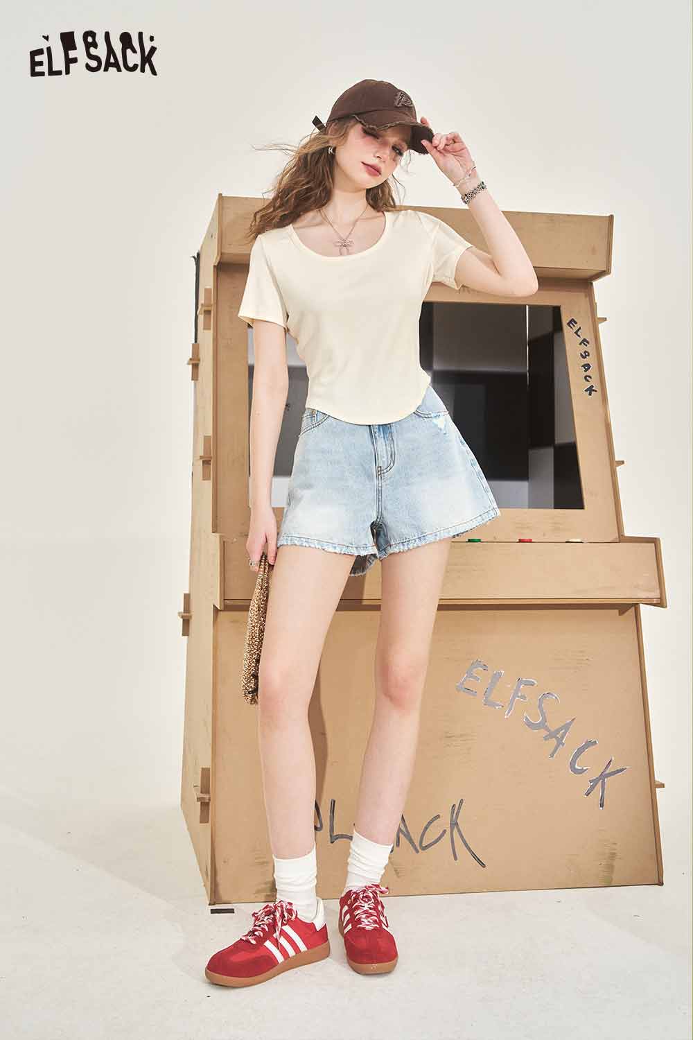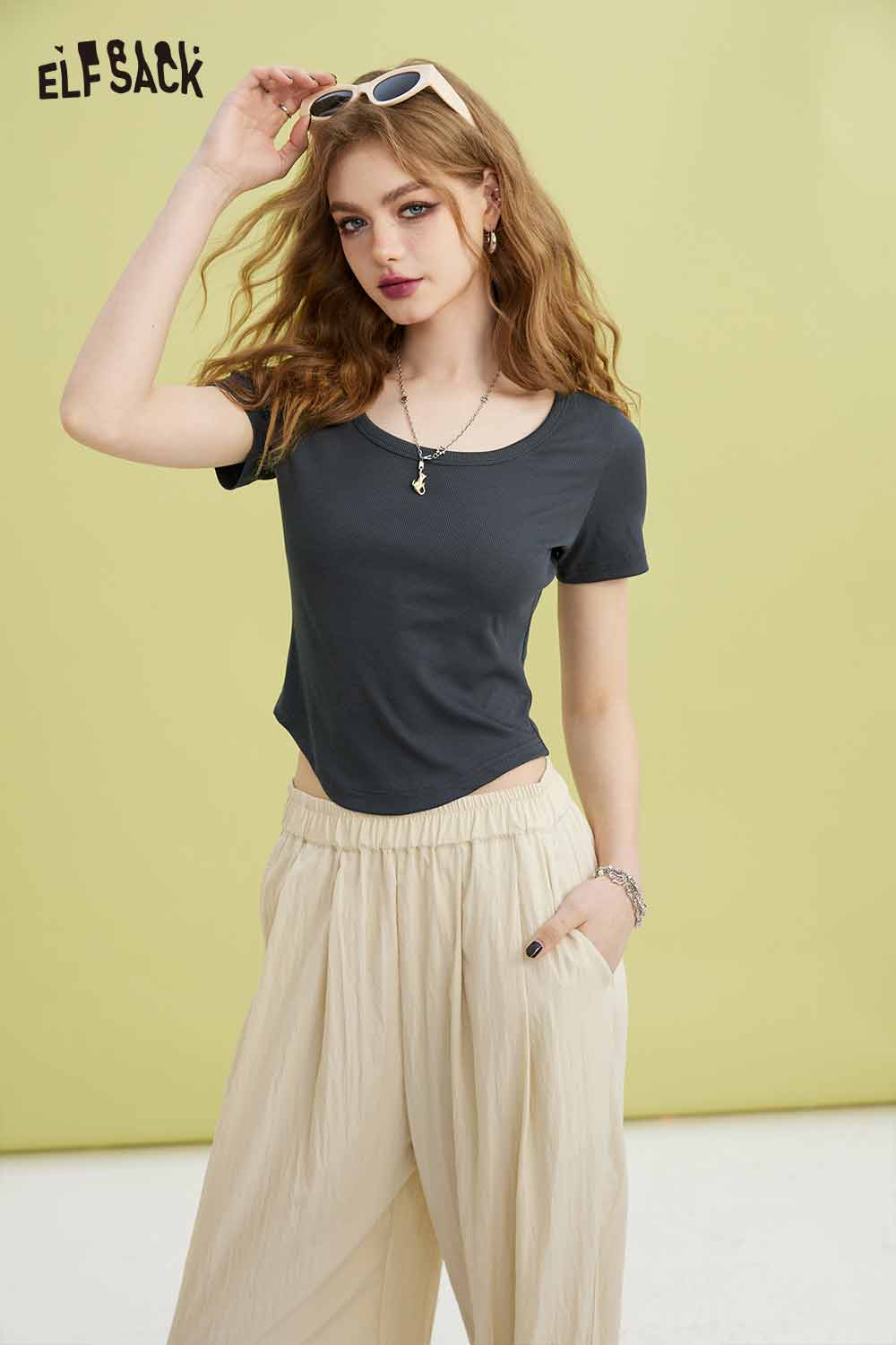Minimalist Solid U Neck Slim Fit Short Sleeve Tshirt