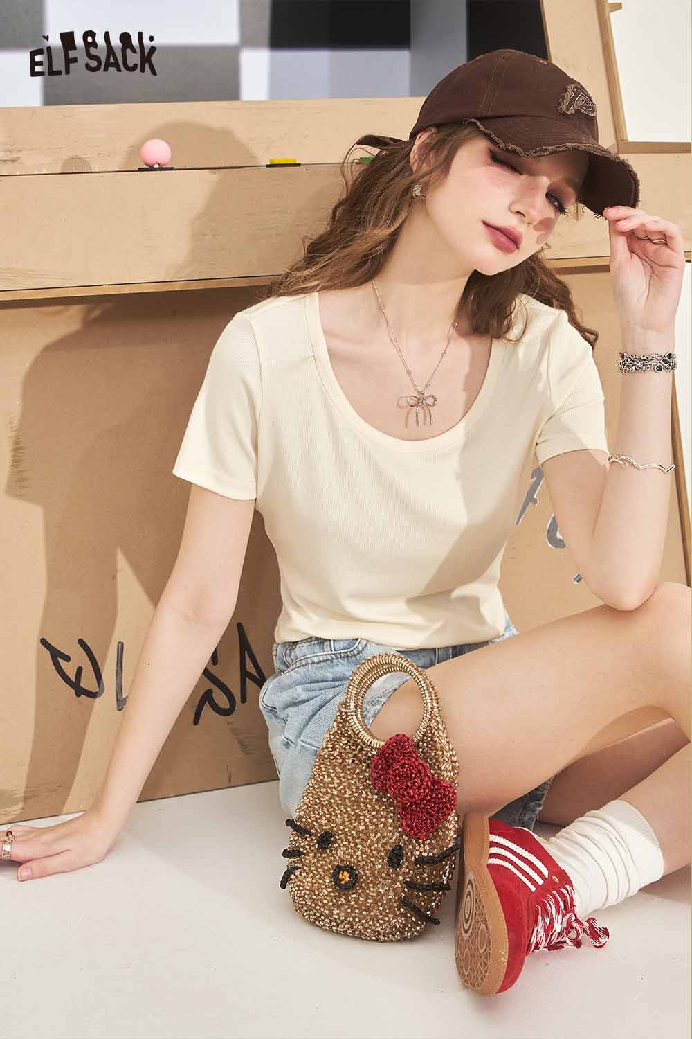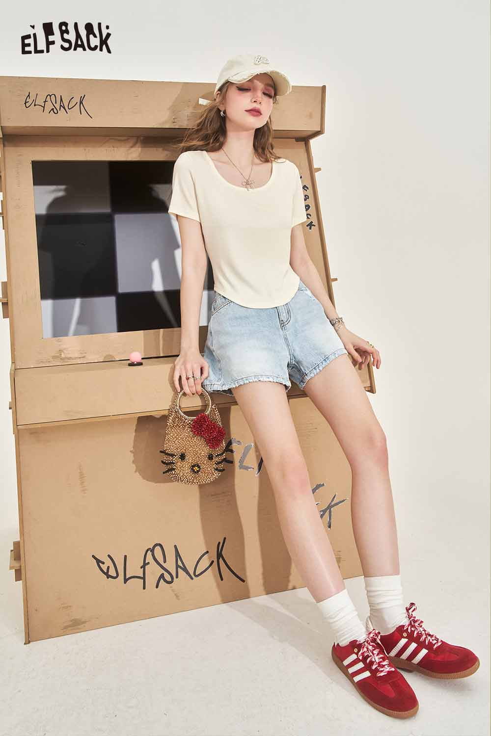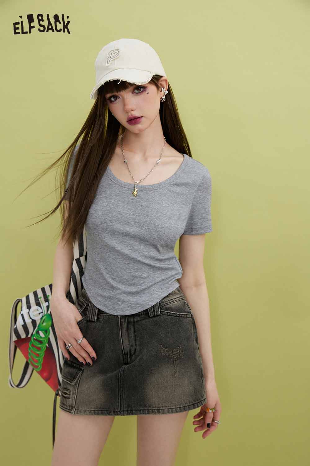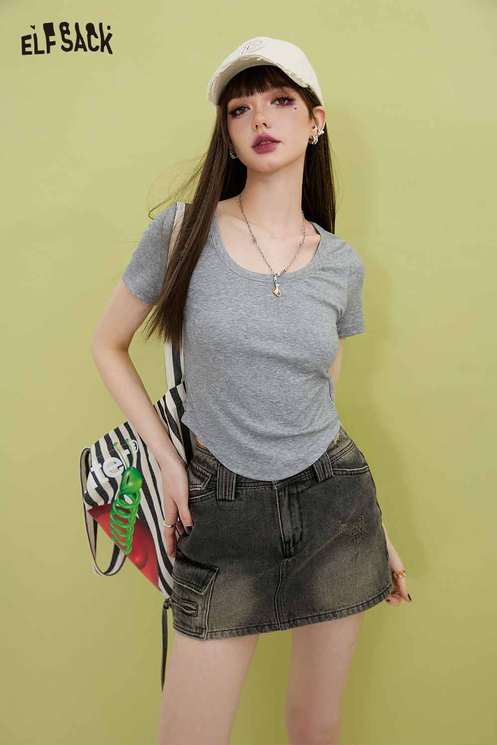 Minimalist Solid U Neck Slim Fit Short Sleeve Tshirt