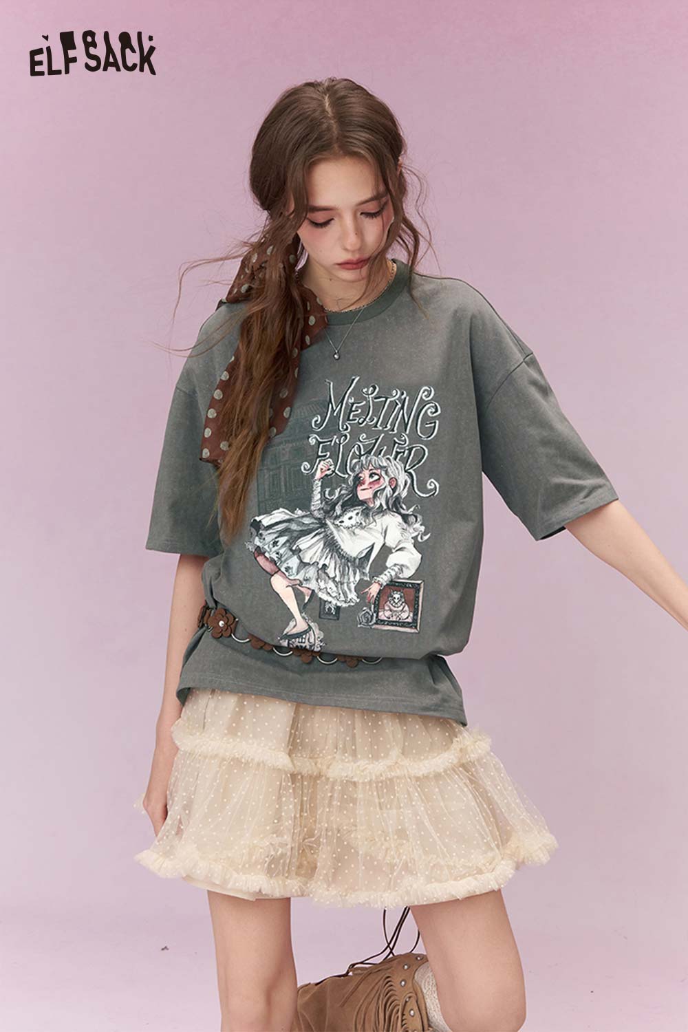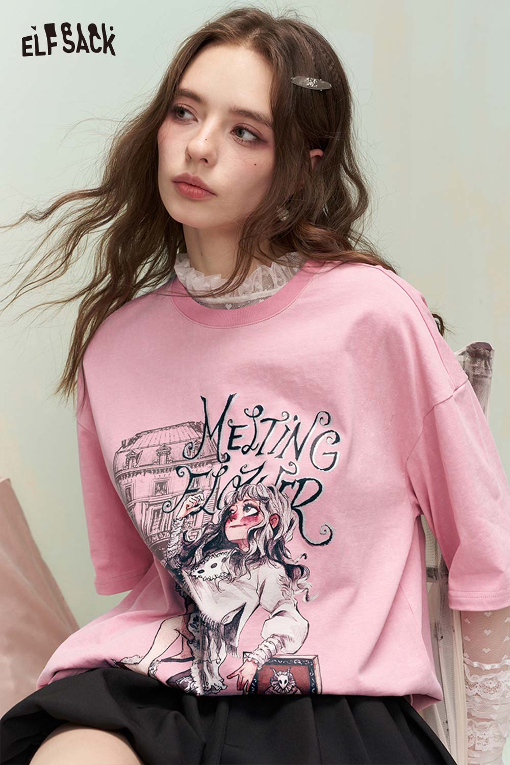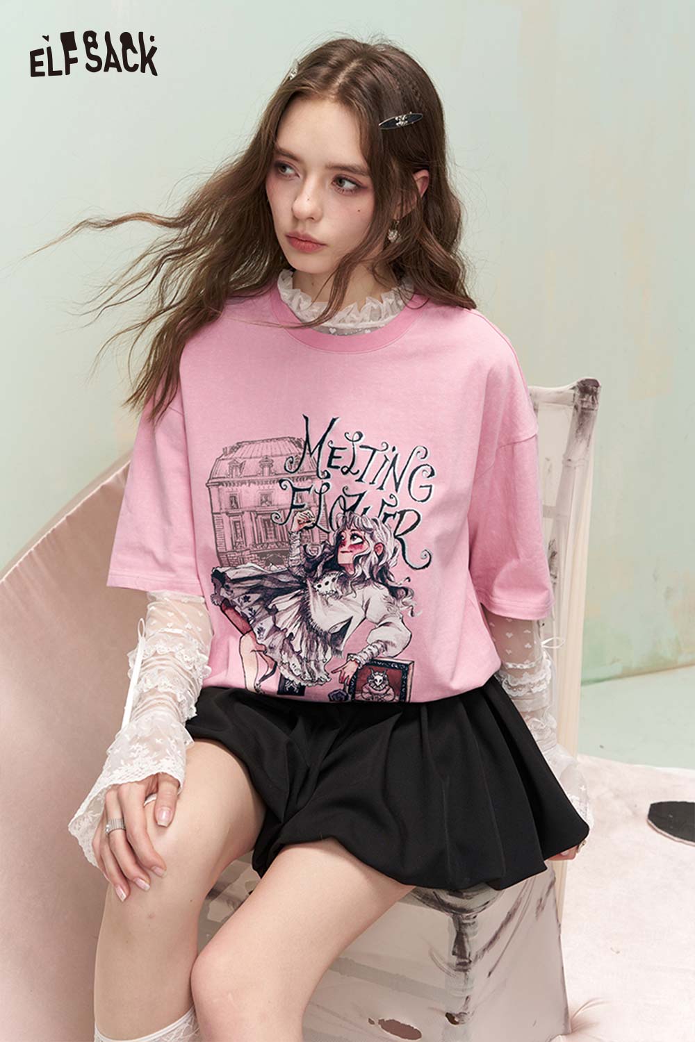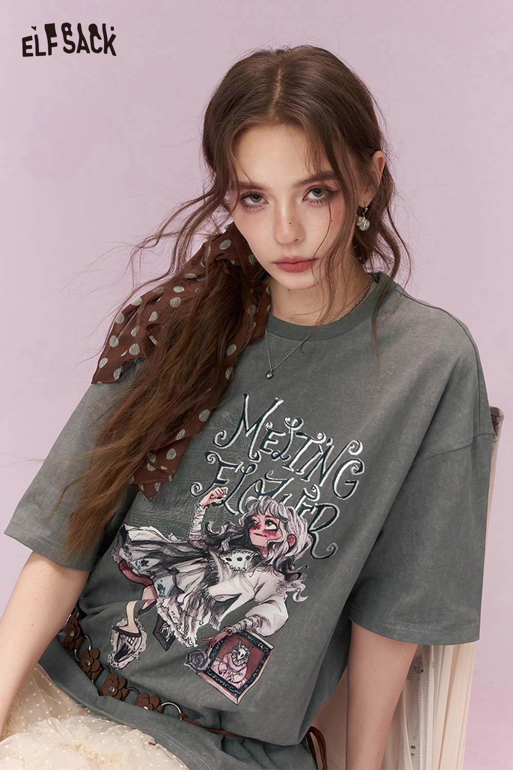 Shiny Glitter Graphic Tshirt with Silver Foil Print
