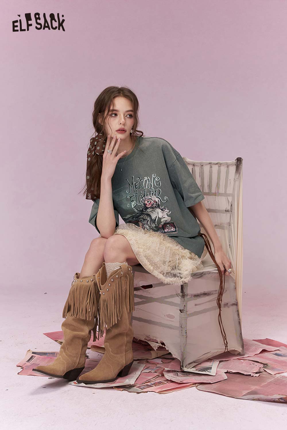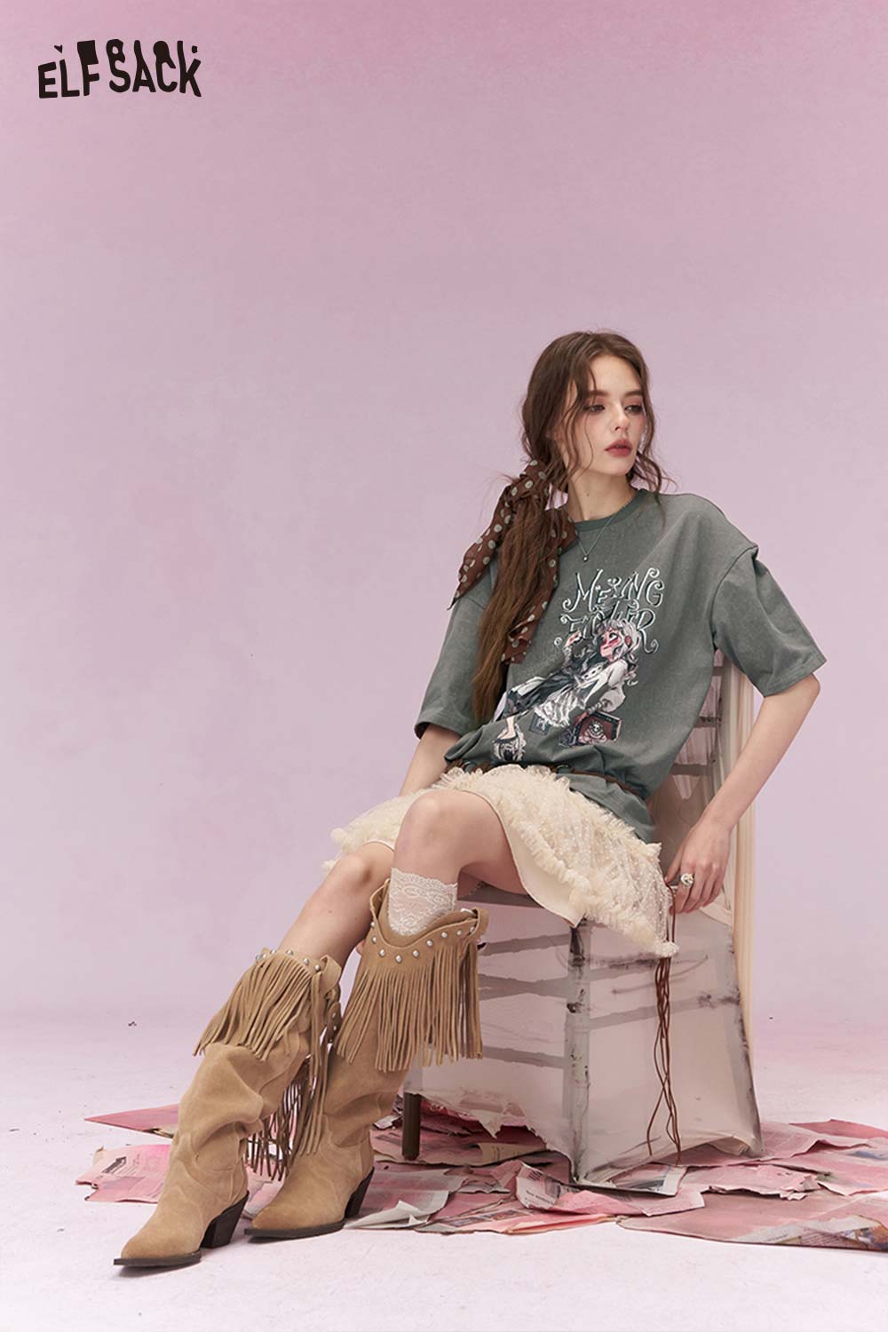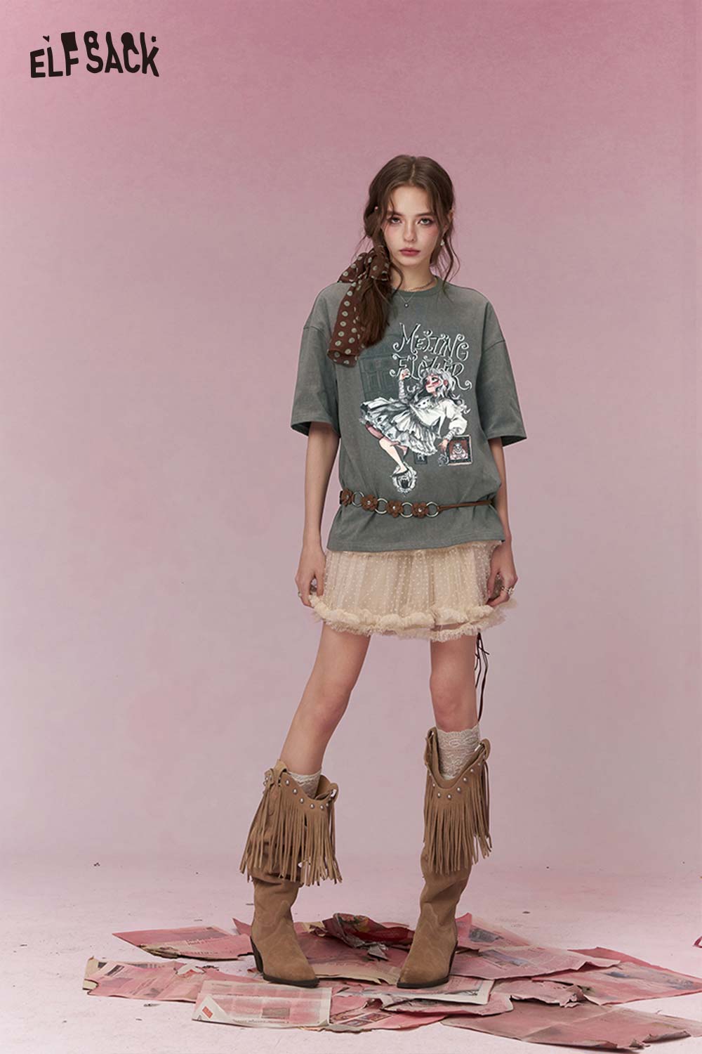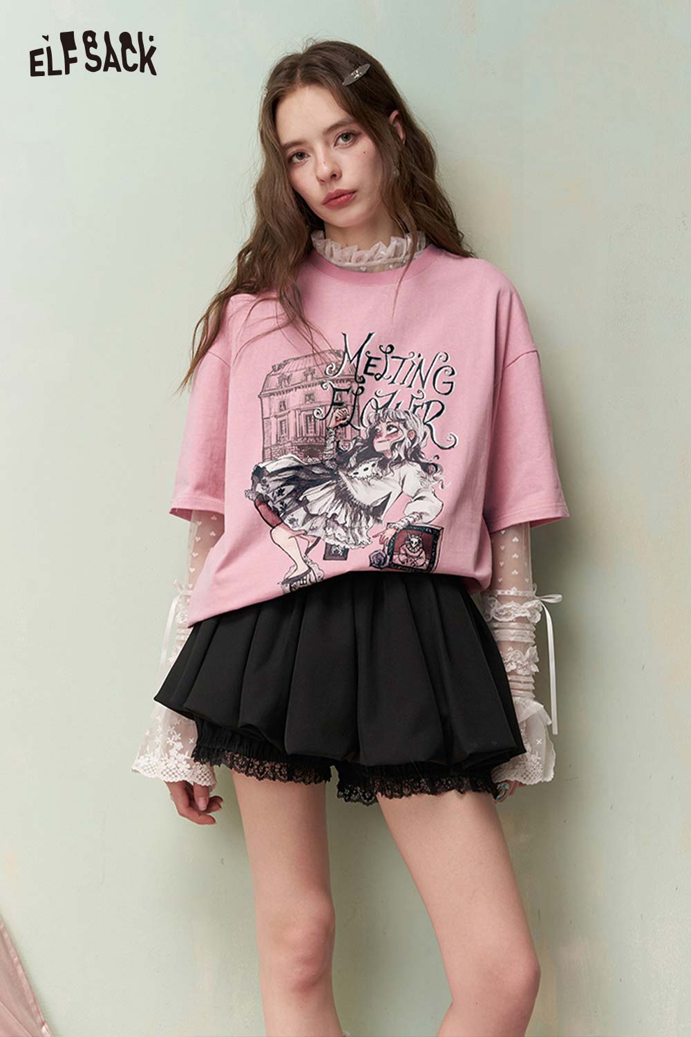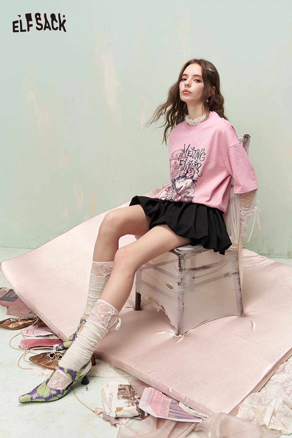 Shiny Glitter Graphic Tshirt with Silver Foil Print