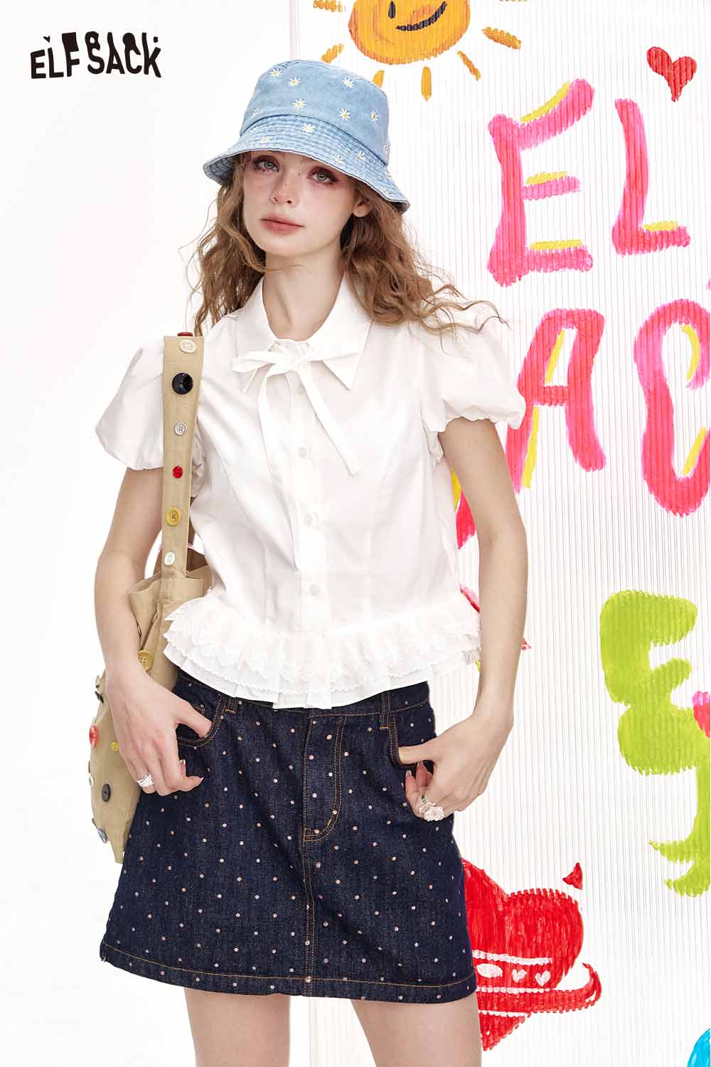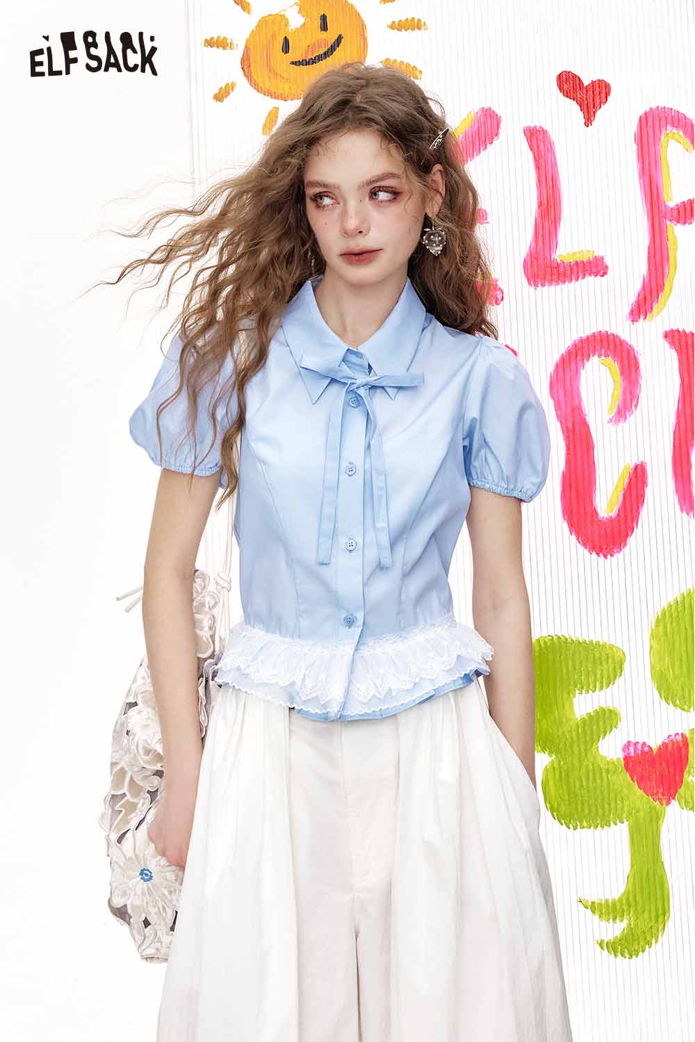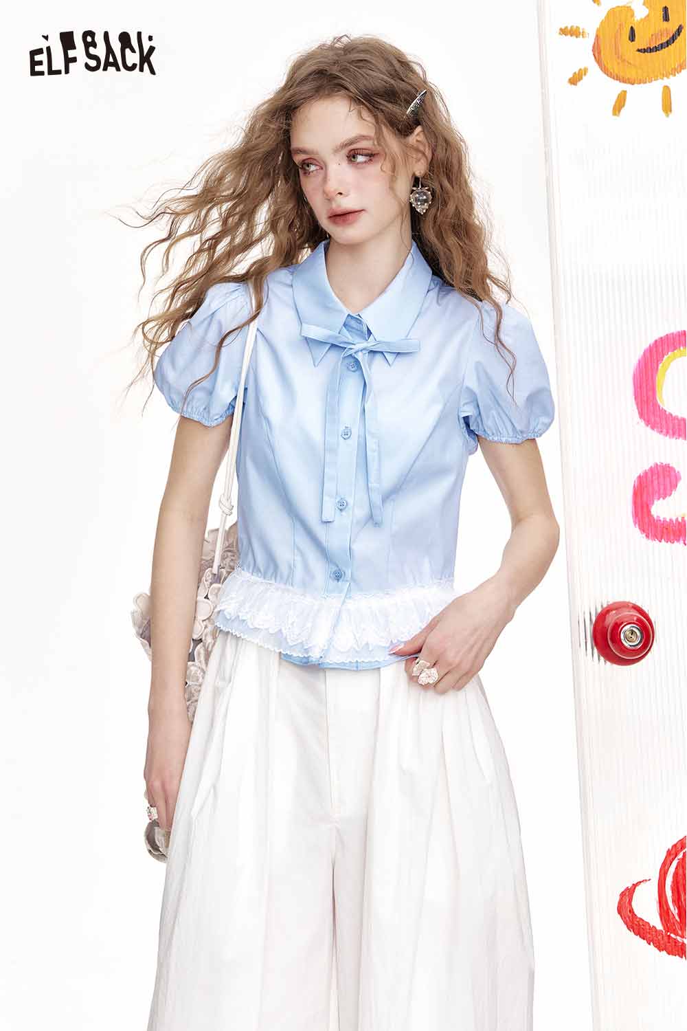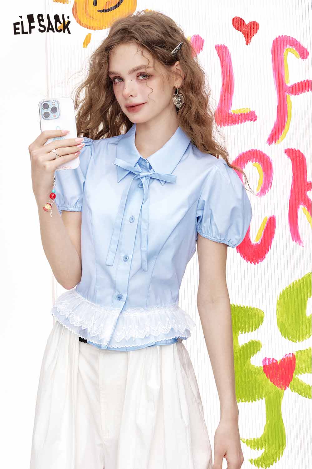 Cute Puff Sleeve Lace Lyocell Sweet Blouse