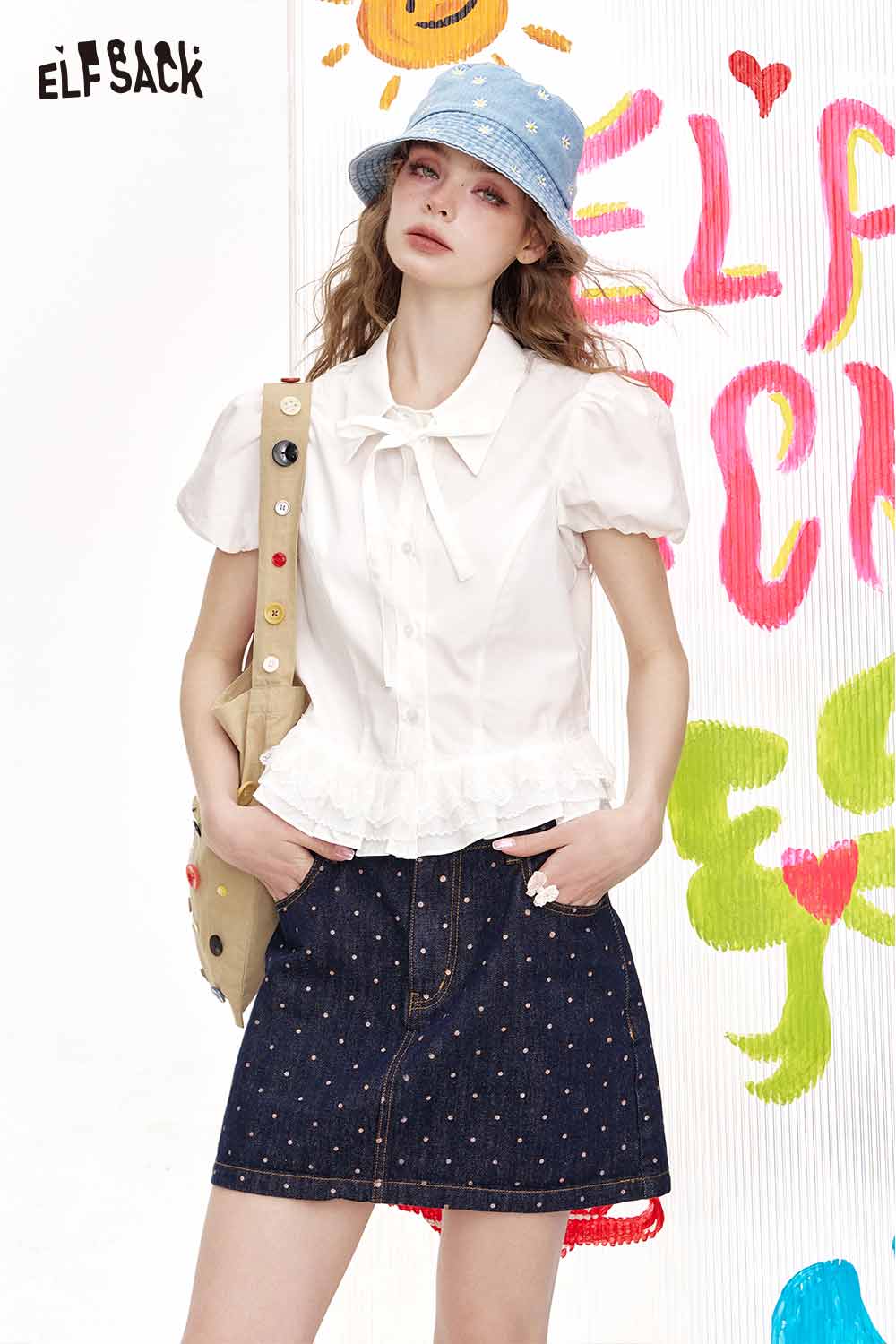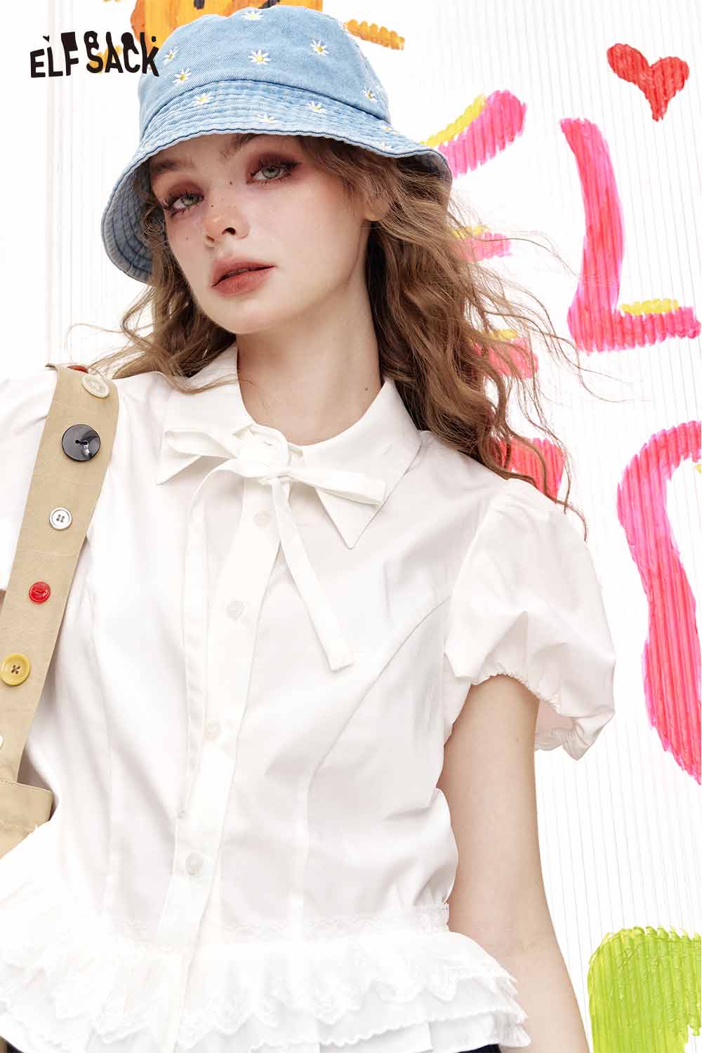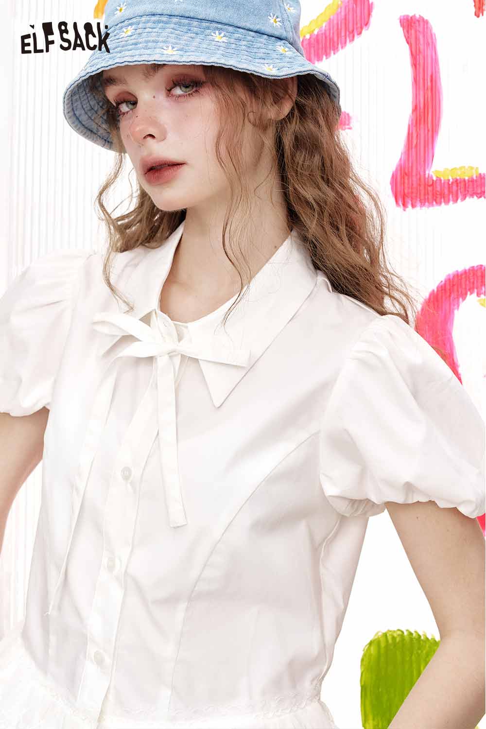 Cute Puff Sleeve Lace Lyocell Sweet Blouse