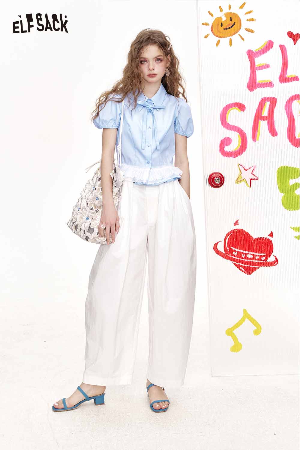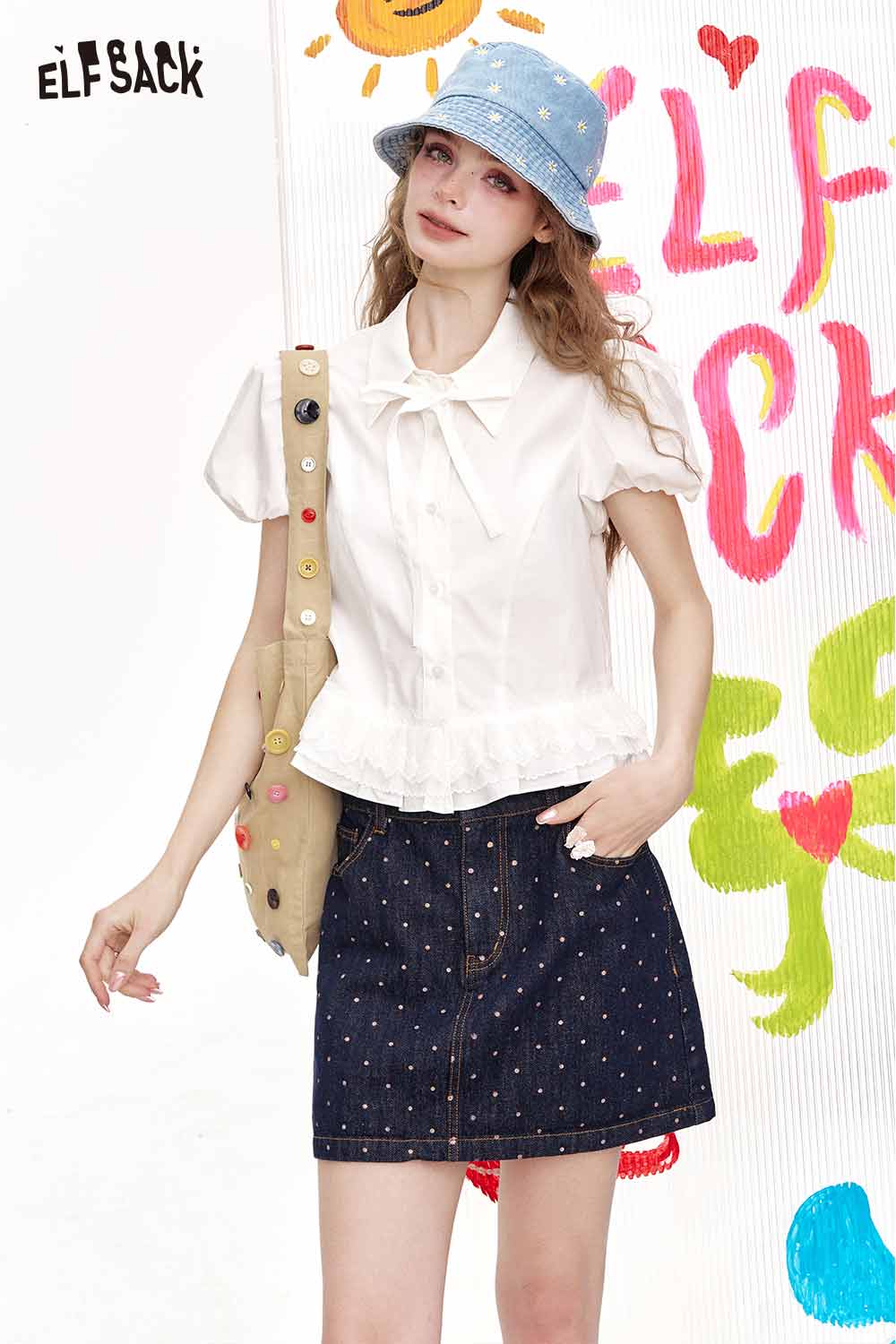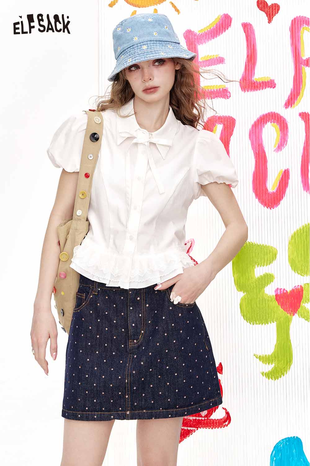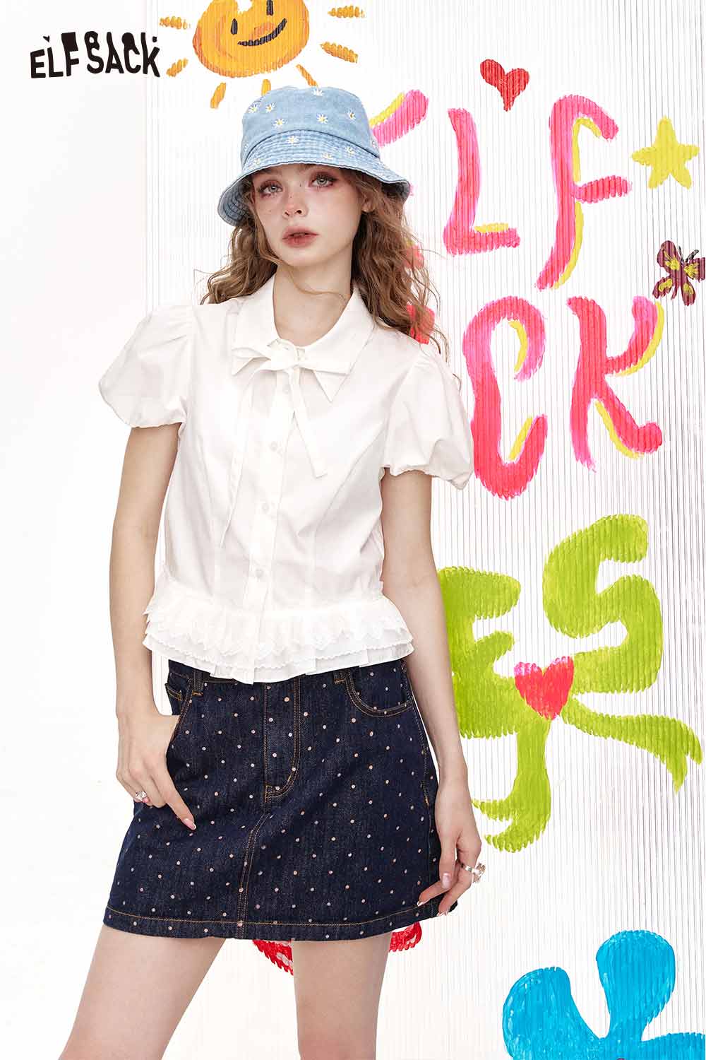 Cute Puff Sleeve Lace Lyocell Sweet Blouse