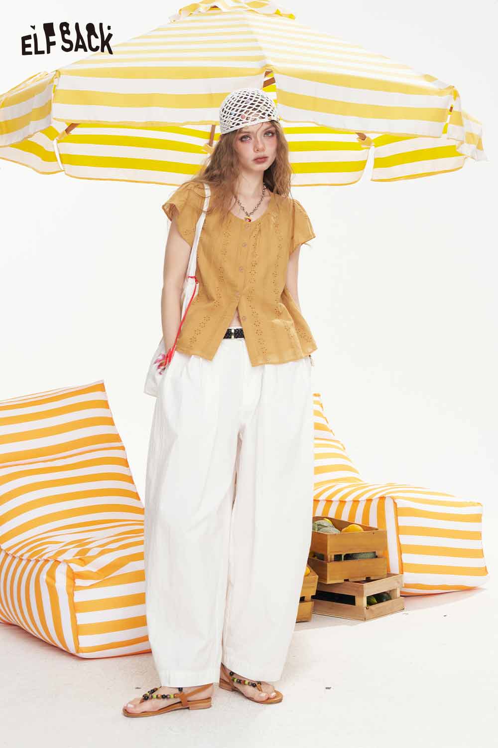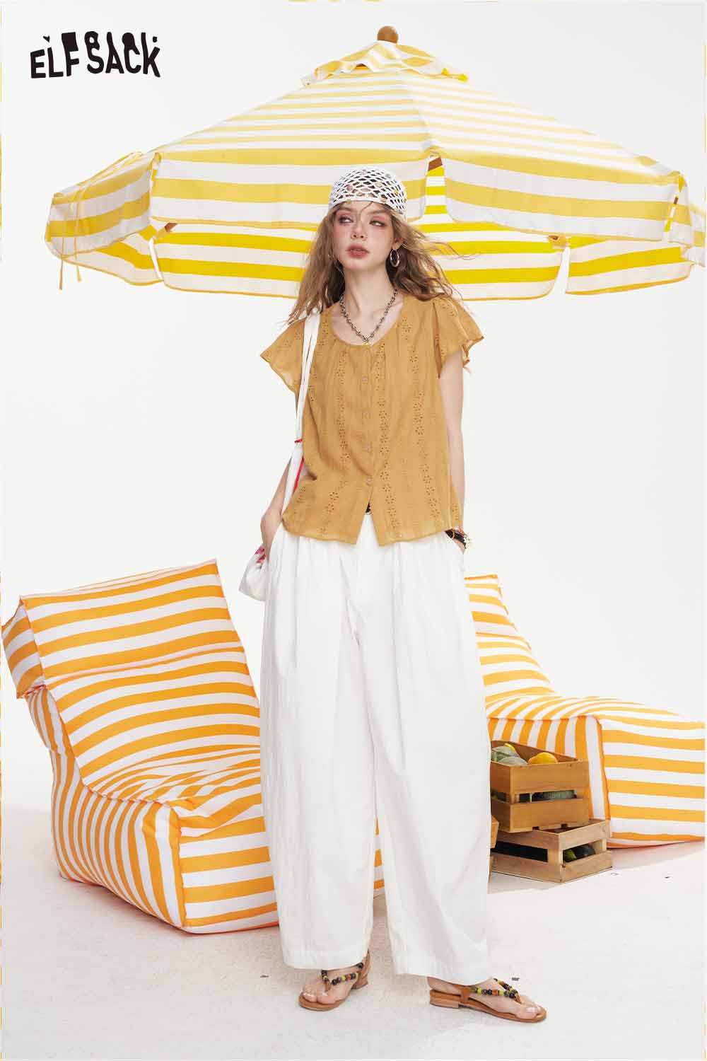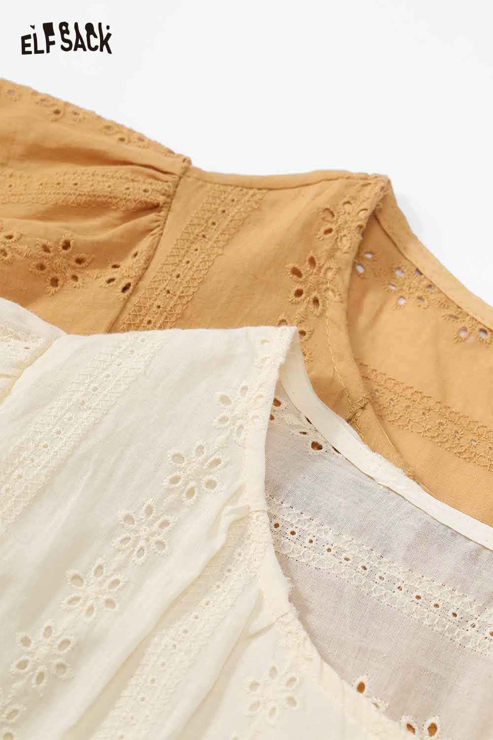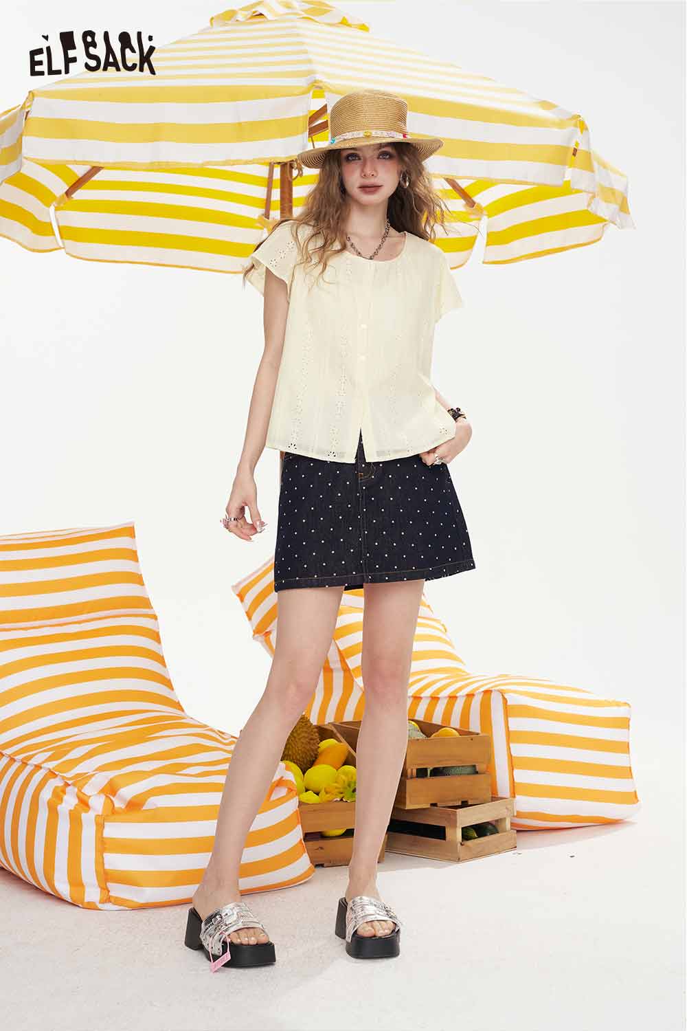 Loose Solid Crochet Cutout Flutter Sleeve Blouse