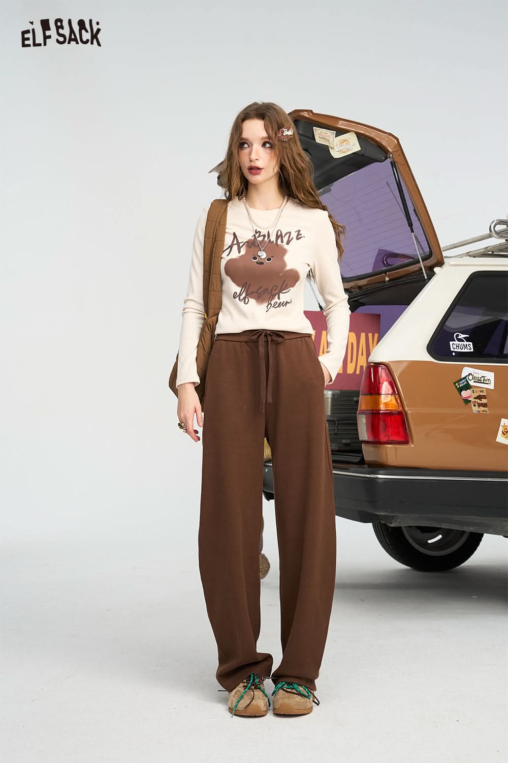 Lazy Style Casual Straight Leg Pants Wide Leg Loose Slim Fit