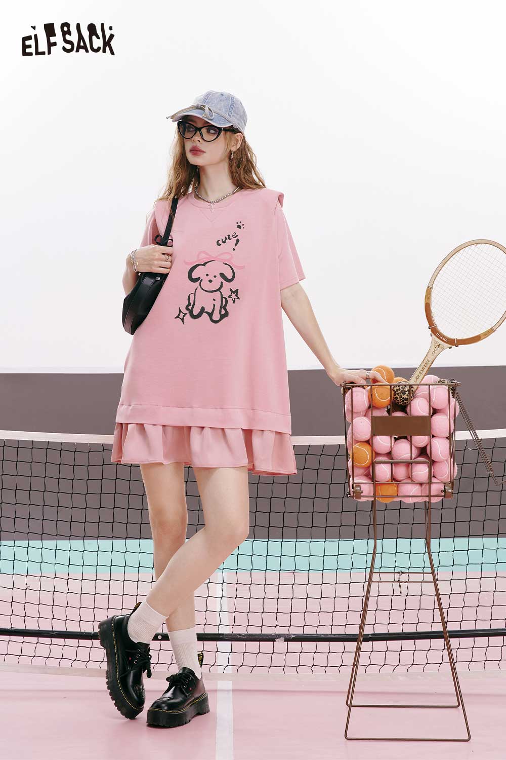 Light Casual Cartoon Animal Graphic Solid Round Neck Tshirt Dress