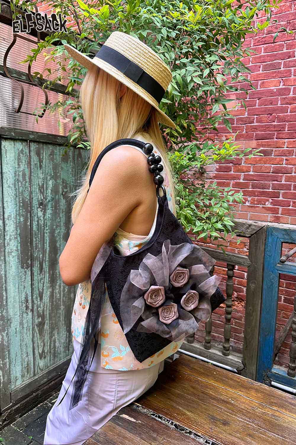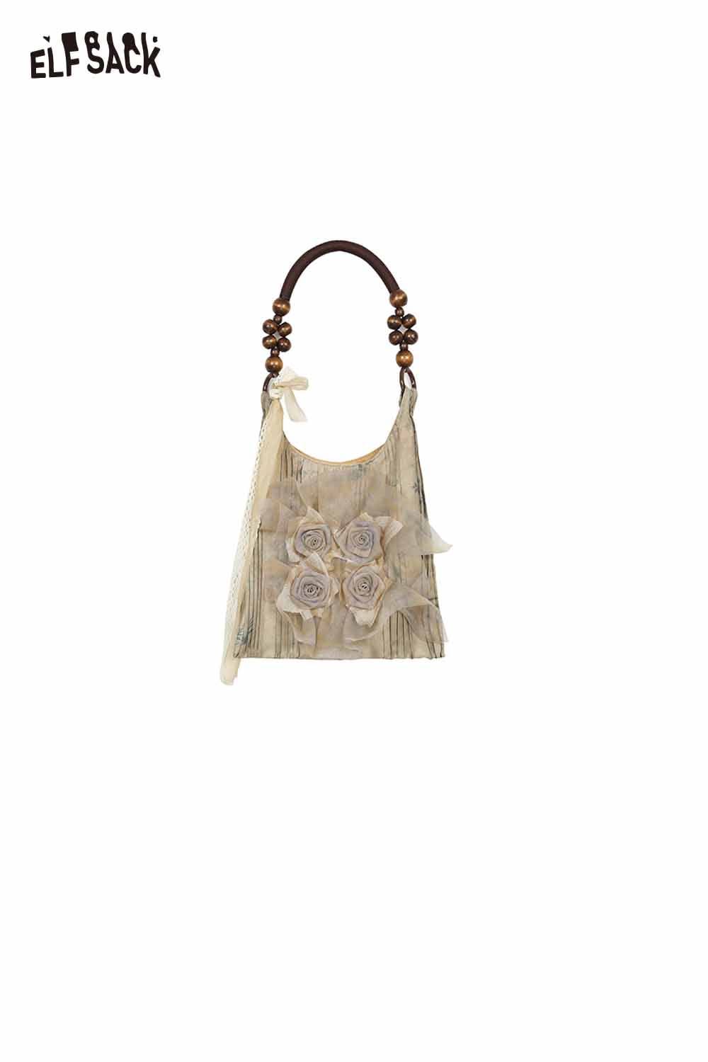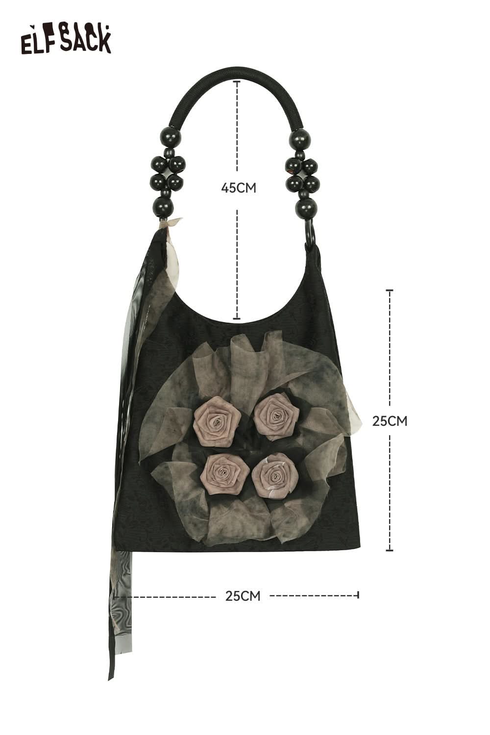 Chinese Rose Print Shoulder Bag