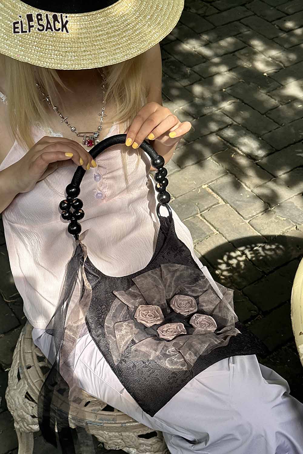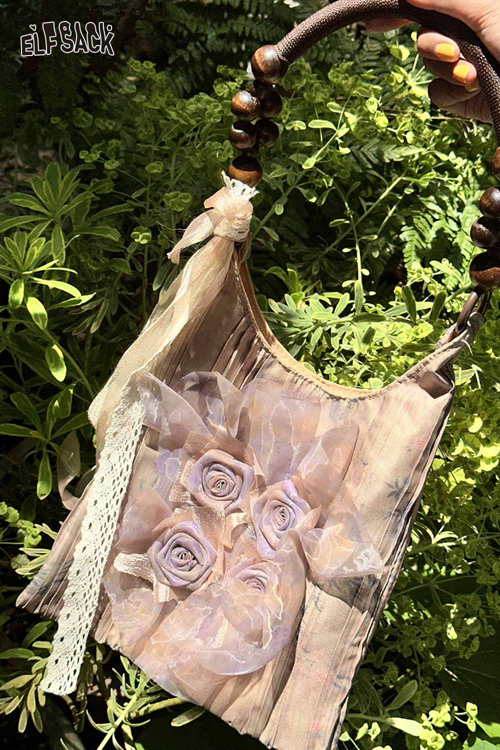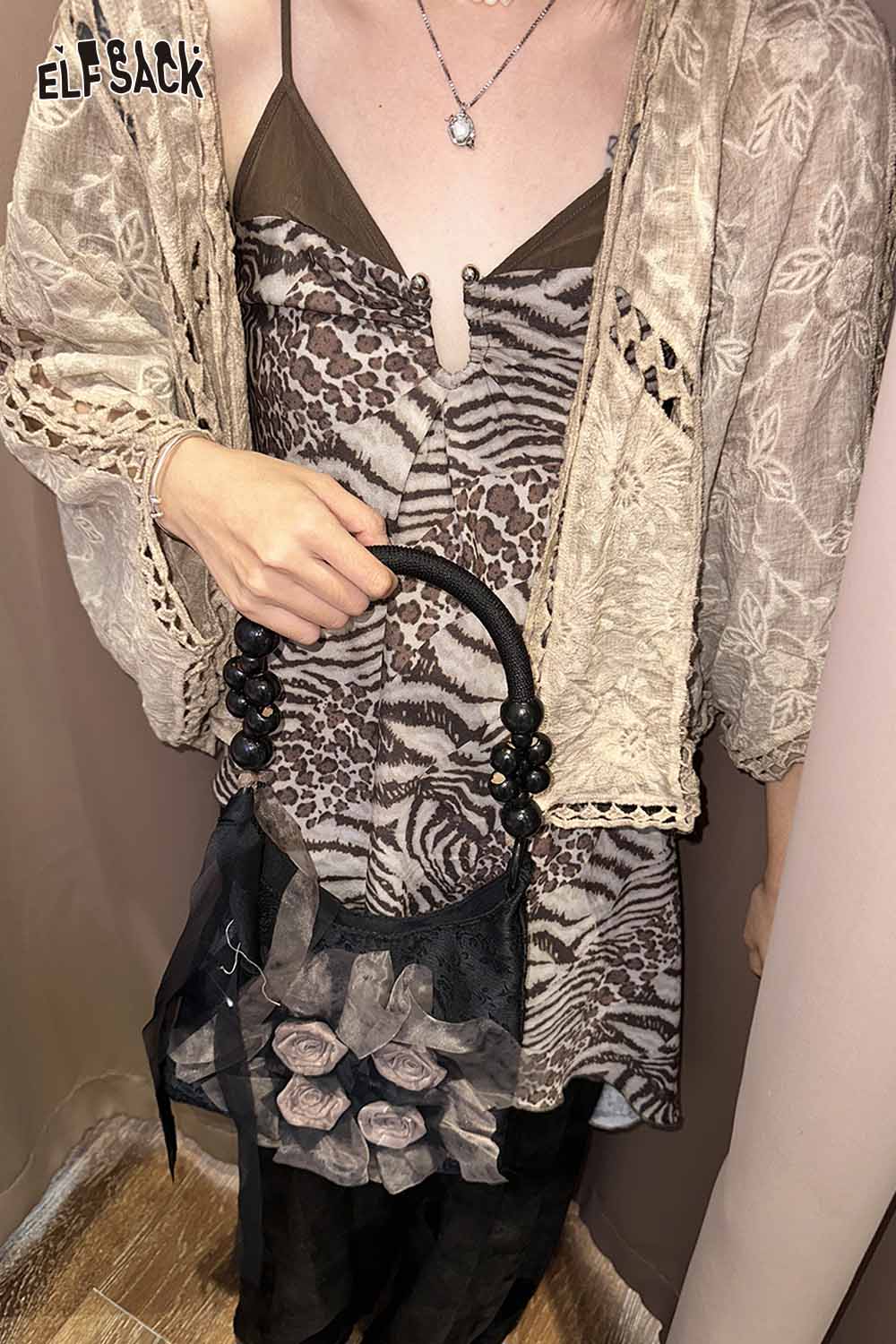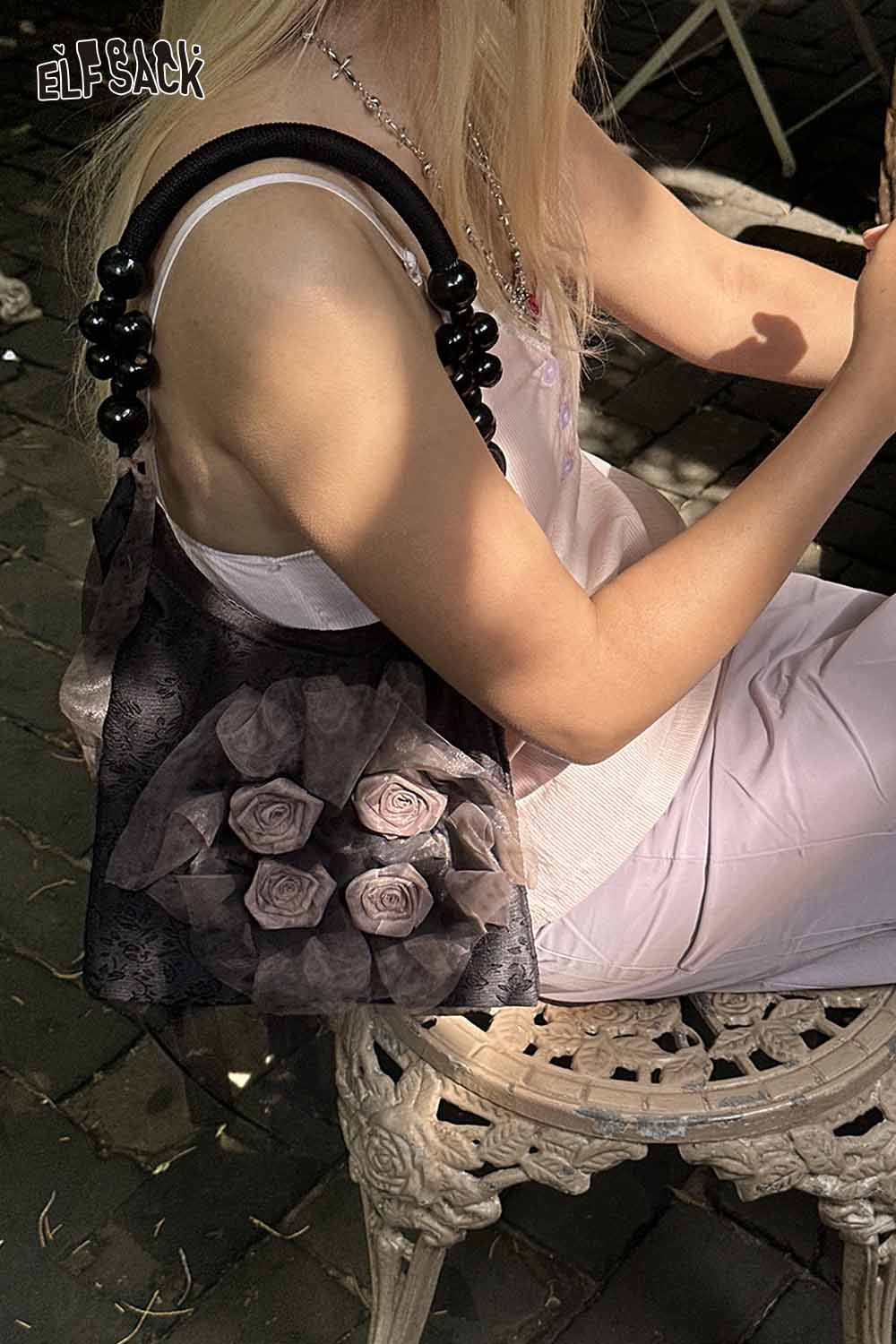 Chinese Rose Print Shoulder Bag