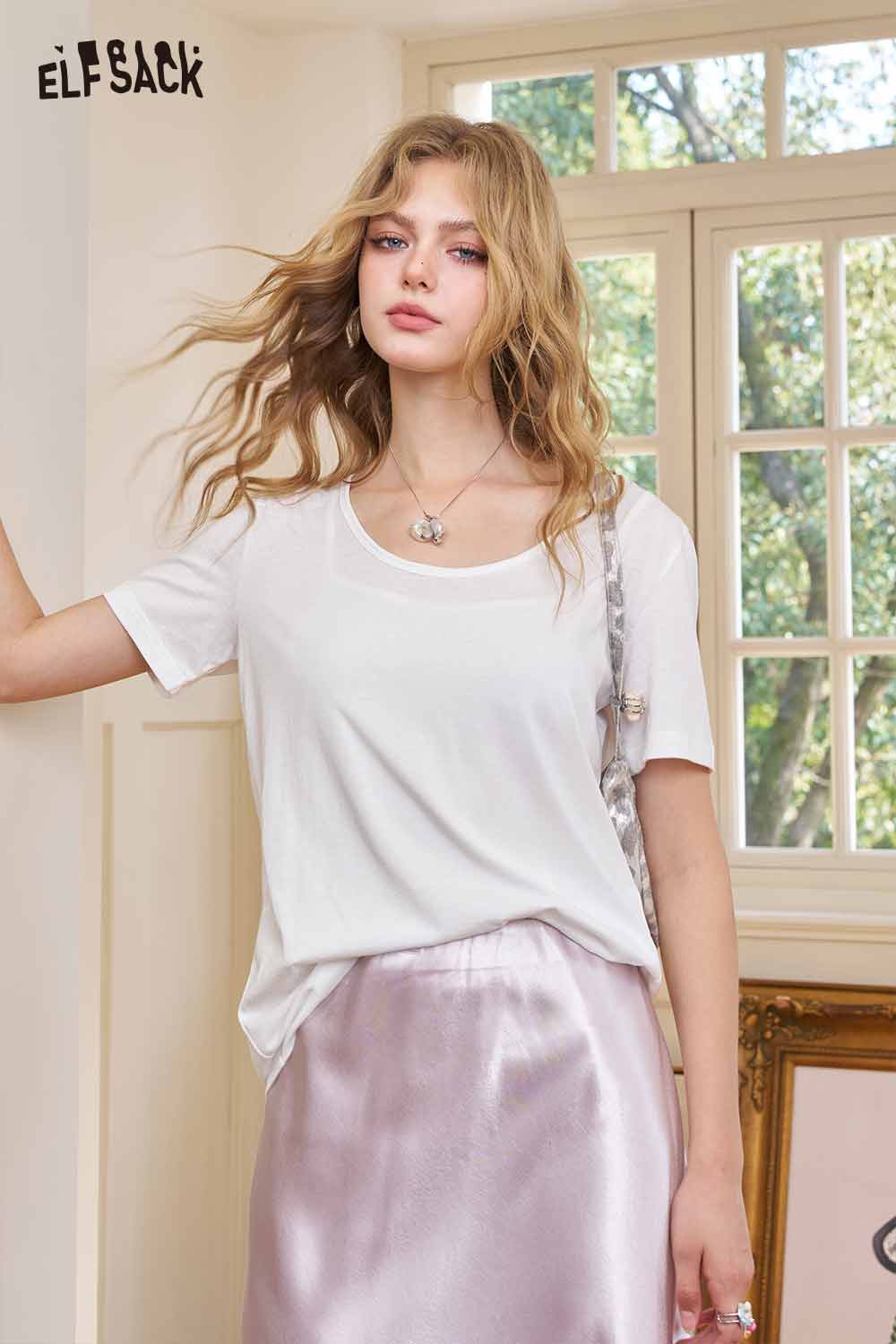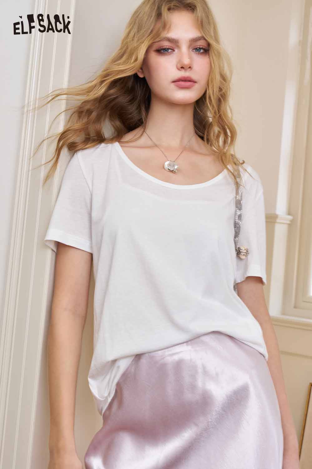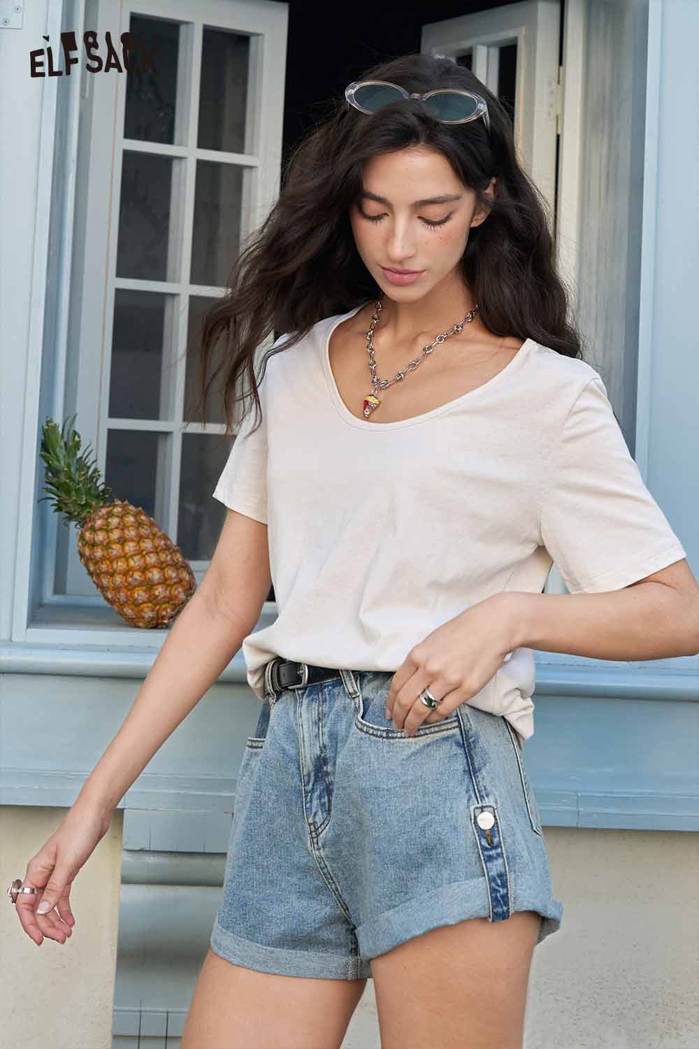 Classic Loose Solid Large Neckline Short Sleeve Tshirt