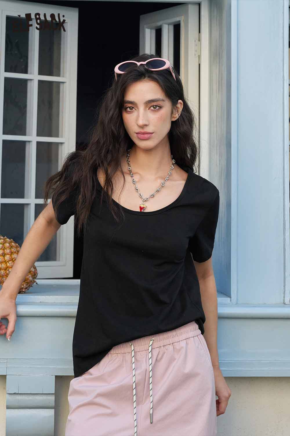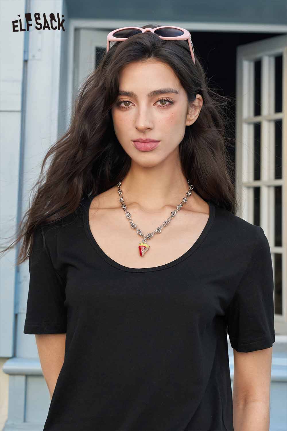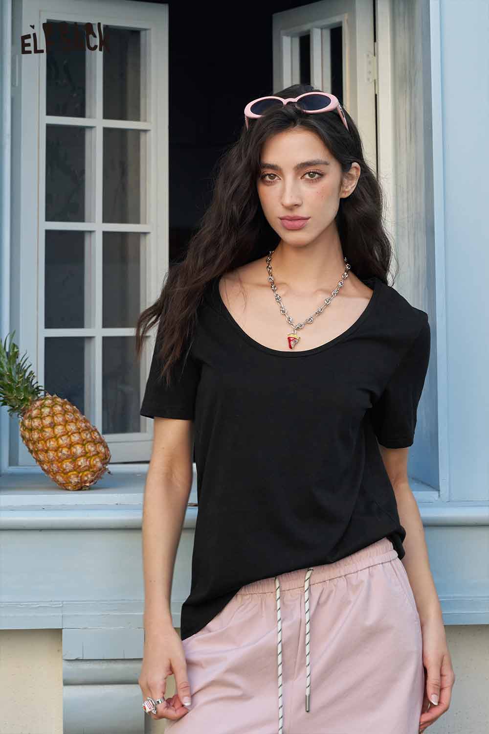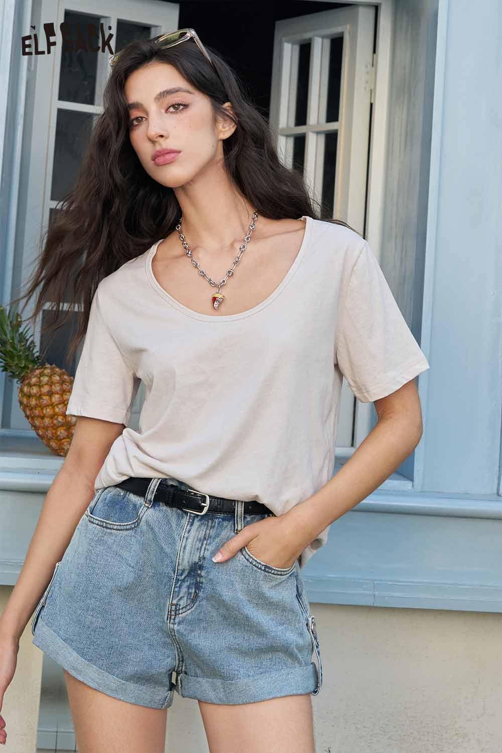 Classic Loose Solid Large Neckline Short Sleeve Tshirt