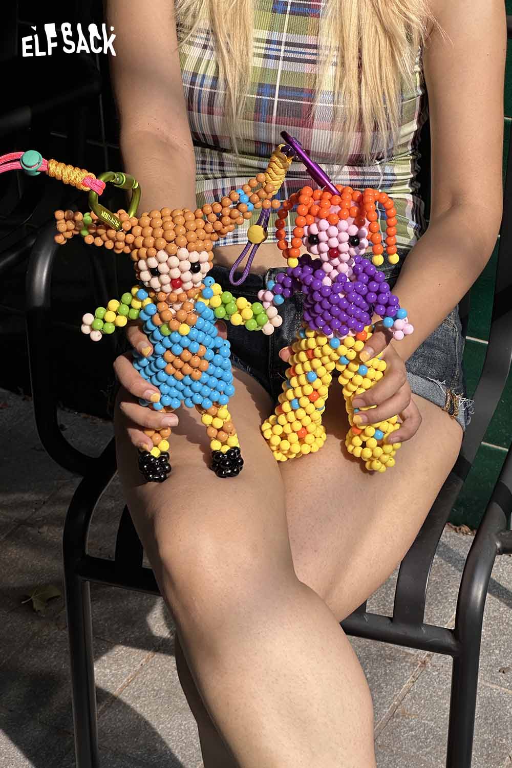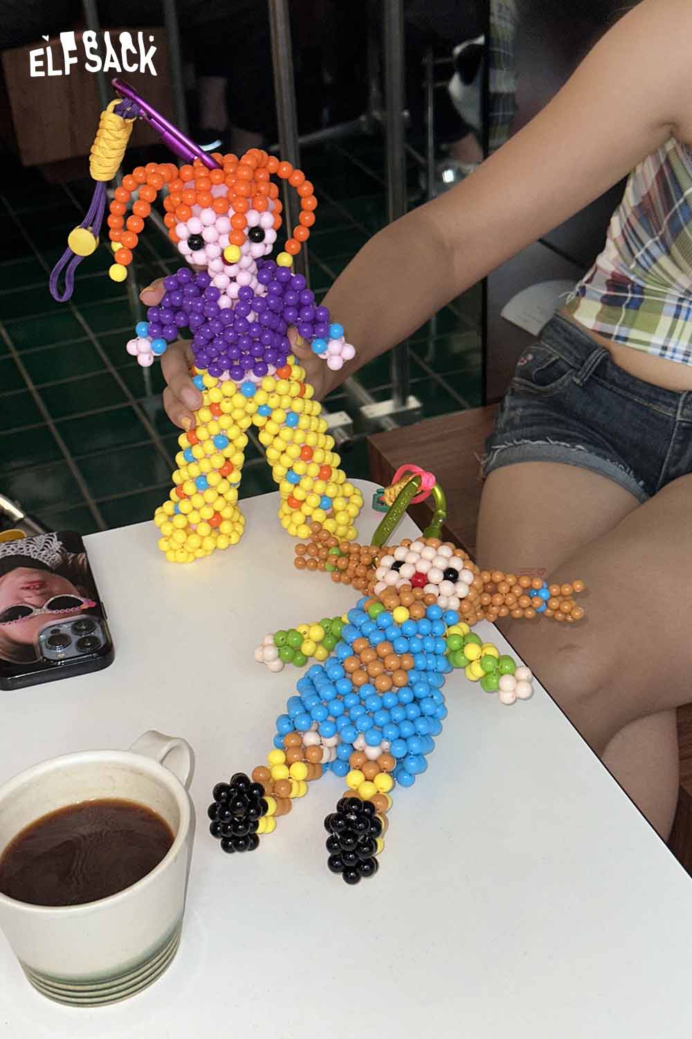 Colorful Whimsical Dopamine Cartoon Bead Doll Keychain