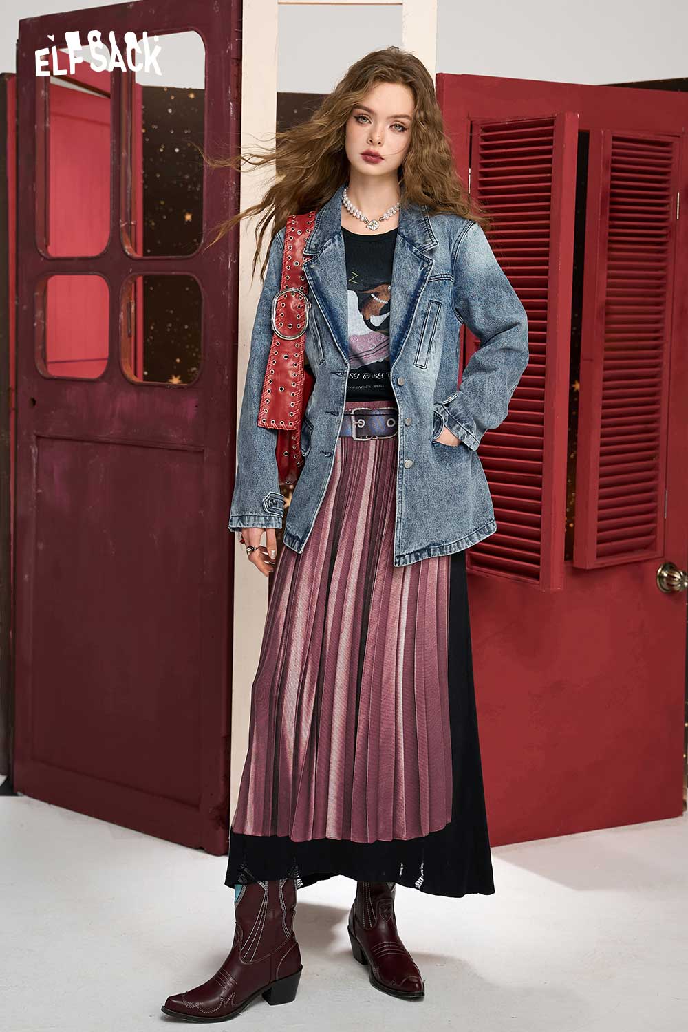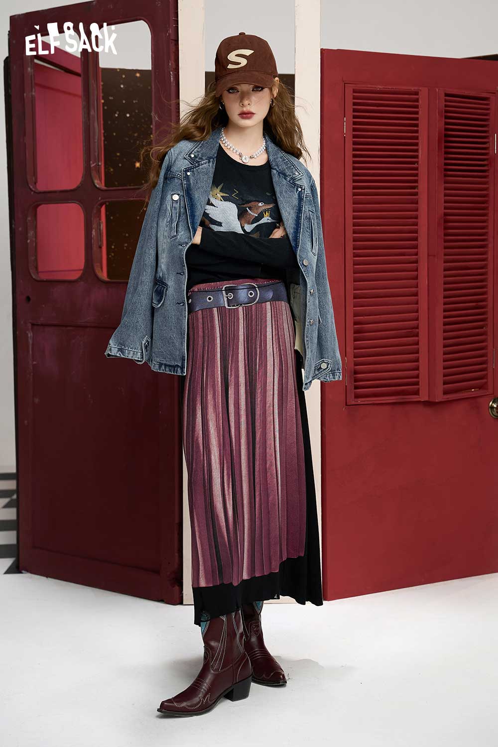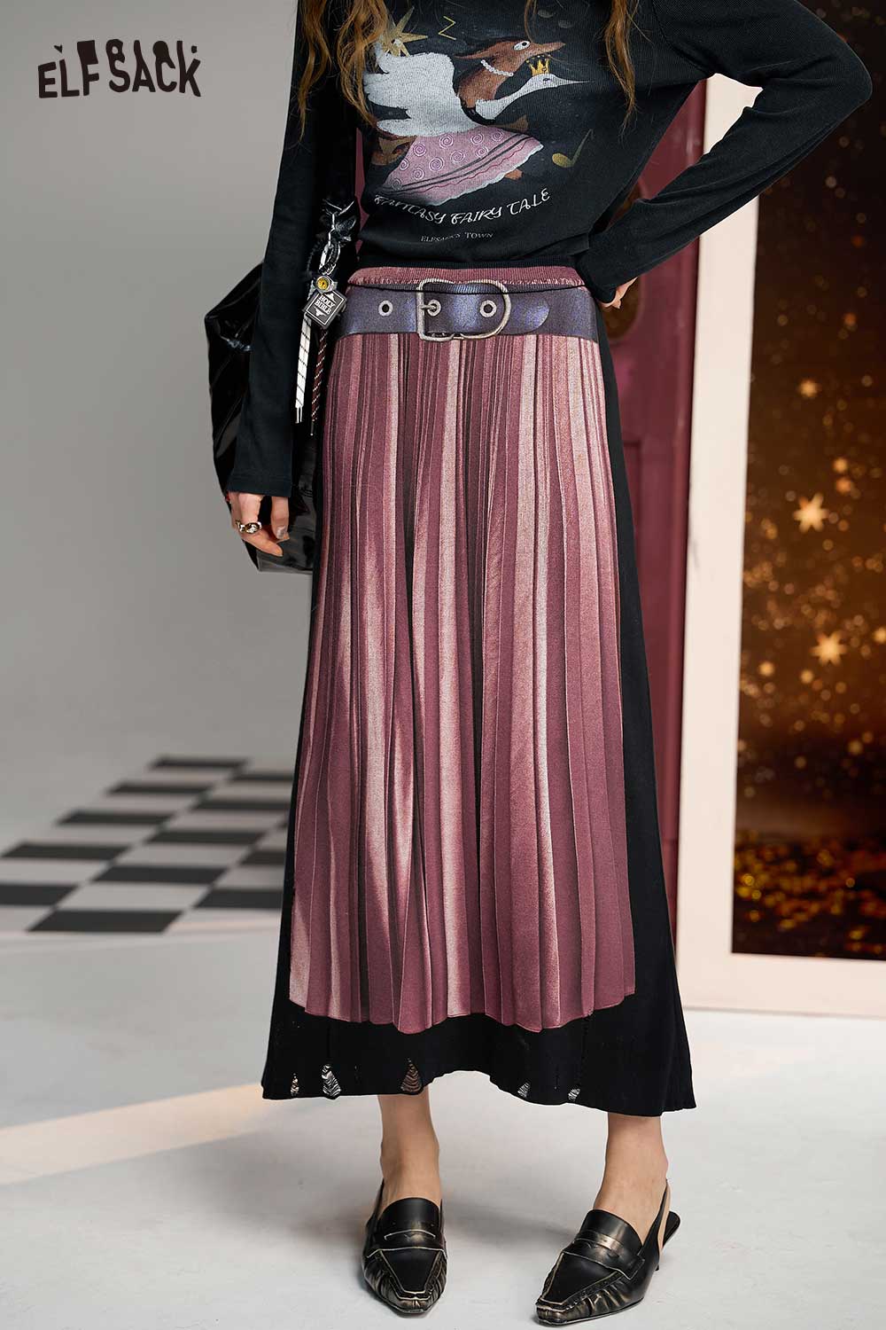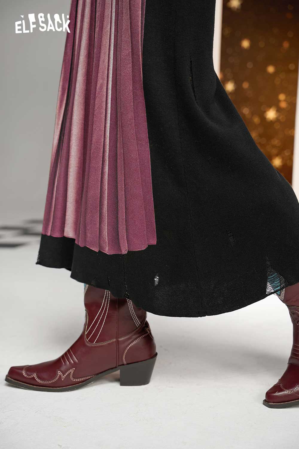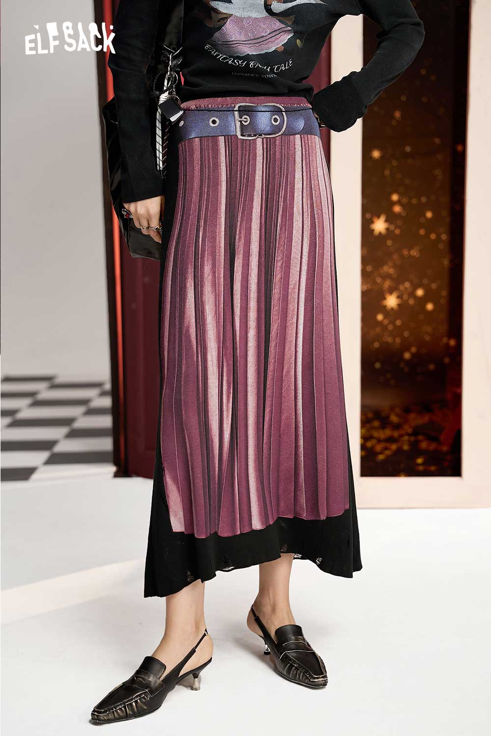 Elegant Color Block Knit A Line Skirt