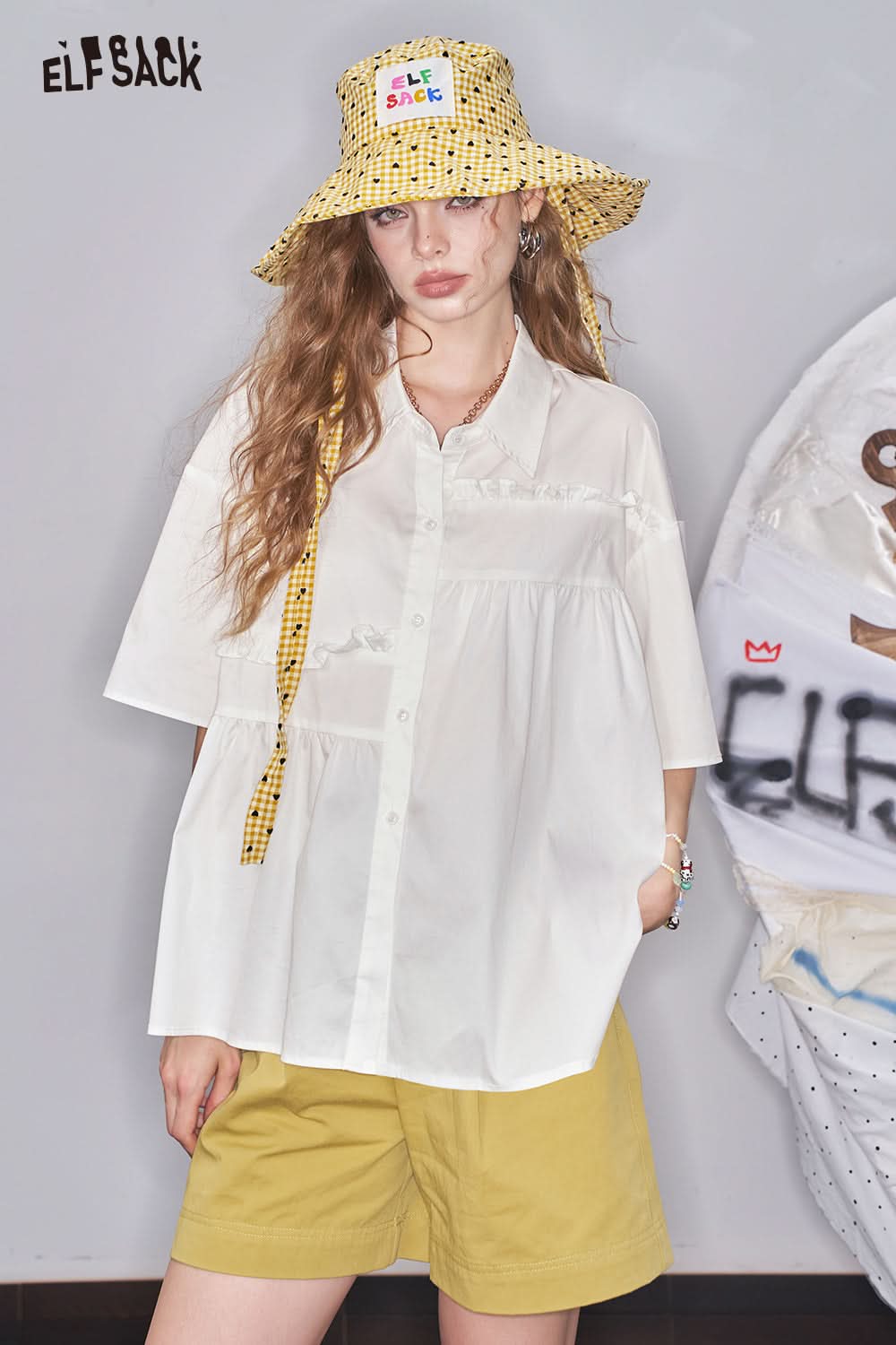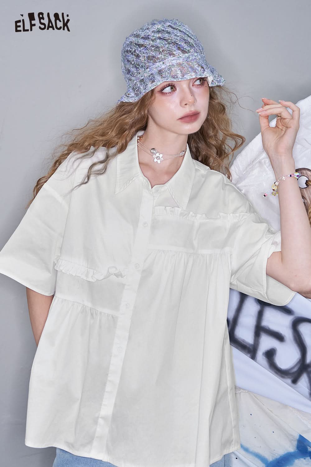 White Pleated Casual Short Sleeve Shirt