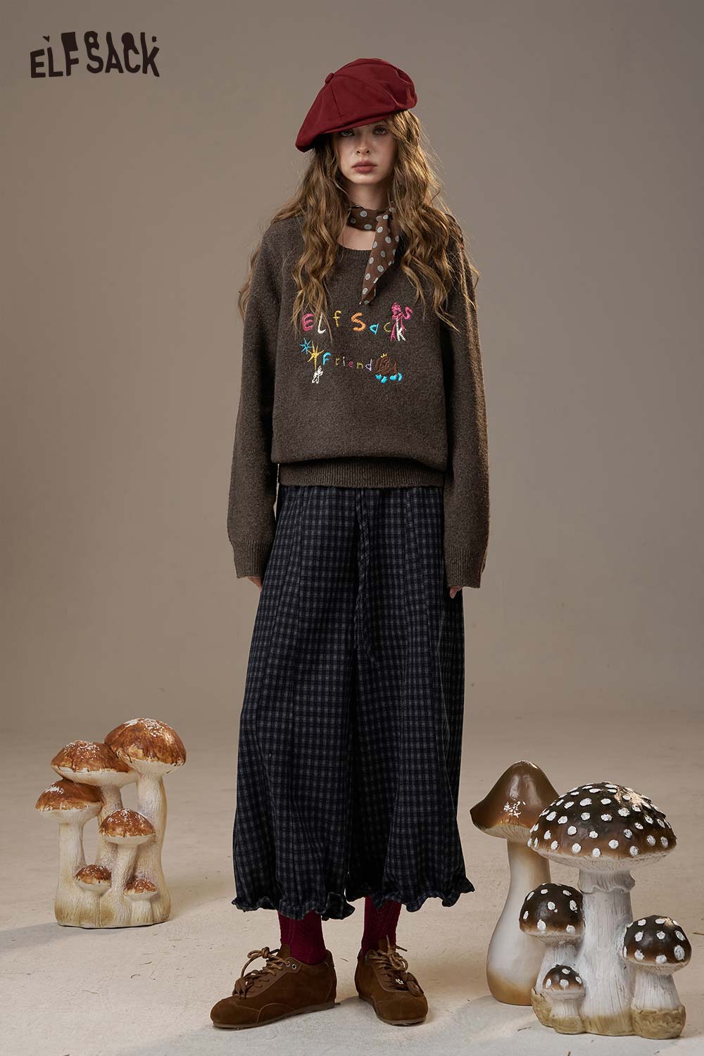 Soft Colorful Logo Letter Embroidery Knit Round Neck Sweater