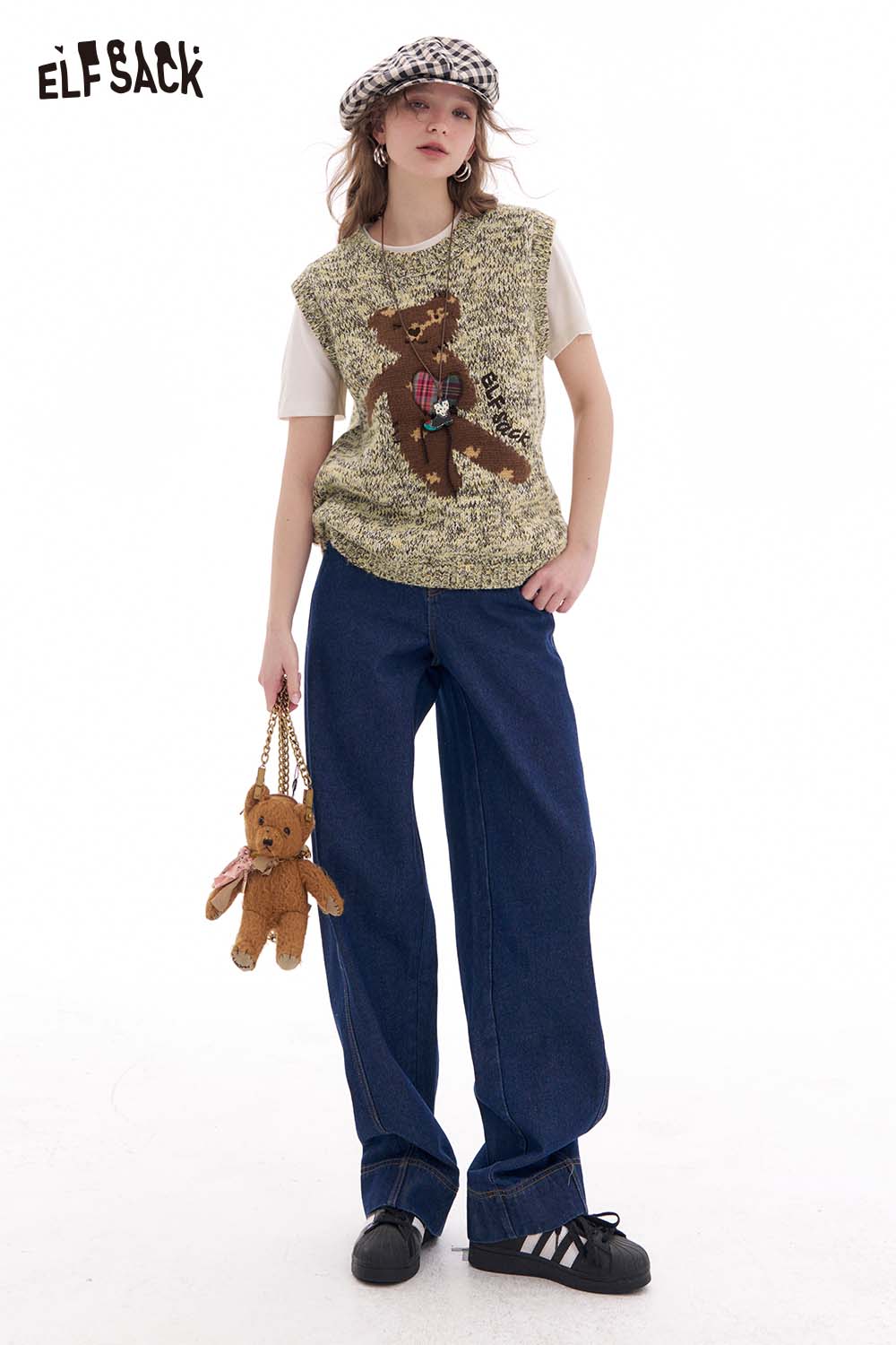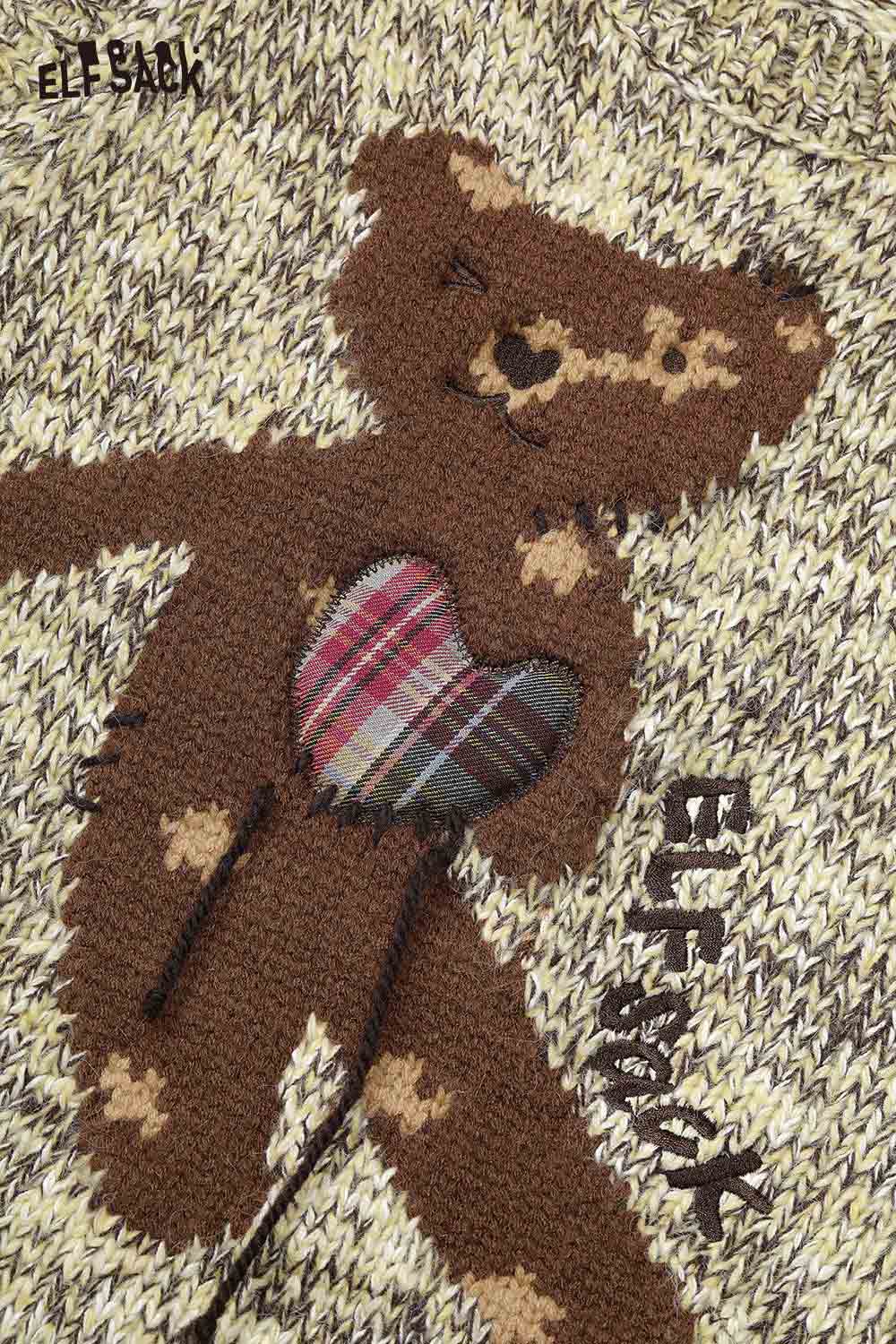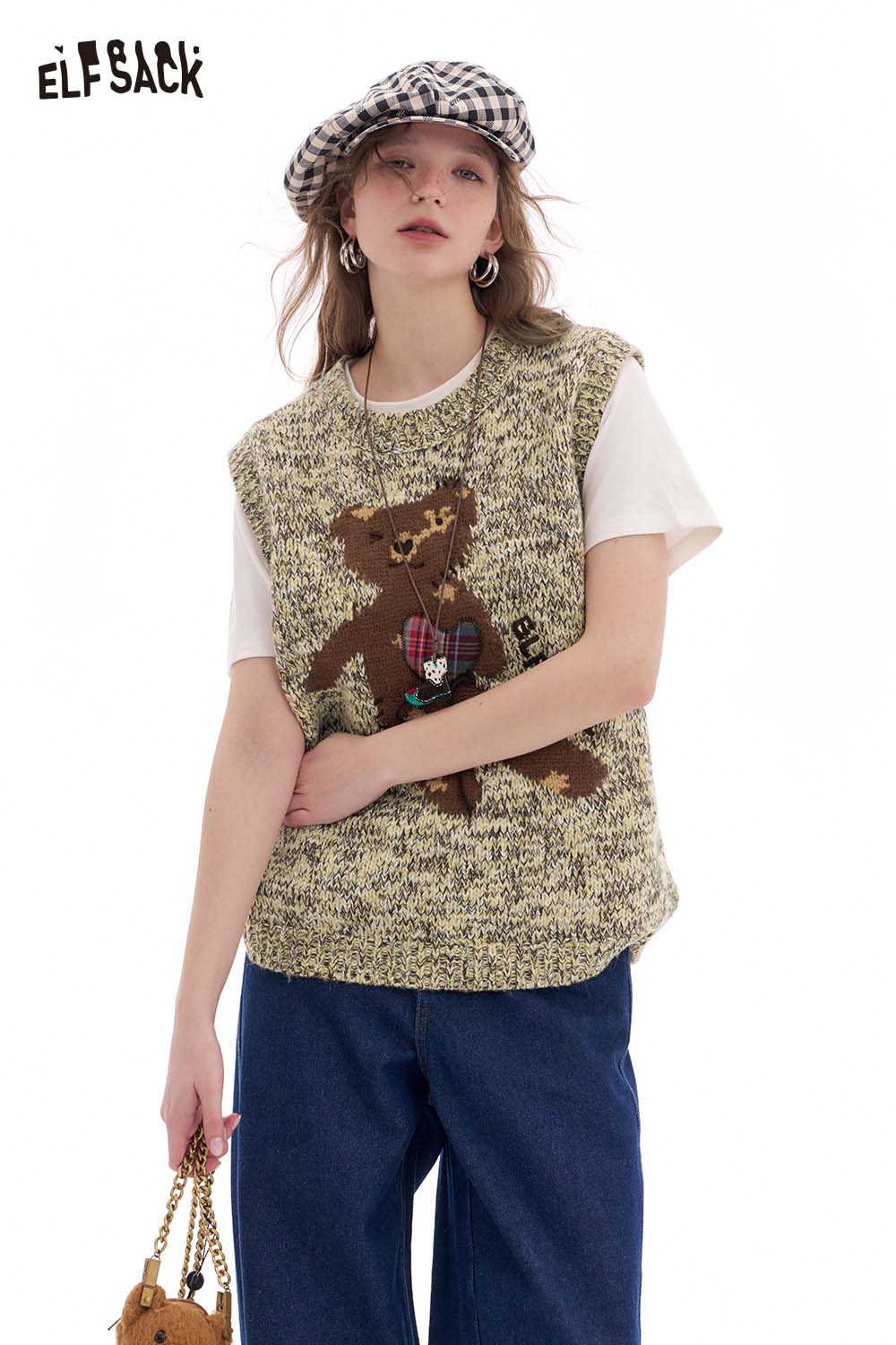 Vintage Jacquard Bear Embroidery Vest Early Spring Faux Cashmere