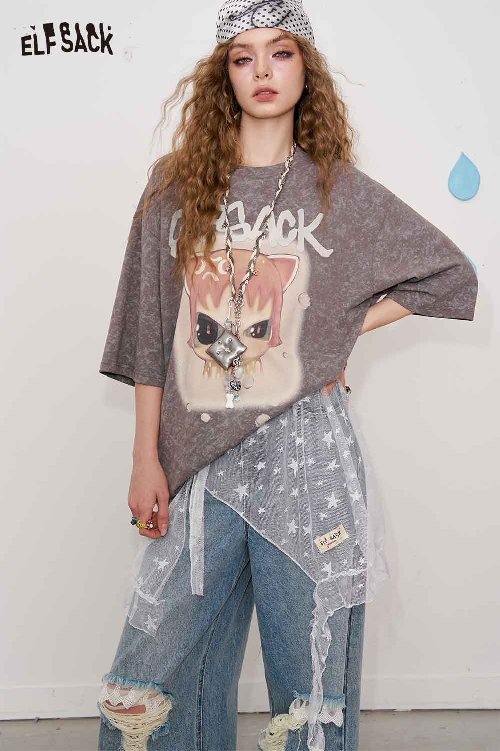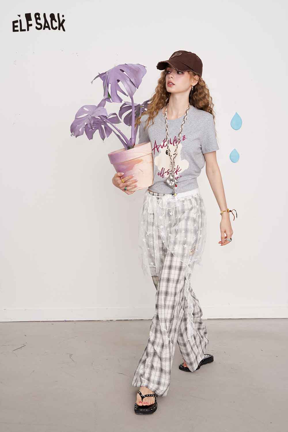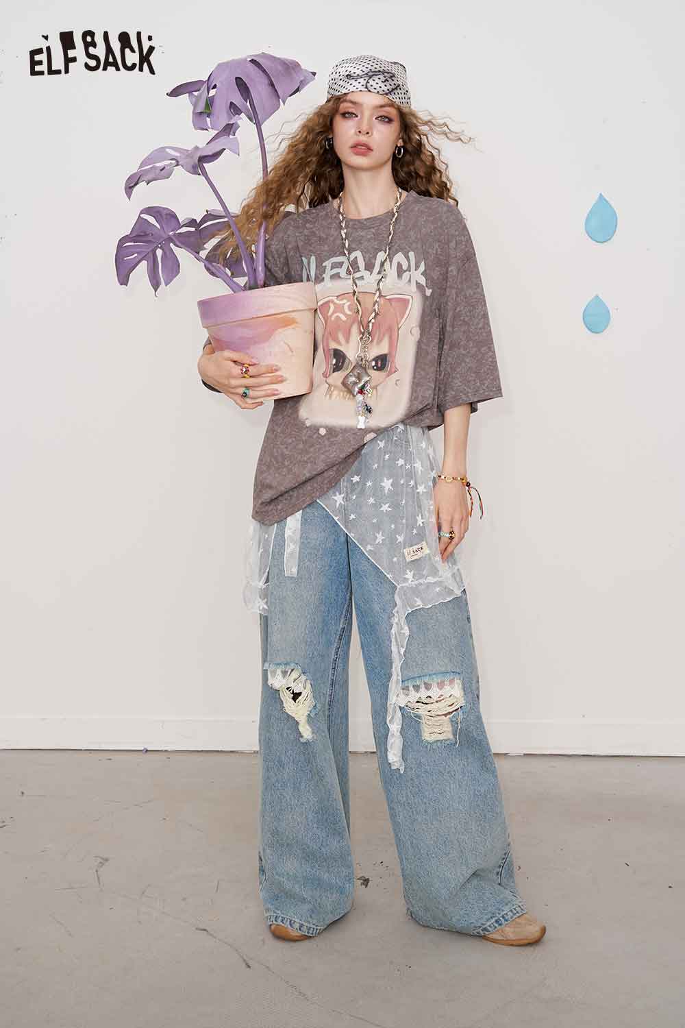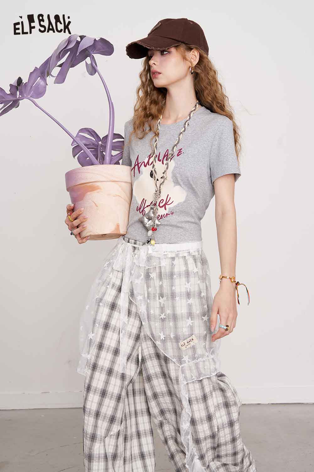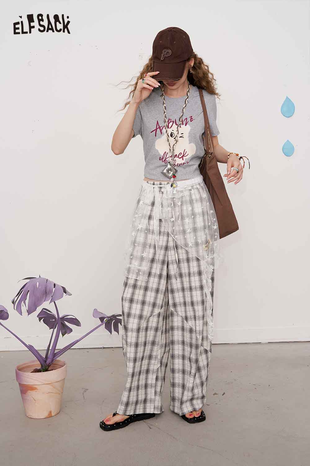 Artisan Lace Trim Layered Slip Korean Indie Style Star Embroidery Tulle kirt ver Pants