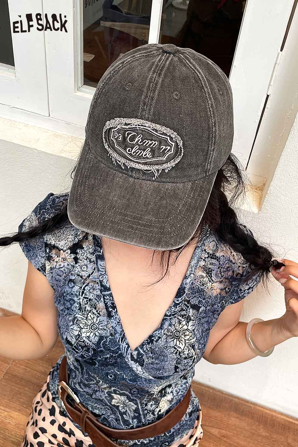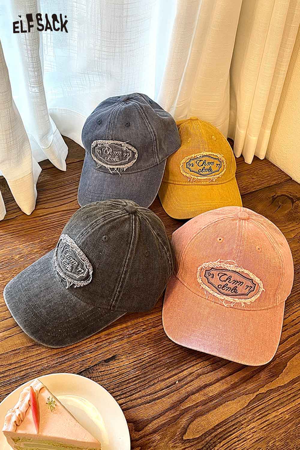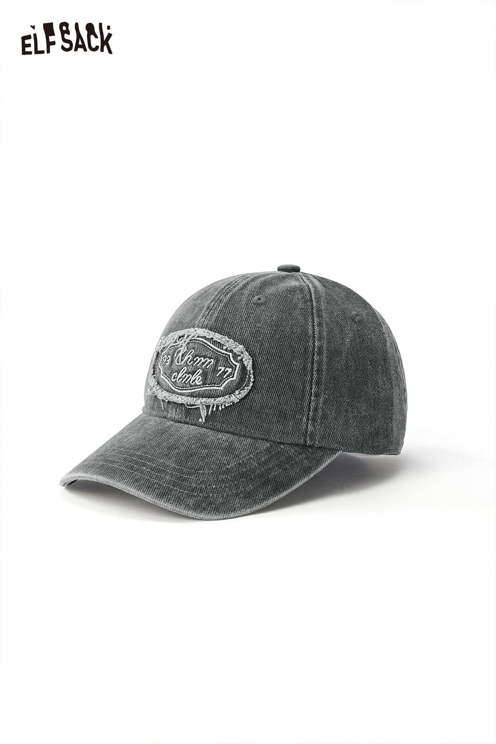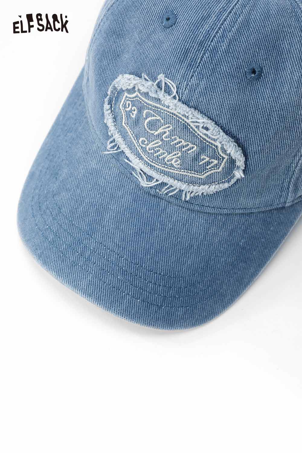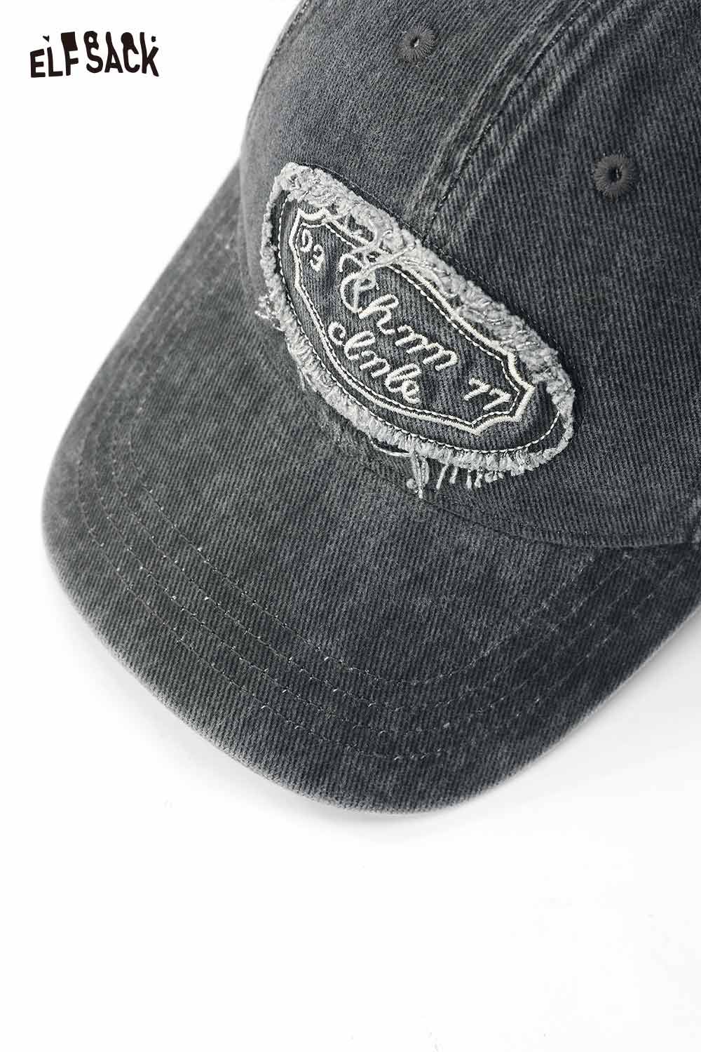 Cotton Dark Wash Distressed Denim Letter Embroidery Baseball Cap
