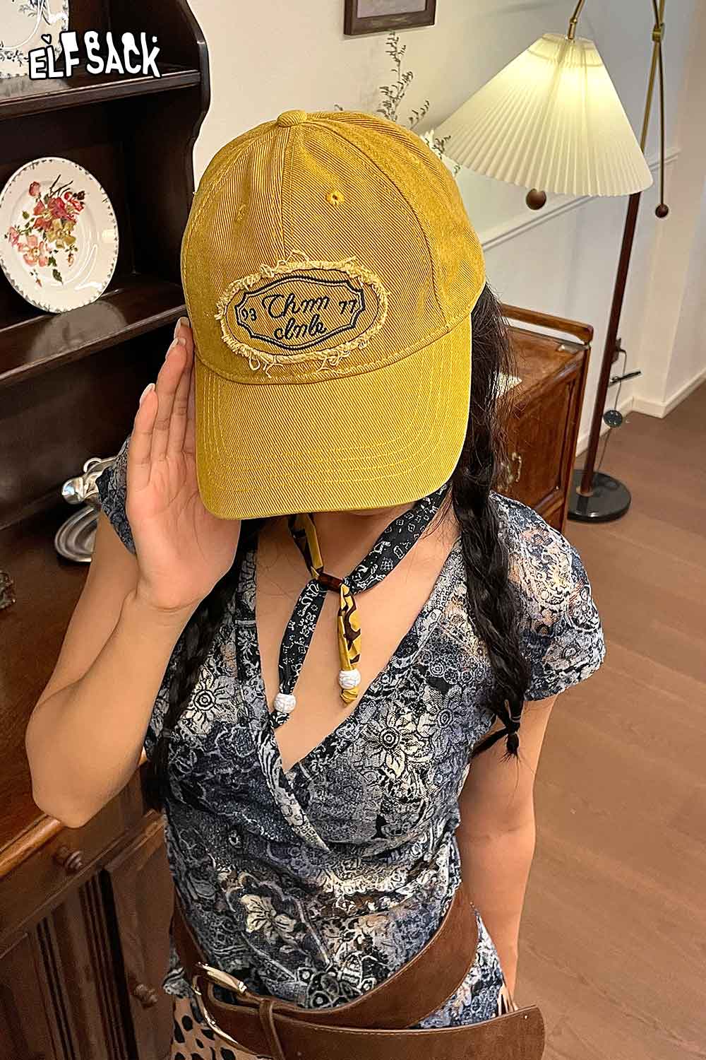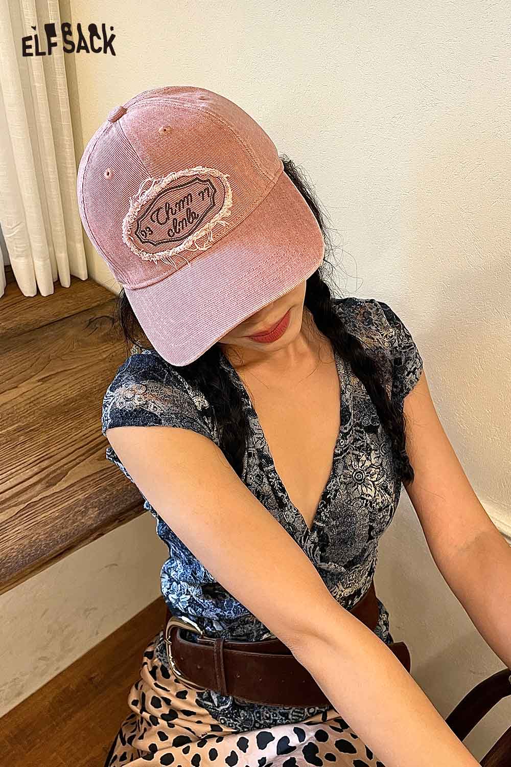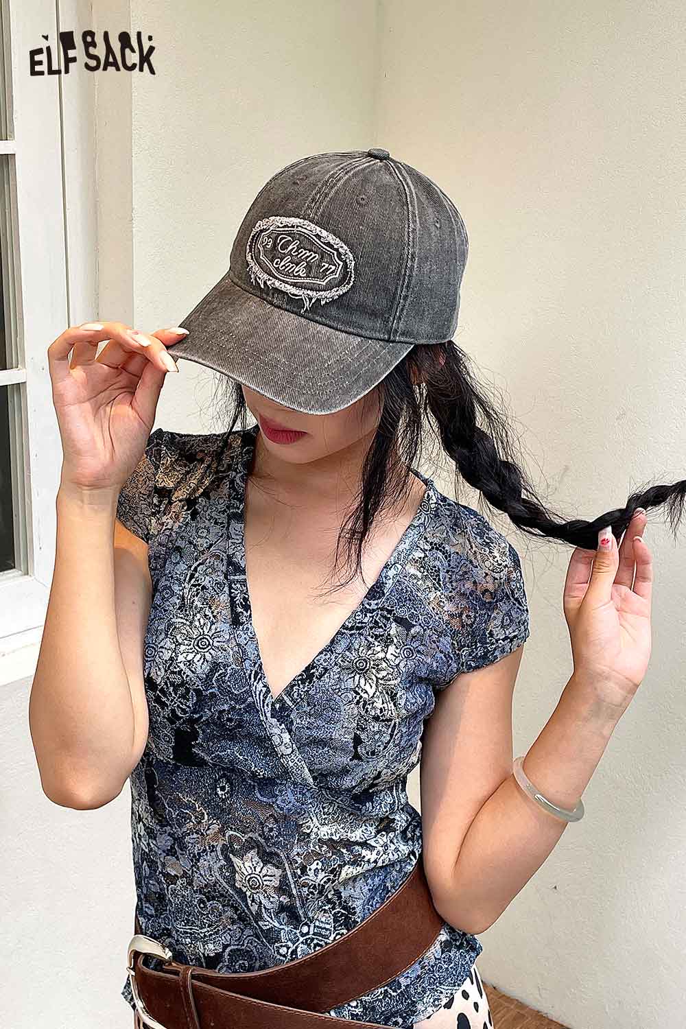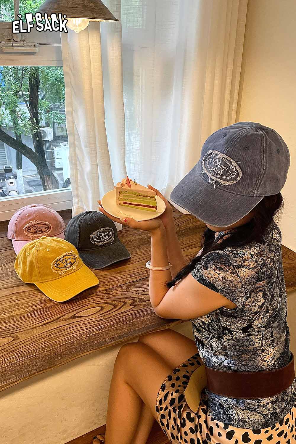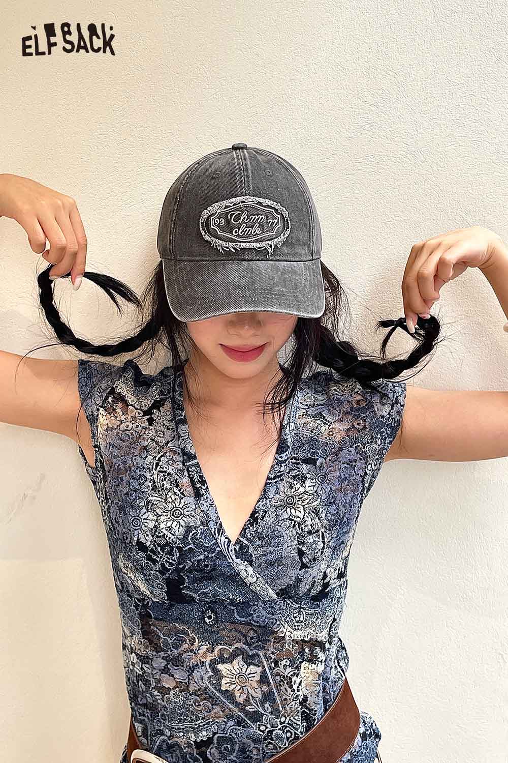 Cotton Dark Wash Distressed Denim Letter Embroidery Baseball Cap