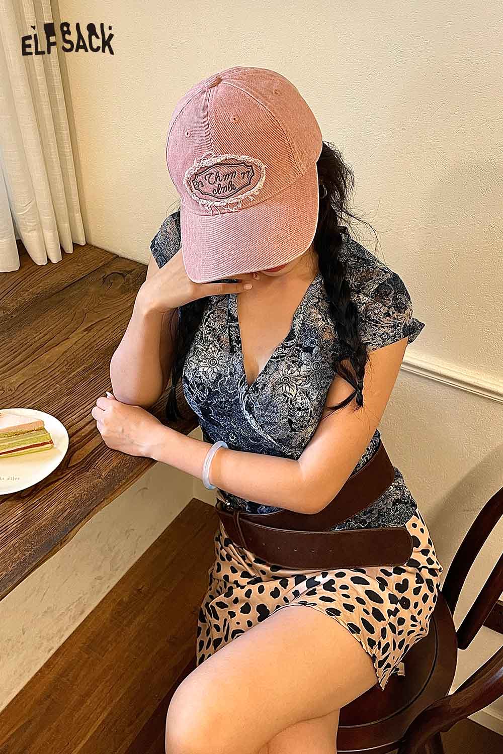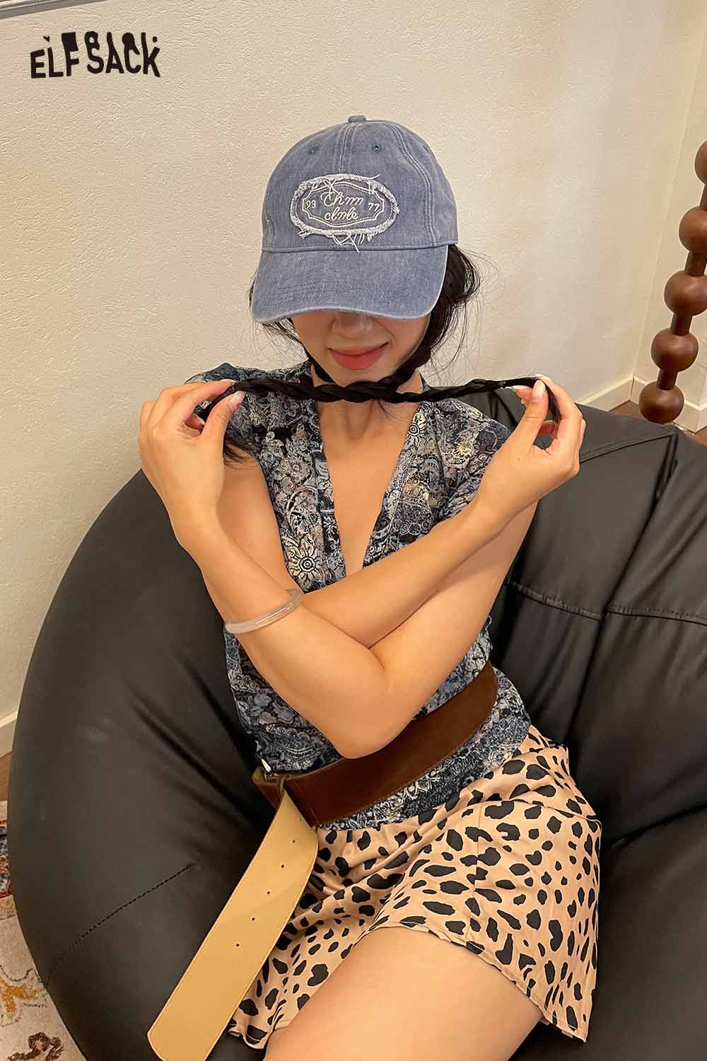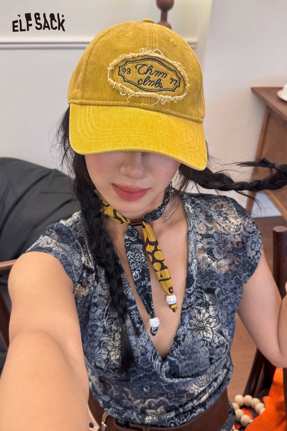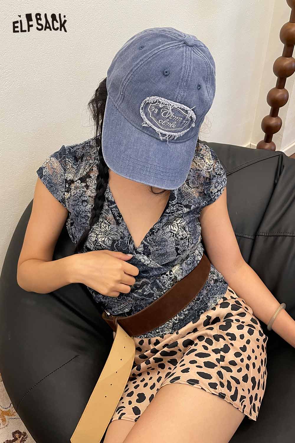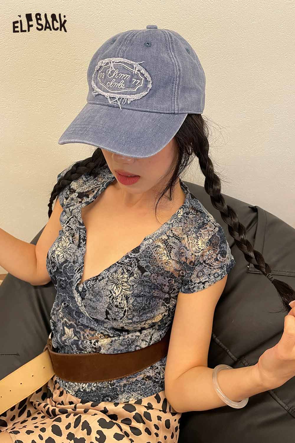 Cotton Dark Wash Distressed Denim Letter Embroidery Baseball Cap