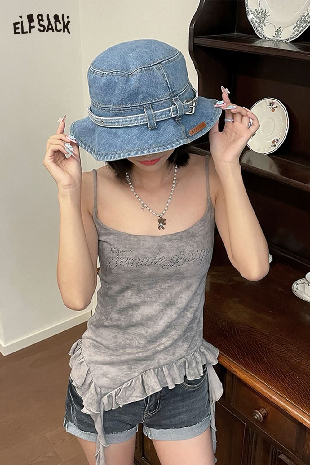 Denim Tie-Up Design Streetwear Hat