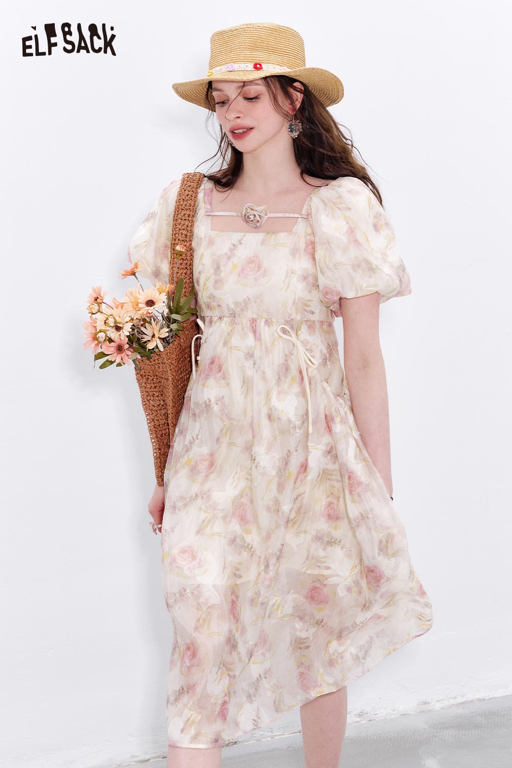 Chiffon Puff Sleeve Floral Dress