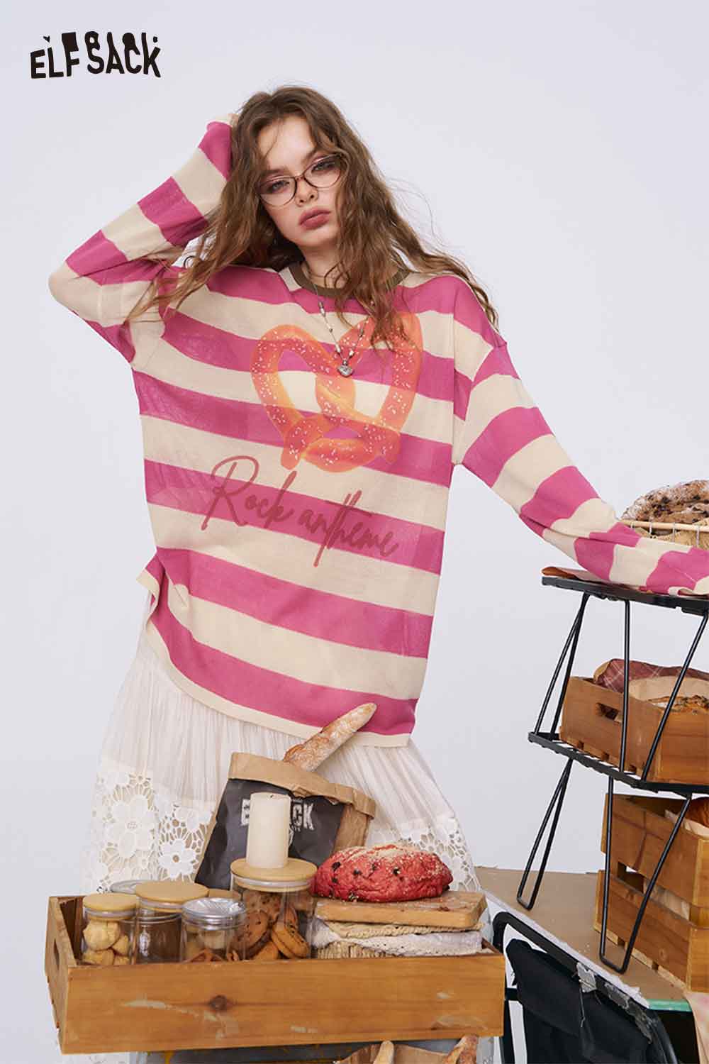 Lightweight Long Sleeve Cool-Touch Striped Knitwear