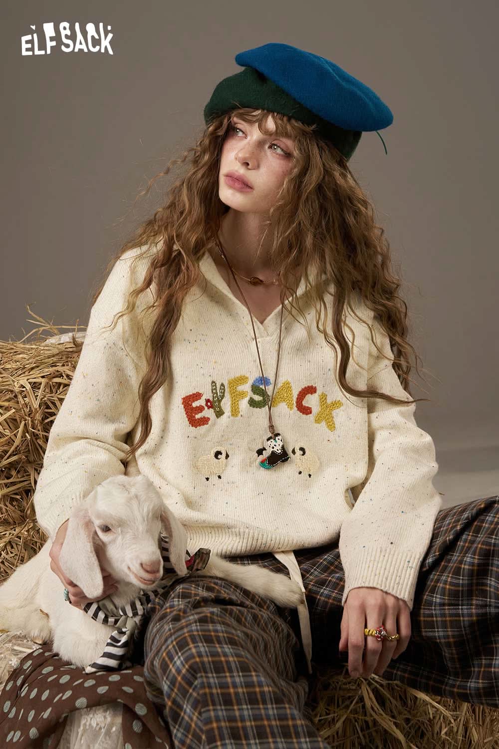Soft Colorful Letters And Cartoon Sheep Designs Large Collar Sweater