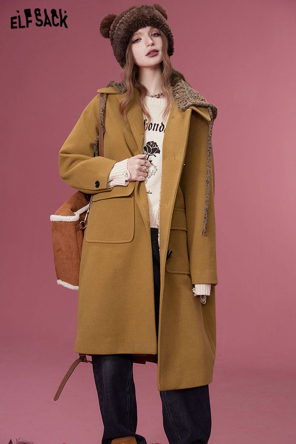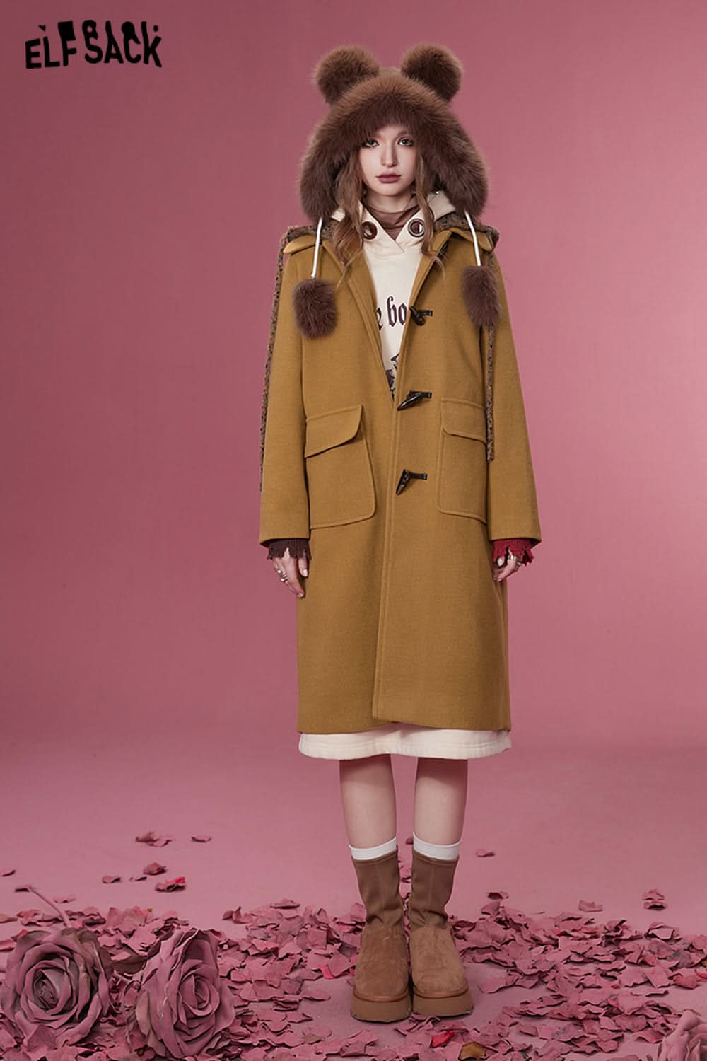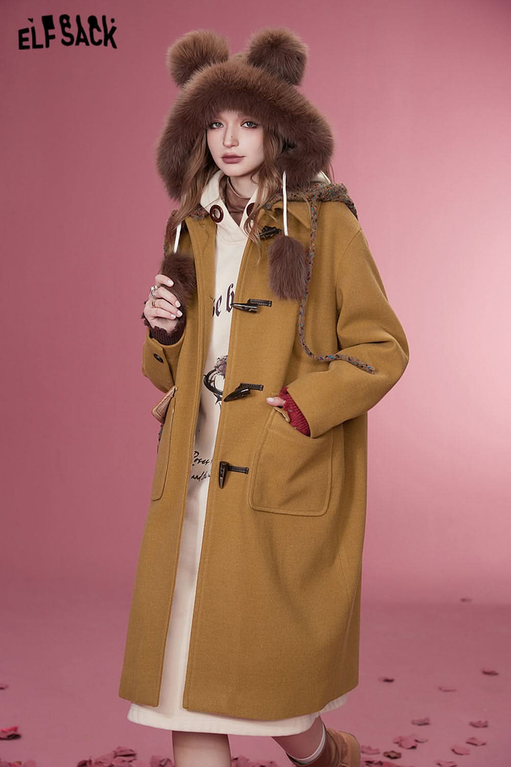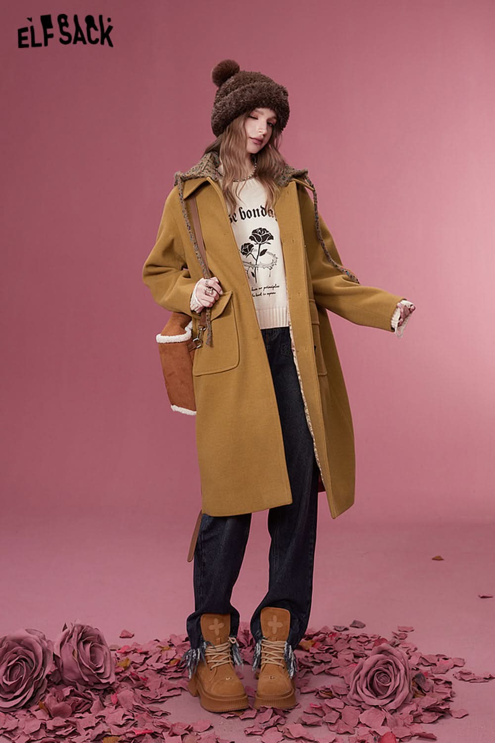 ELFSACK Plus Size Hoodied Coats Women Korean Fashion Mid-length Outwears