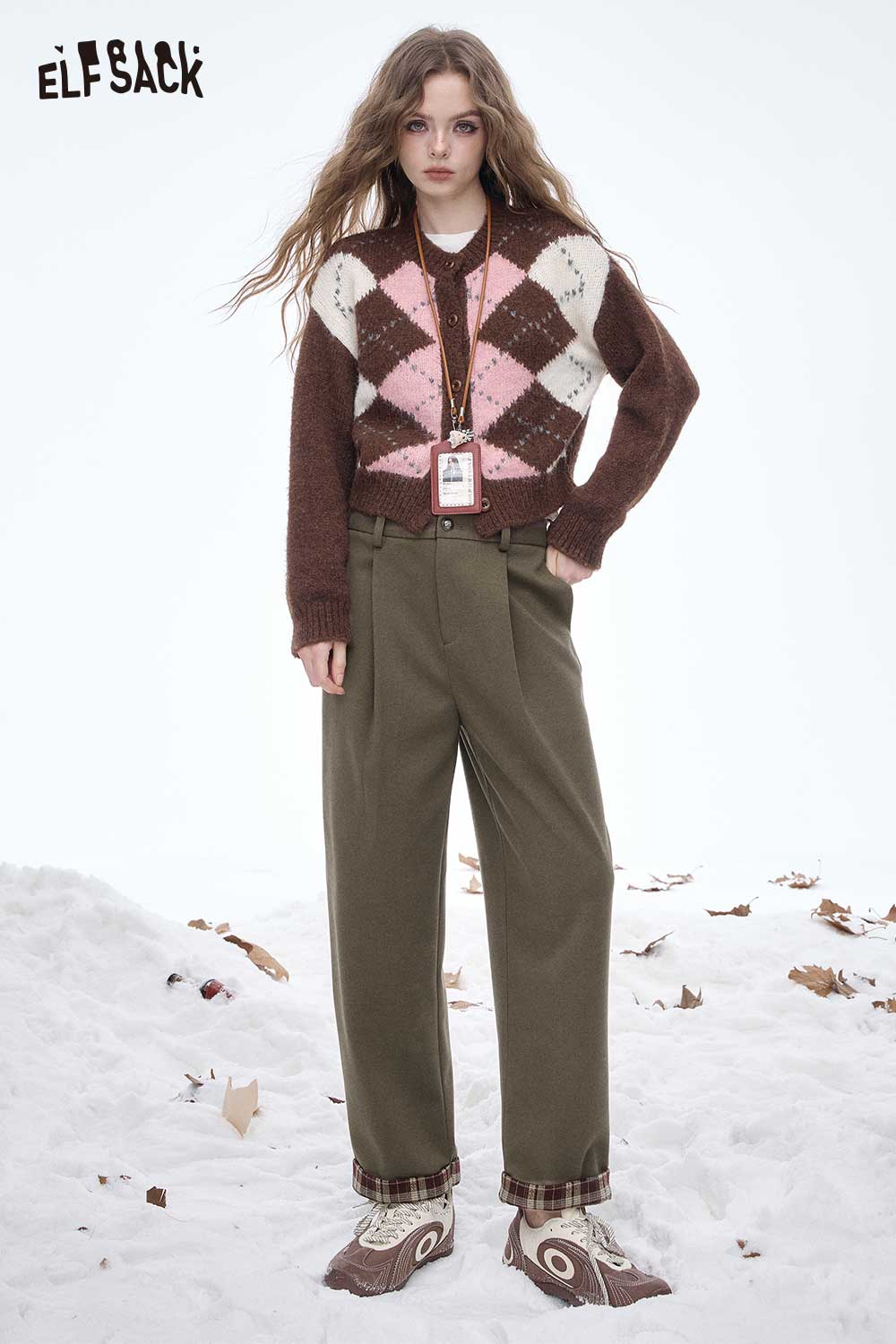 Soft Classic Striped Cuff Straight Slim Leg Long Tapered Pants