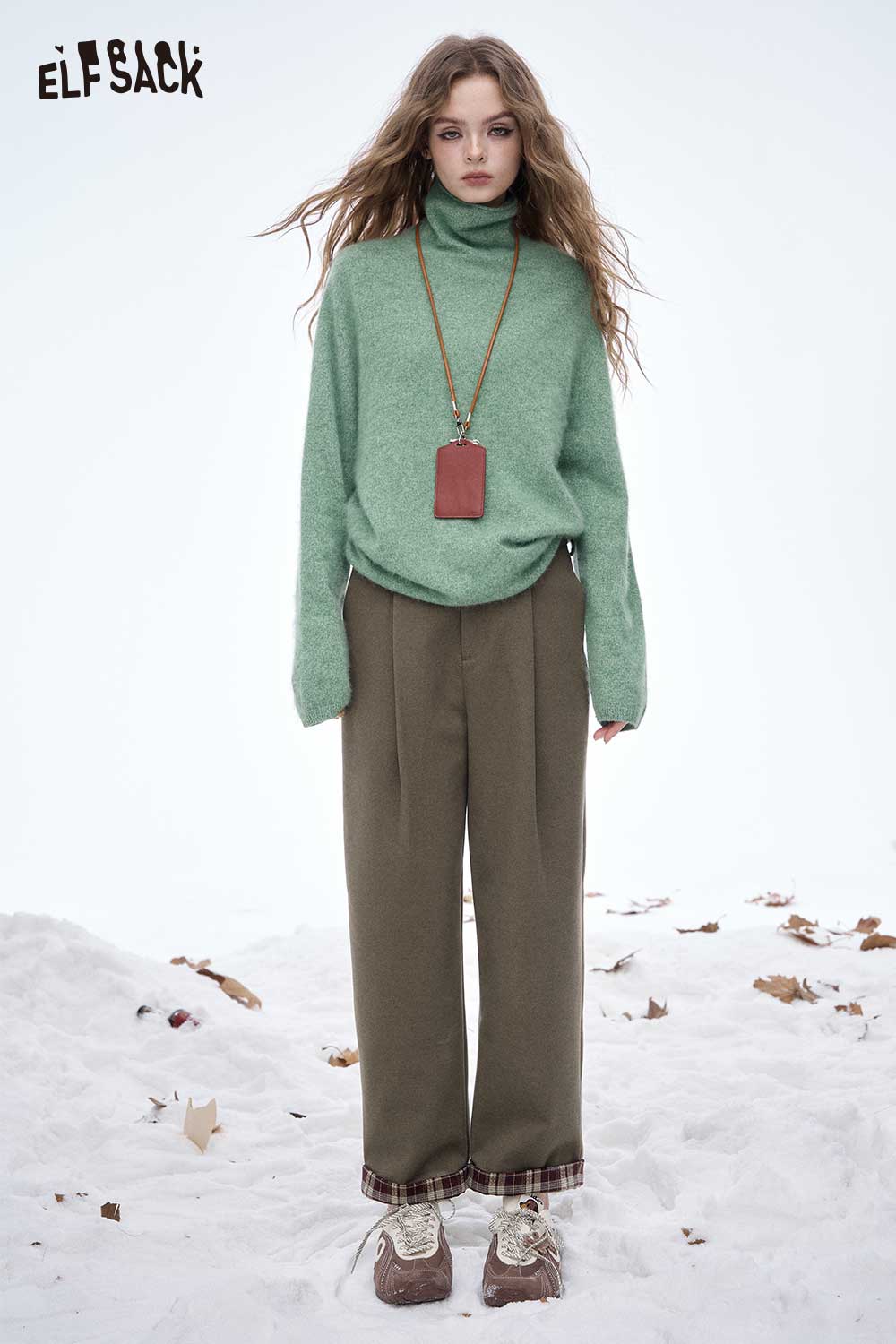 Soft Color Block Mock Layering and V-Neckline Knit Top