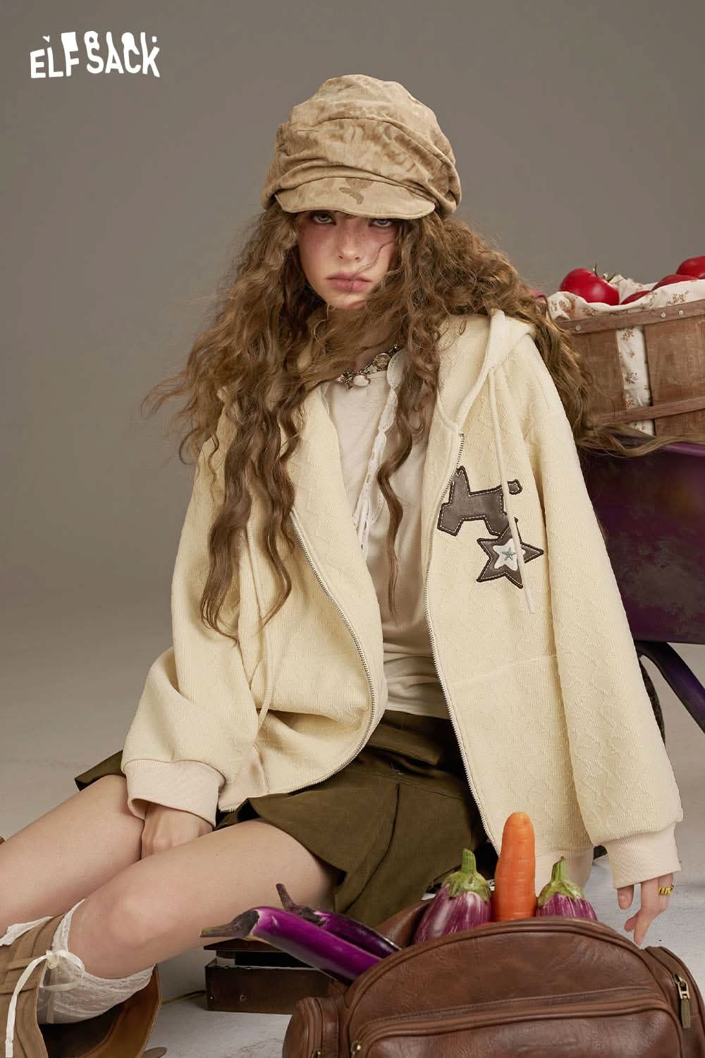 ELFSACK soft star hooded jacket for women paired with a floral skirt and cozy accessories