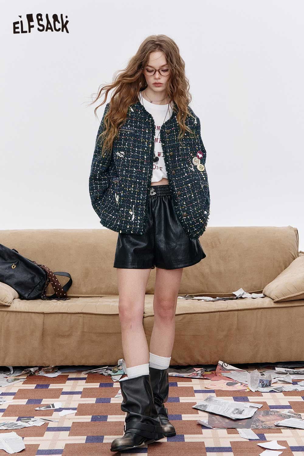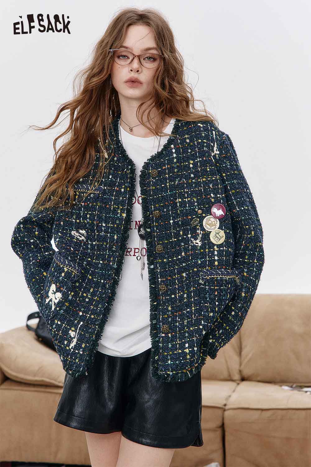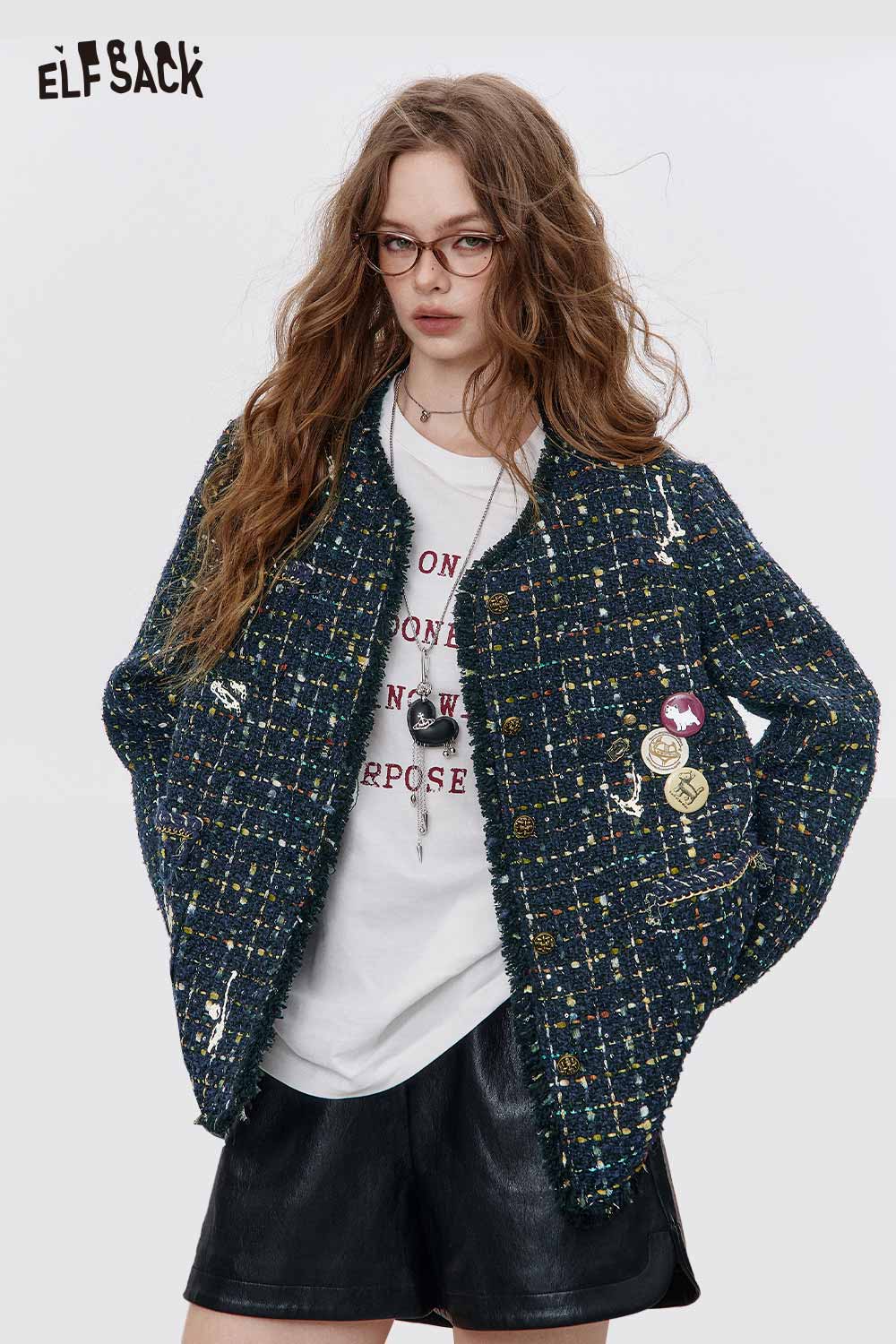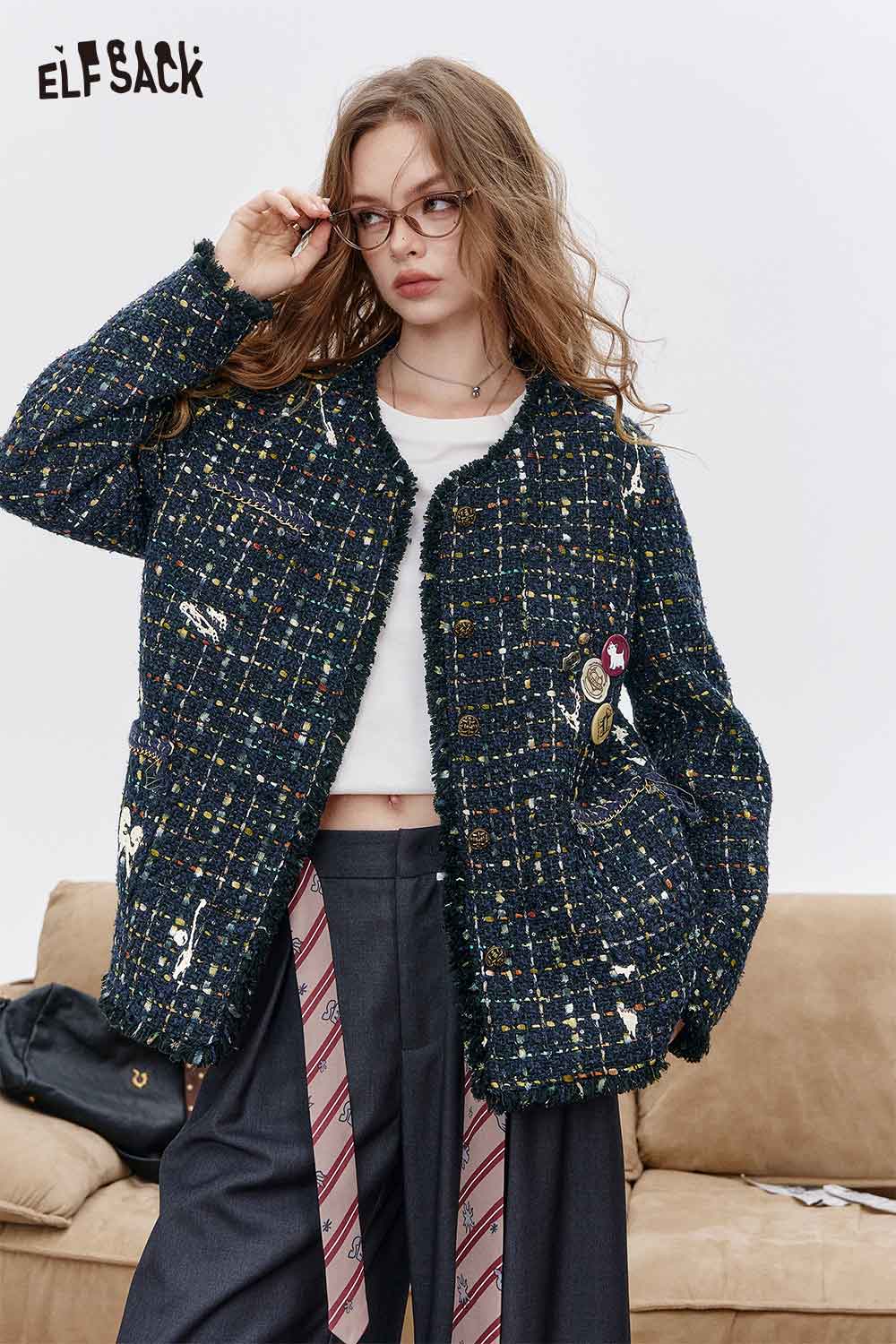 Wool Blend Tweed Structured Detachable Brooch Detail Outerwear Coat
