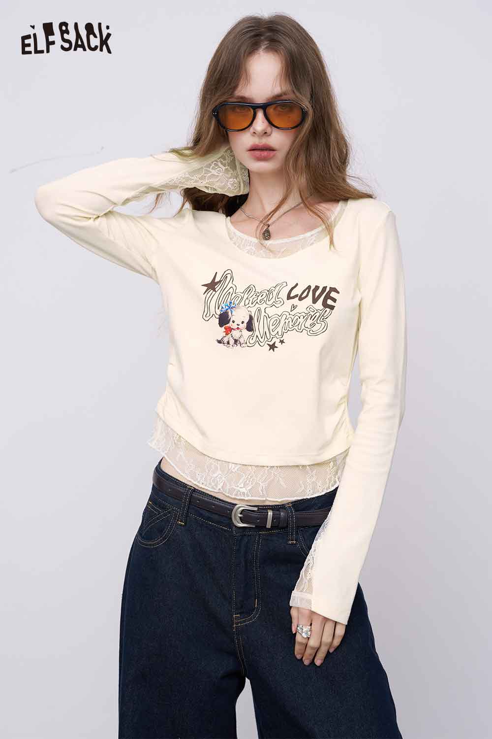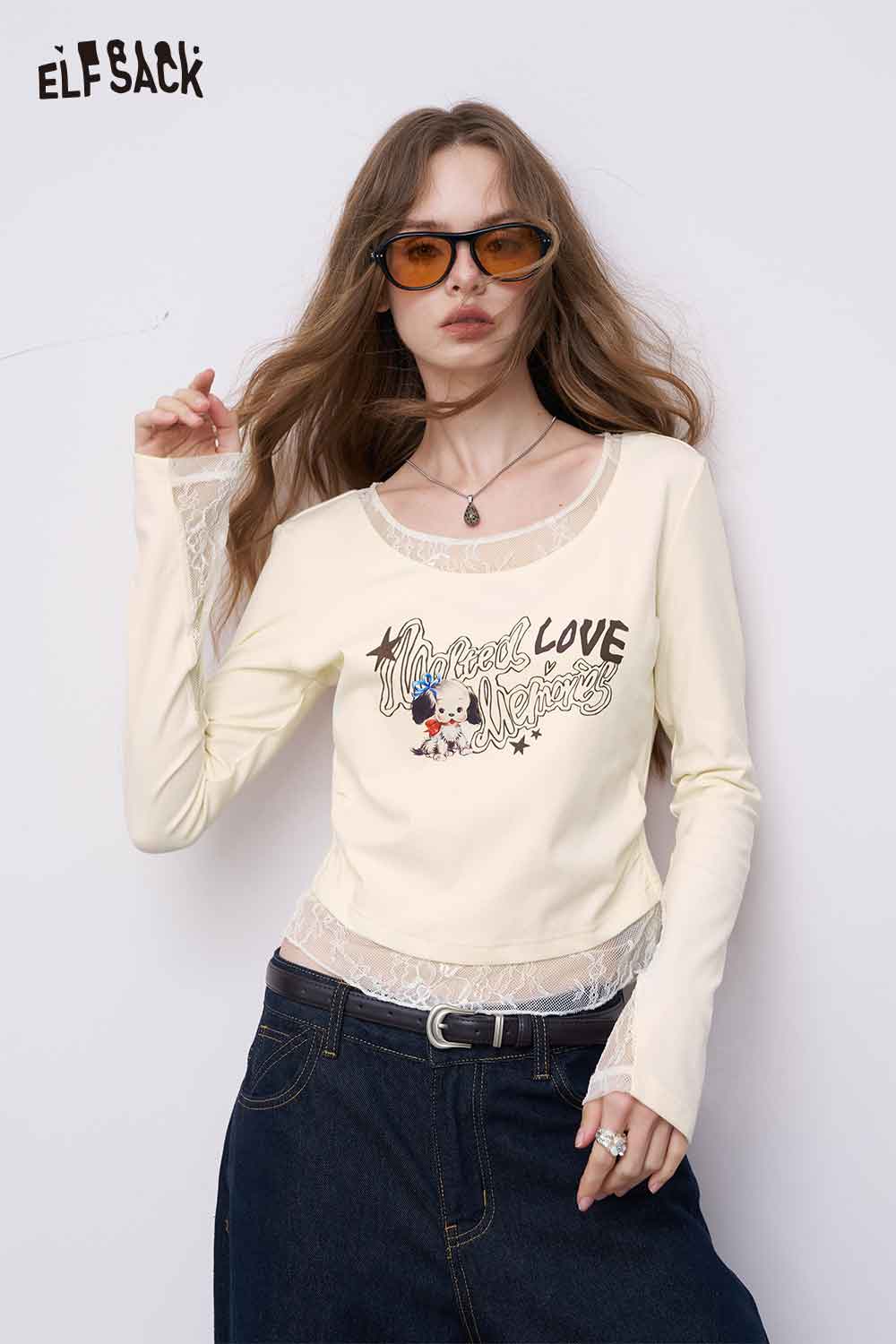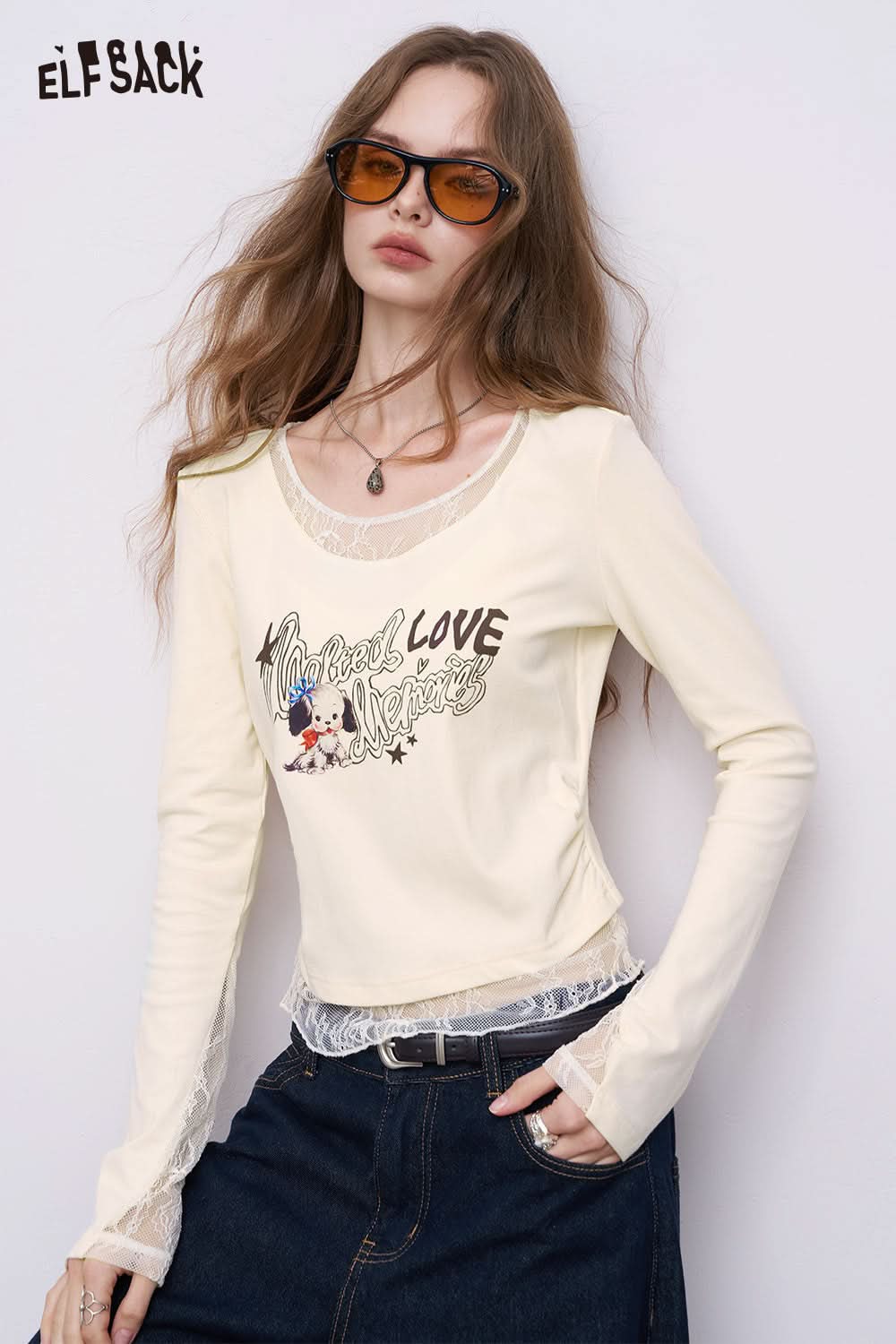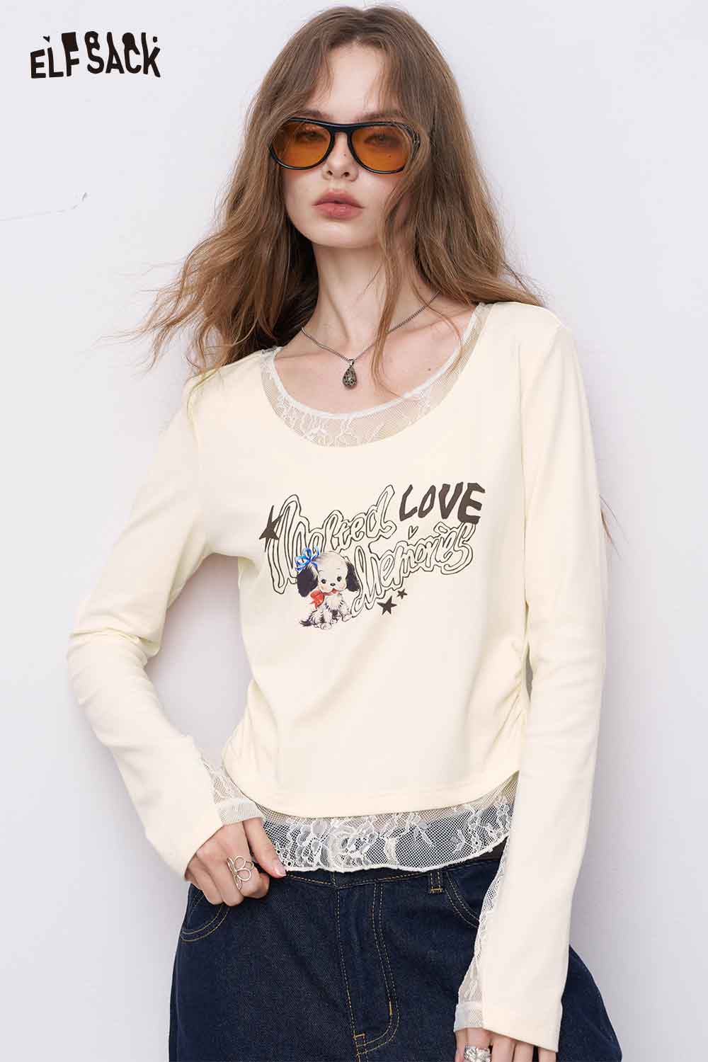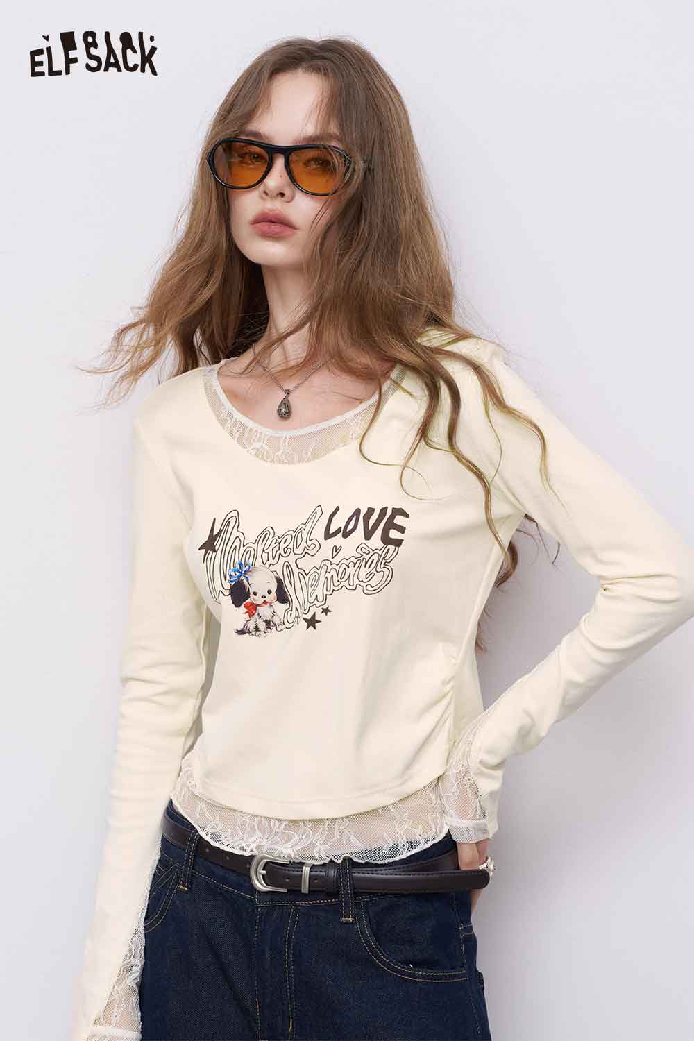 Cotton-Poplin Contoured Lace-Insert Tee