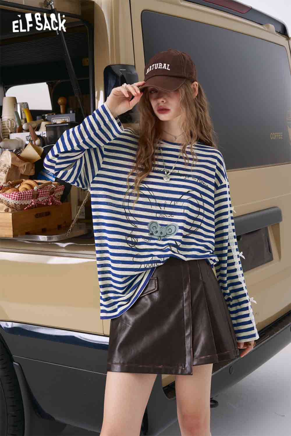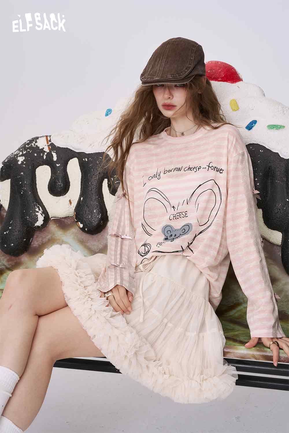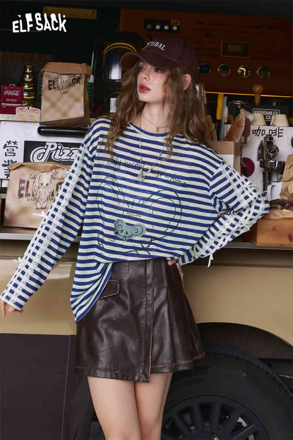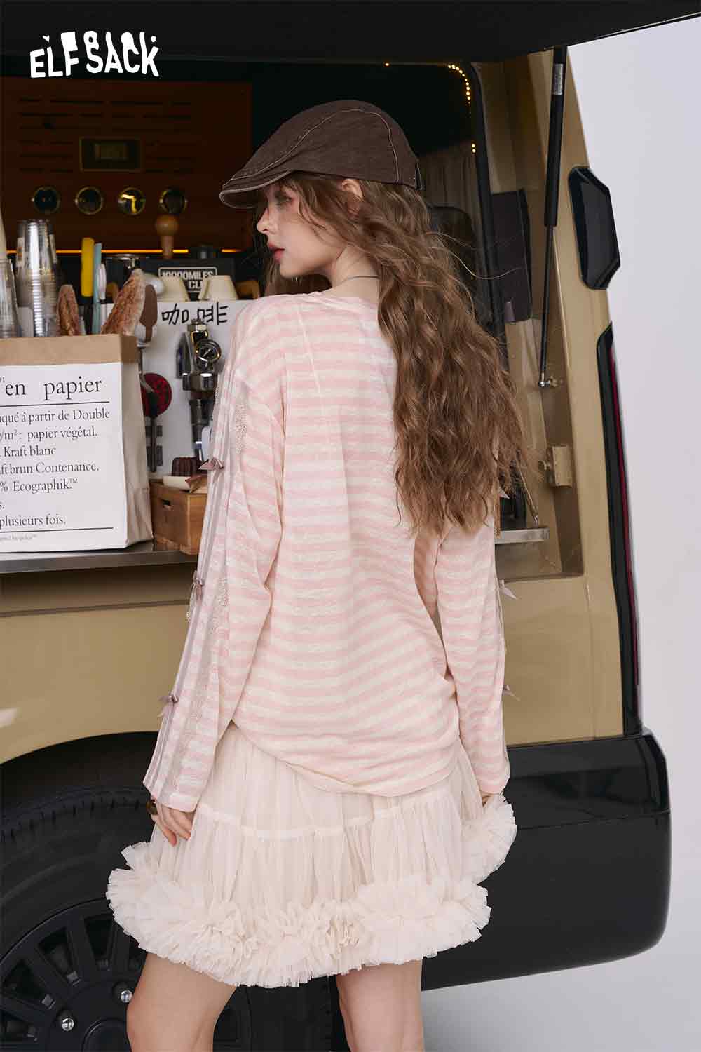 Lace Patchwork Striped Long Sleeve T-Shirt