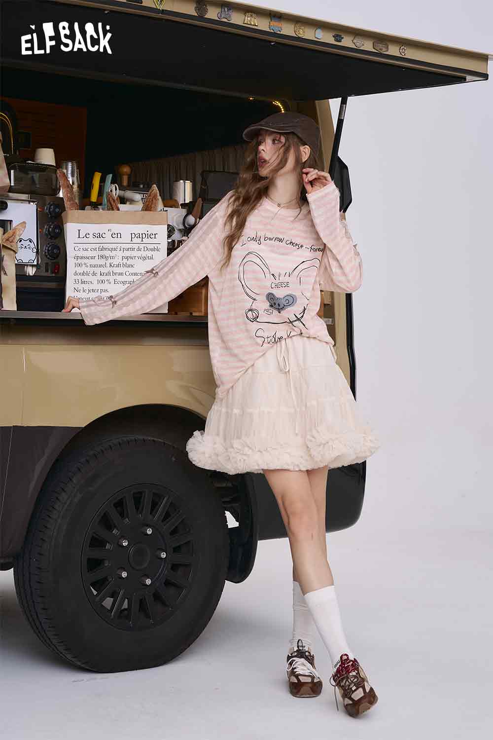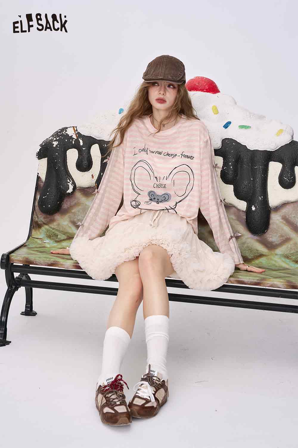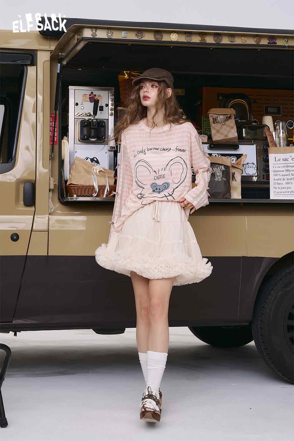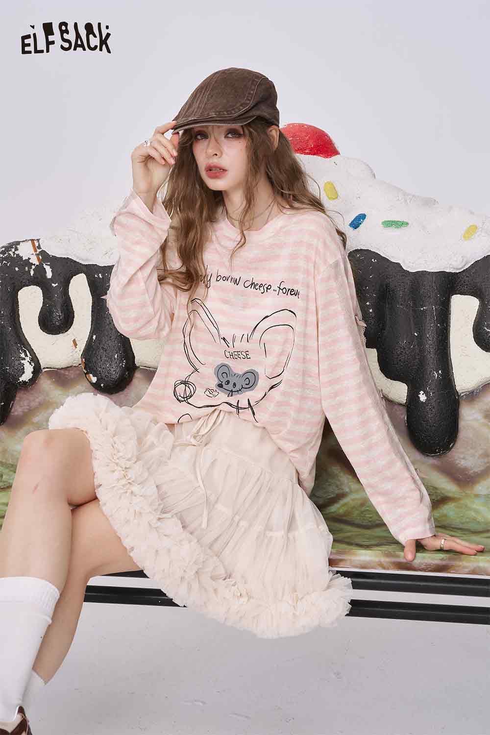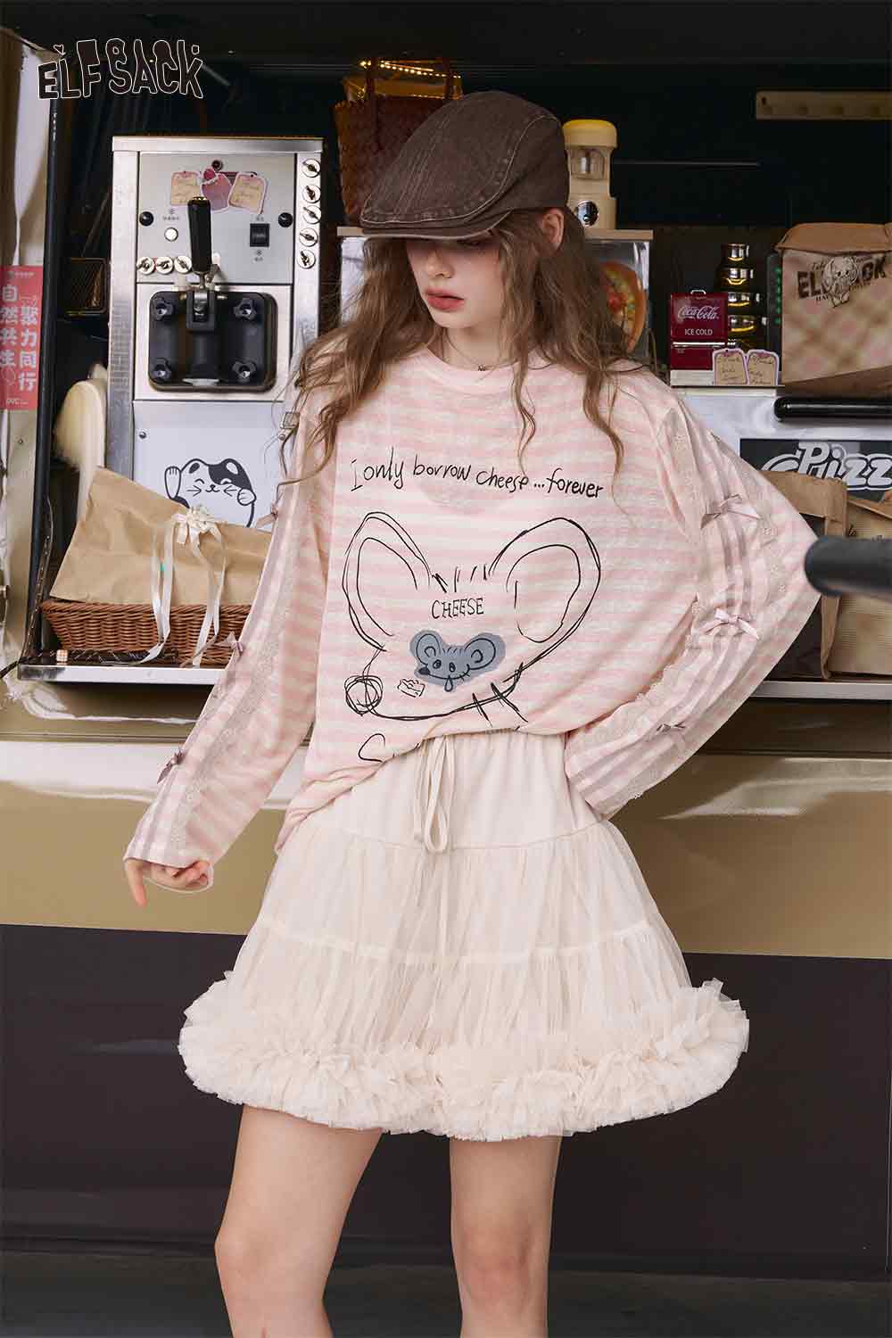 Lace Patchwork Striped Long Sleeve T-Shirt