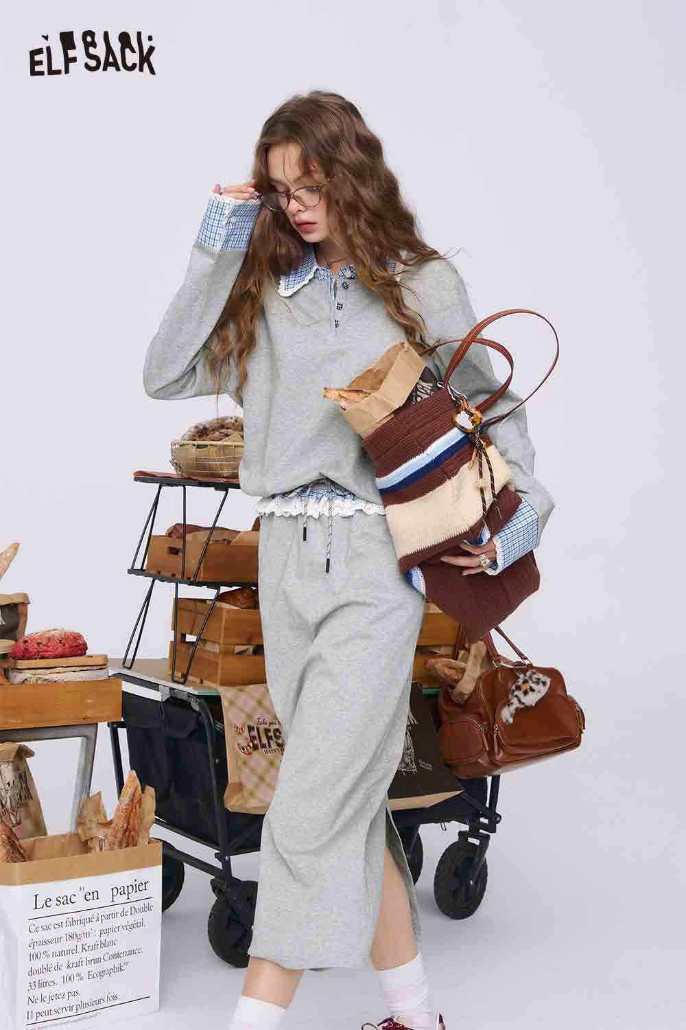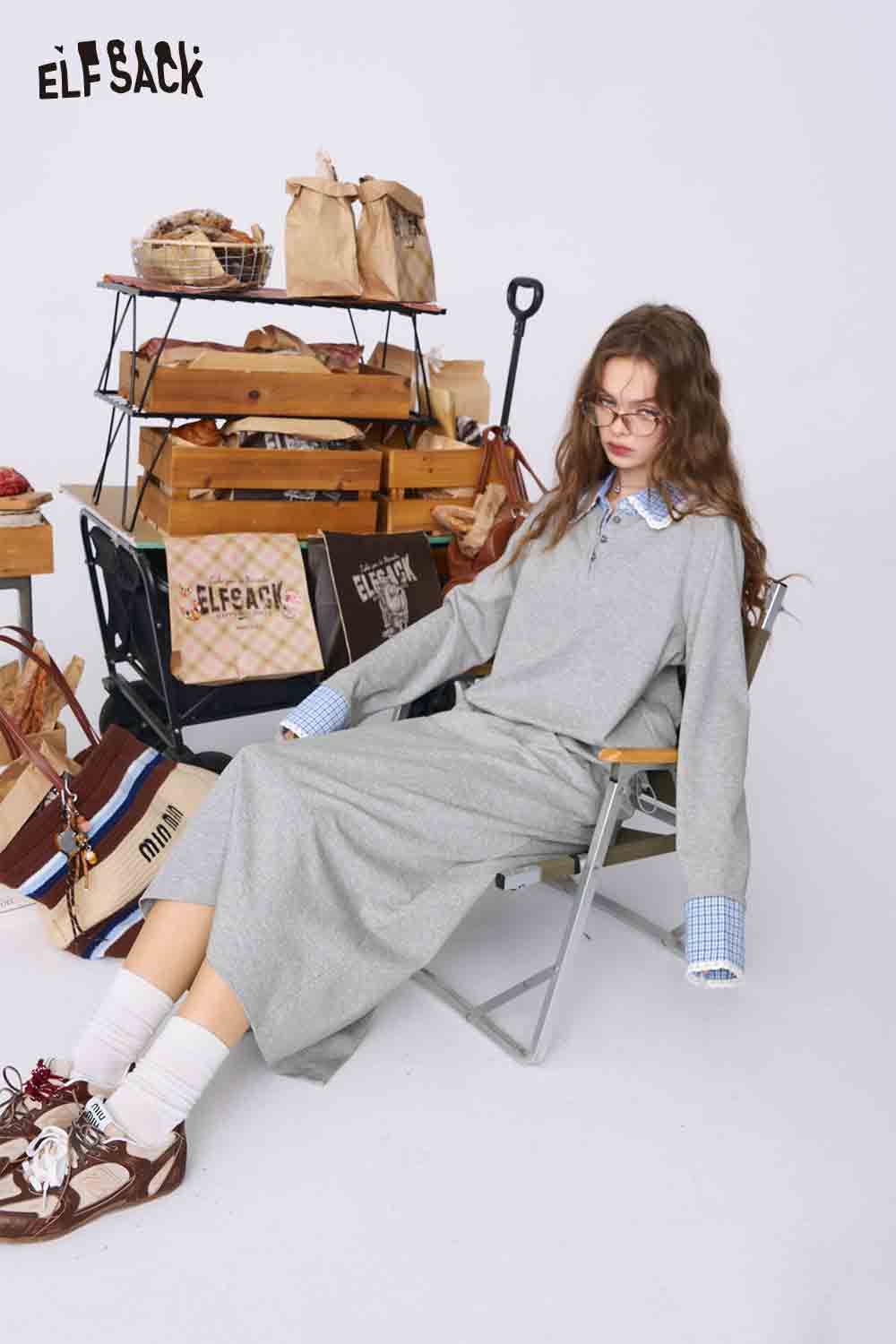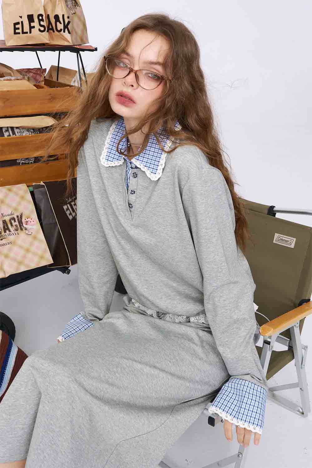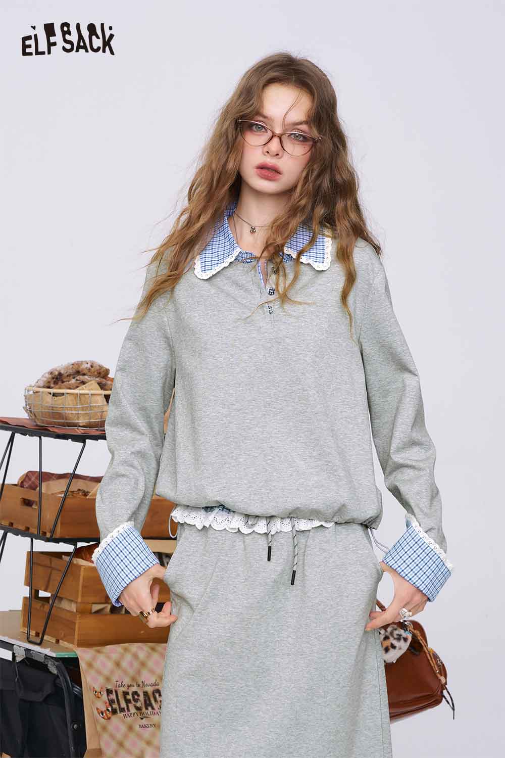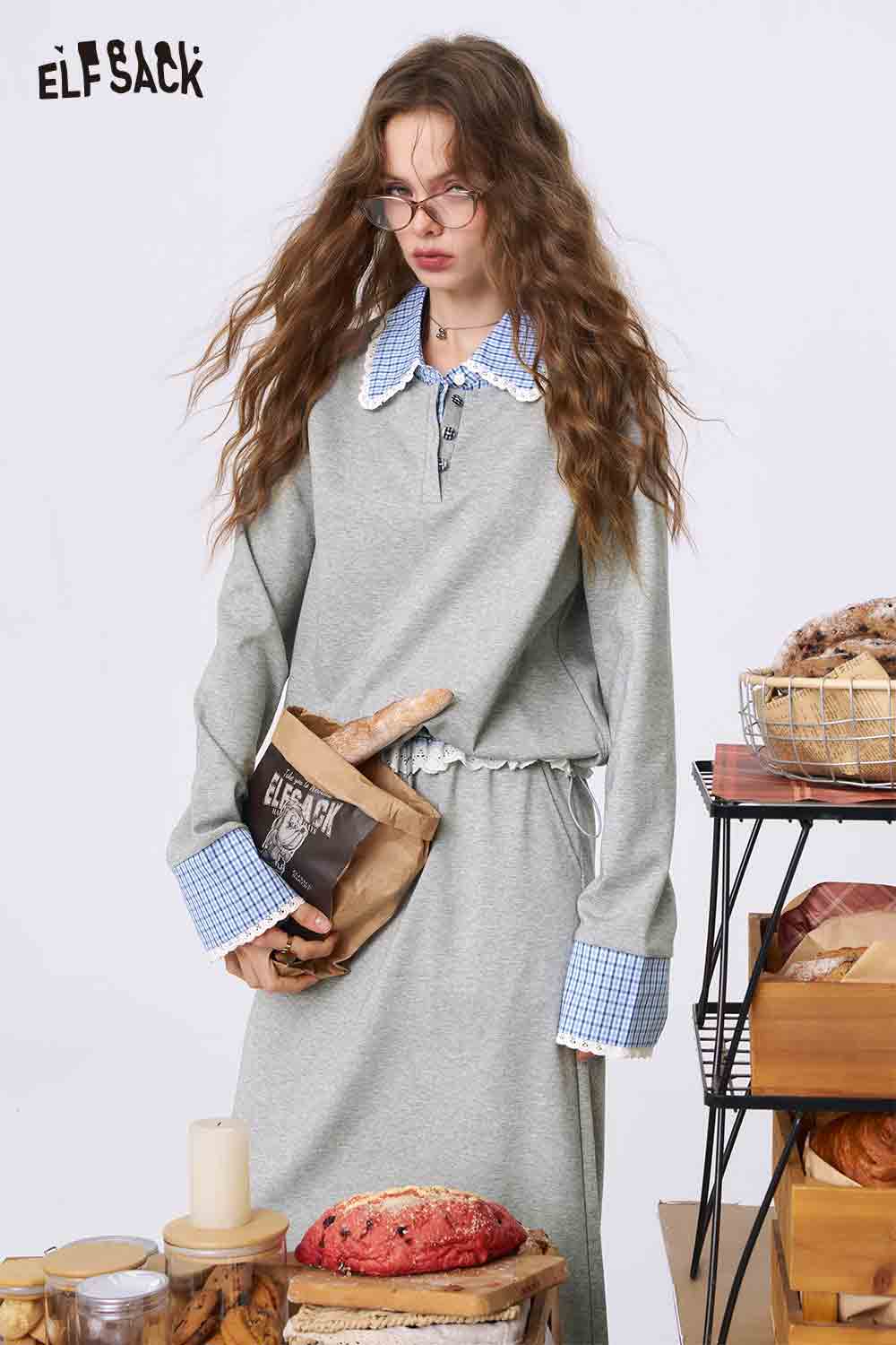 Gray Patchwork Hoodie & Skirt Set ¡§C Two-Piece Casual Outfit