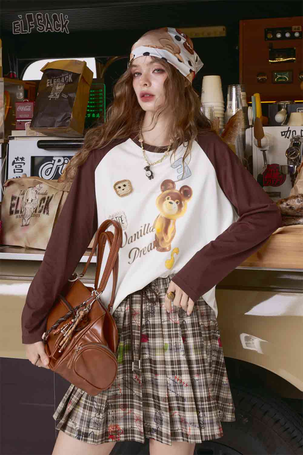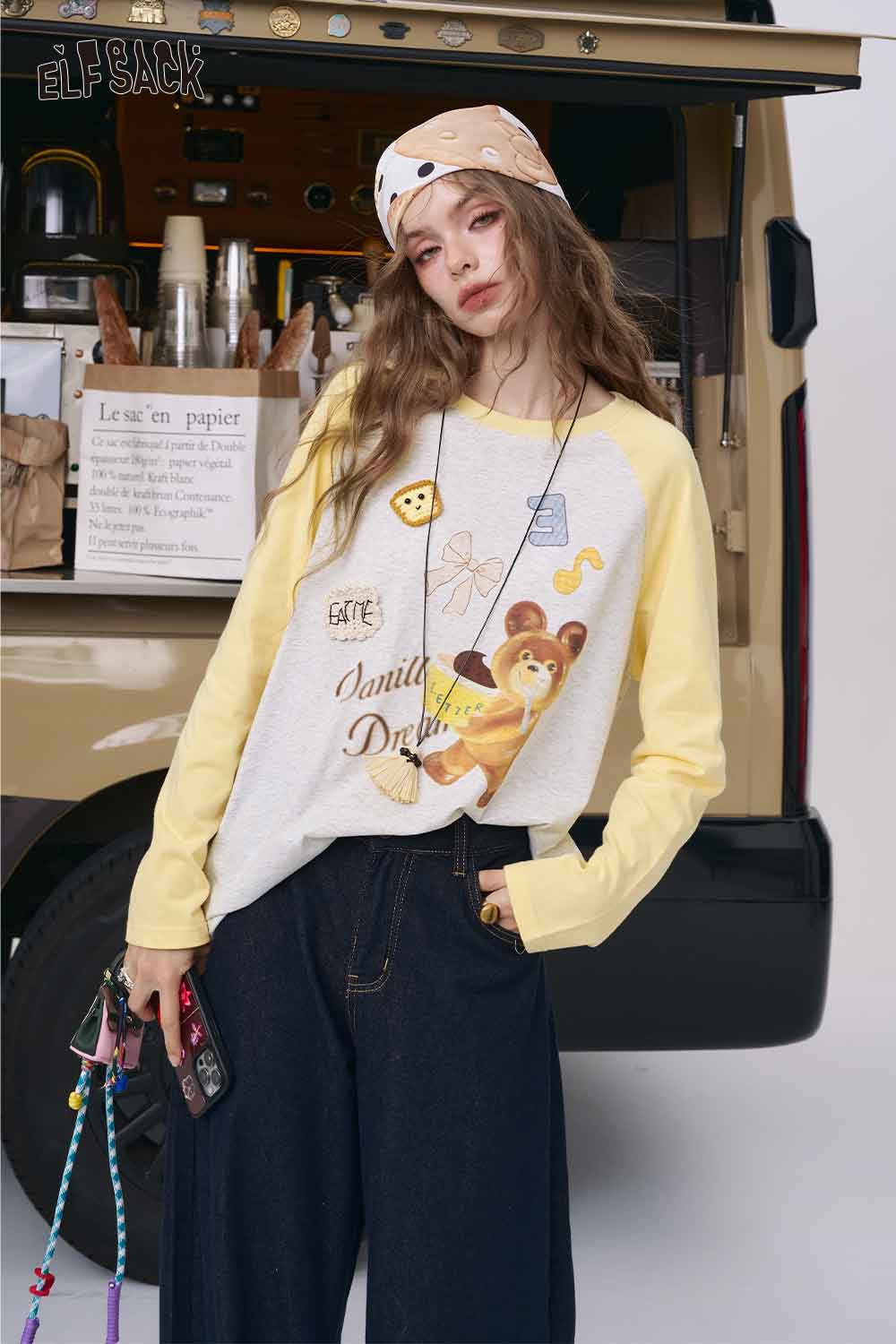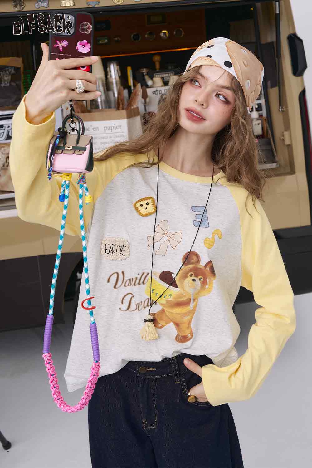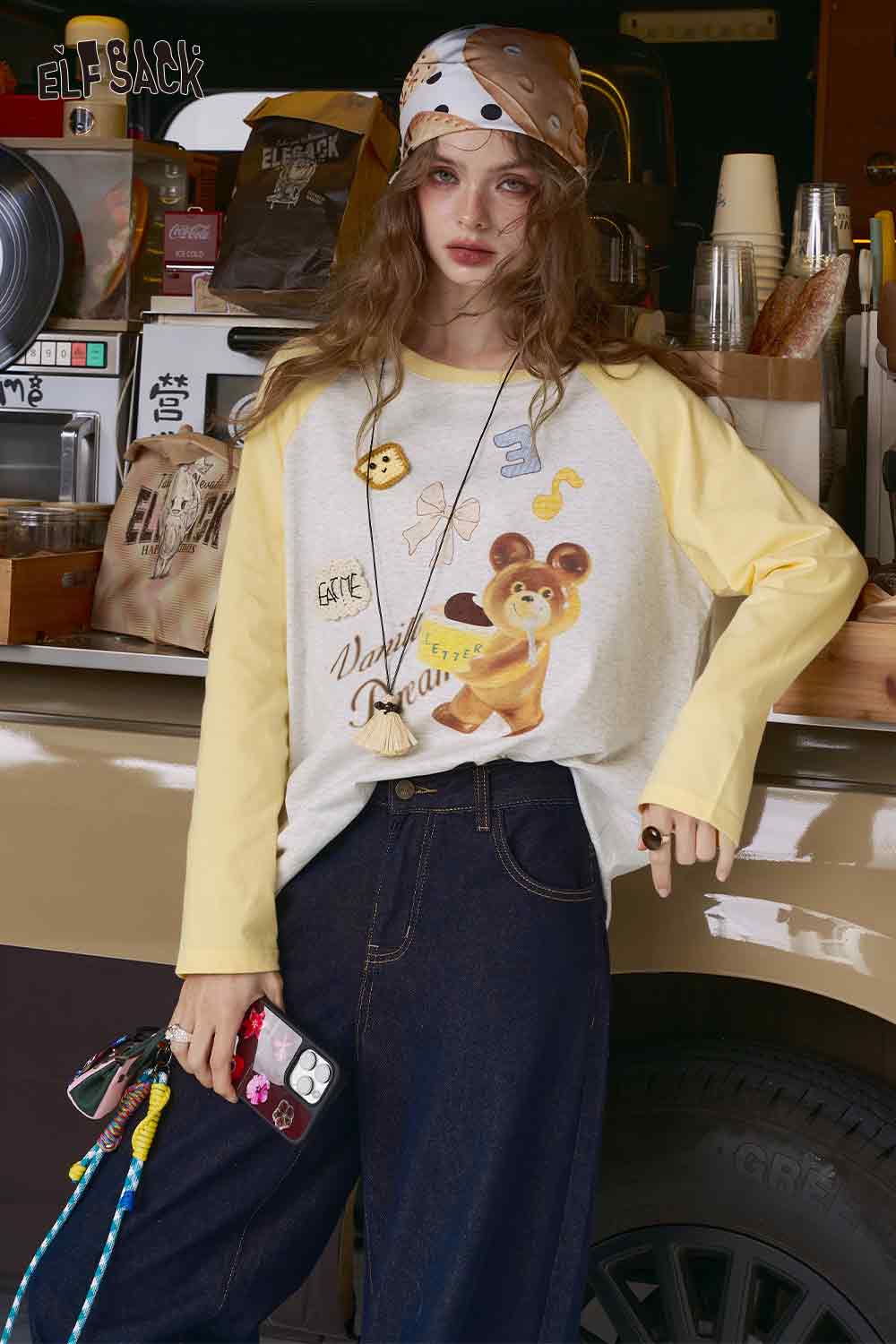 Bear Print Colorblock Raglan Sleeve T-Shirt