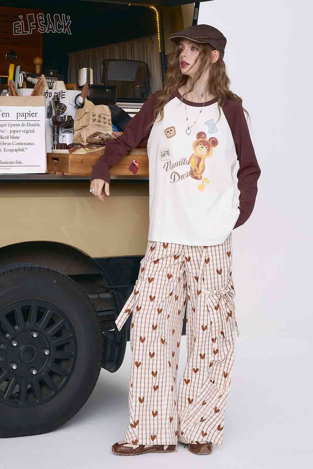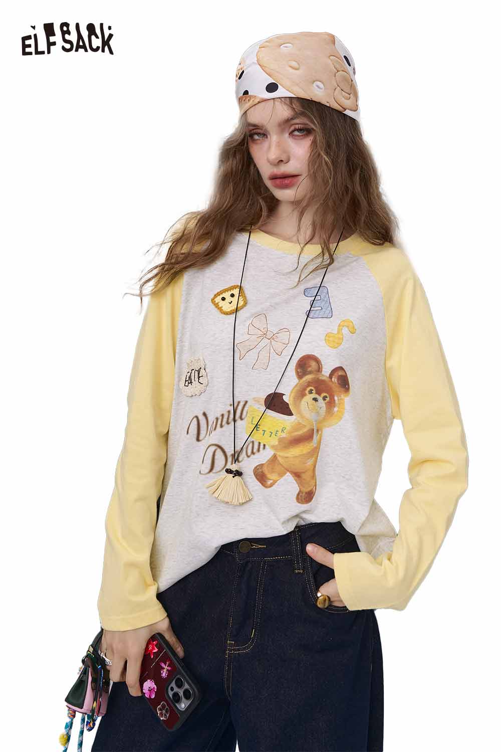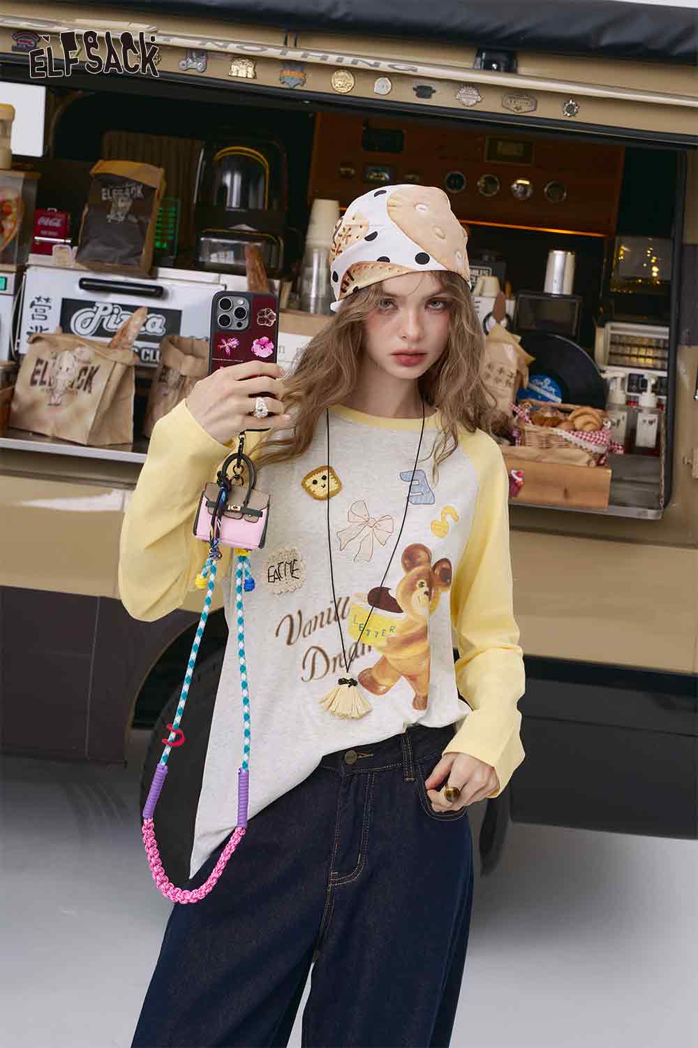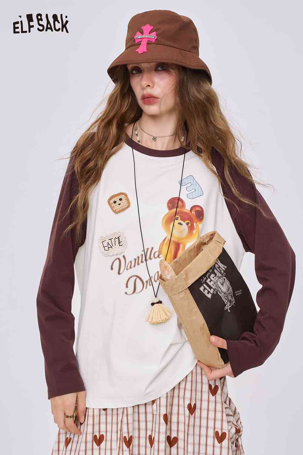 Bear Print Colorblock Raglan Sleeve T-Shirt