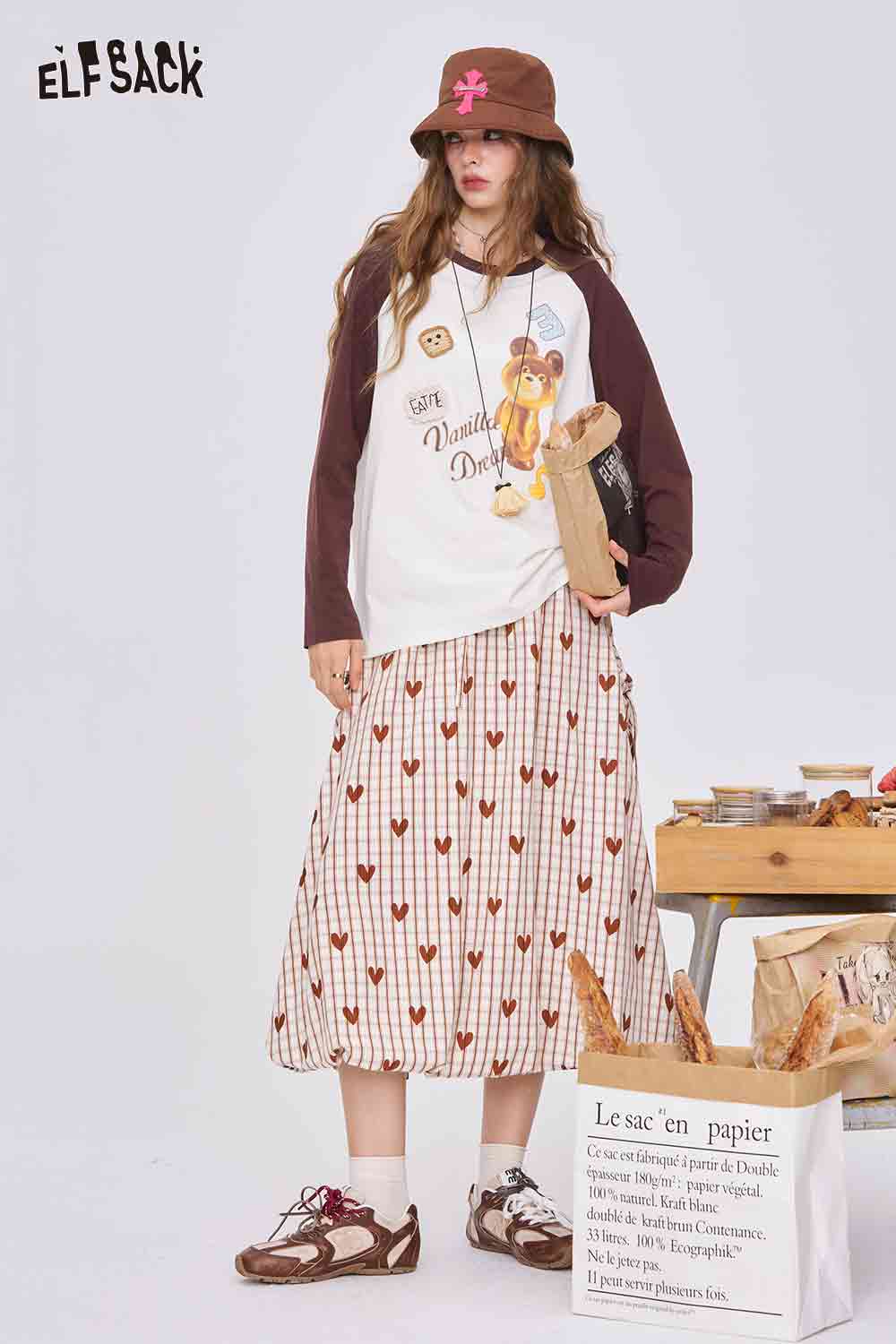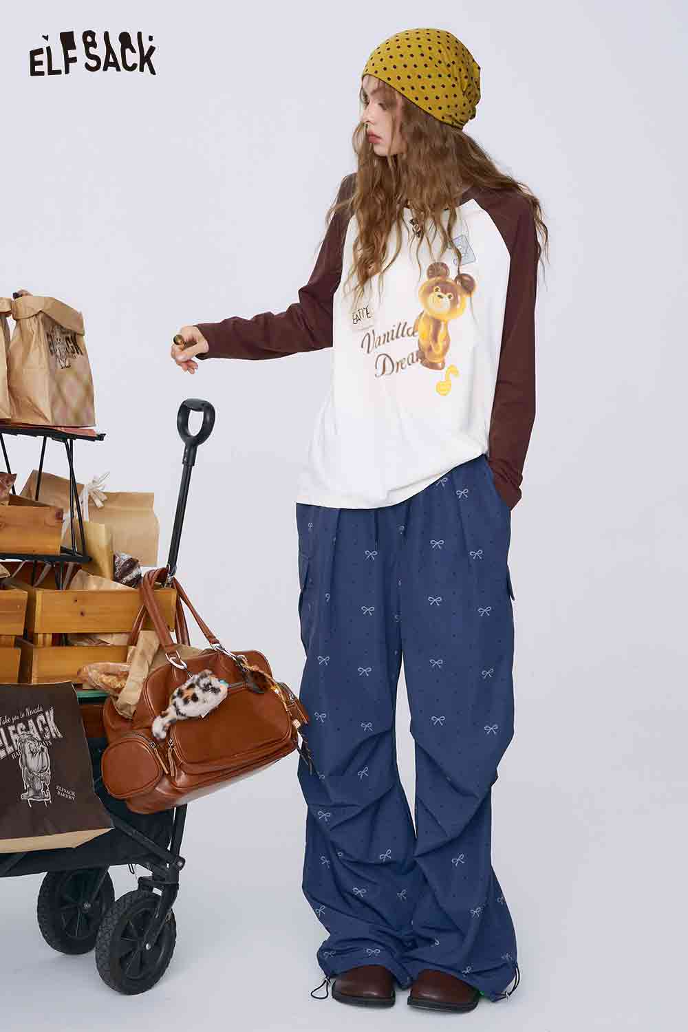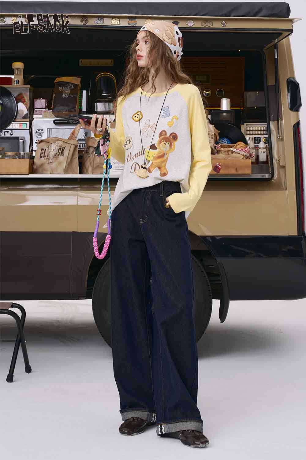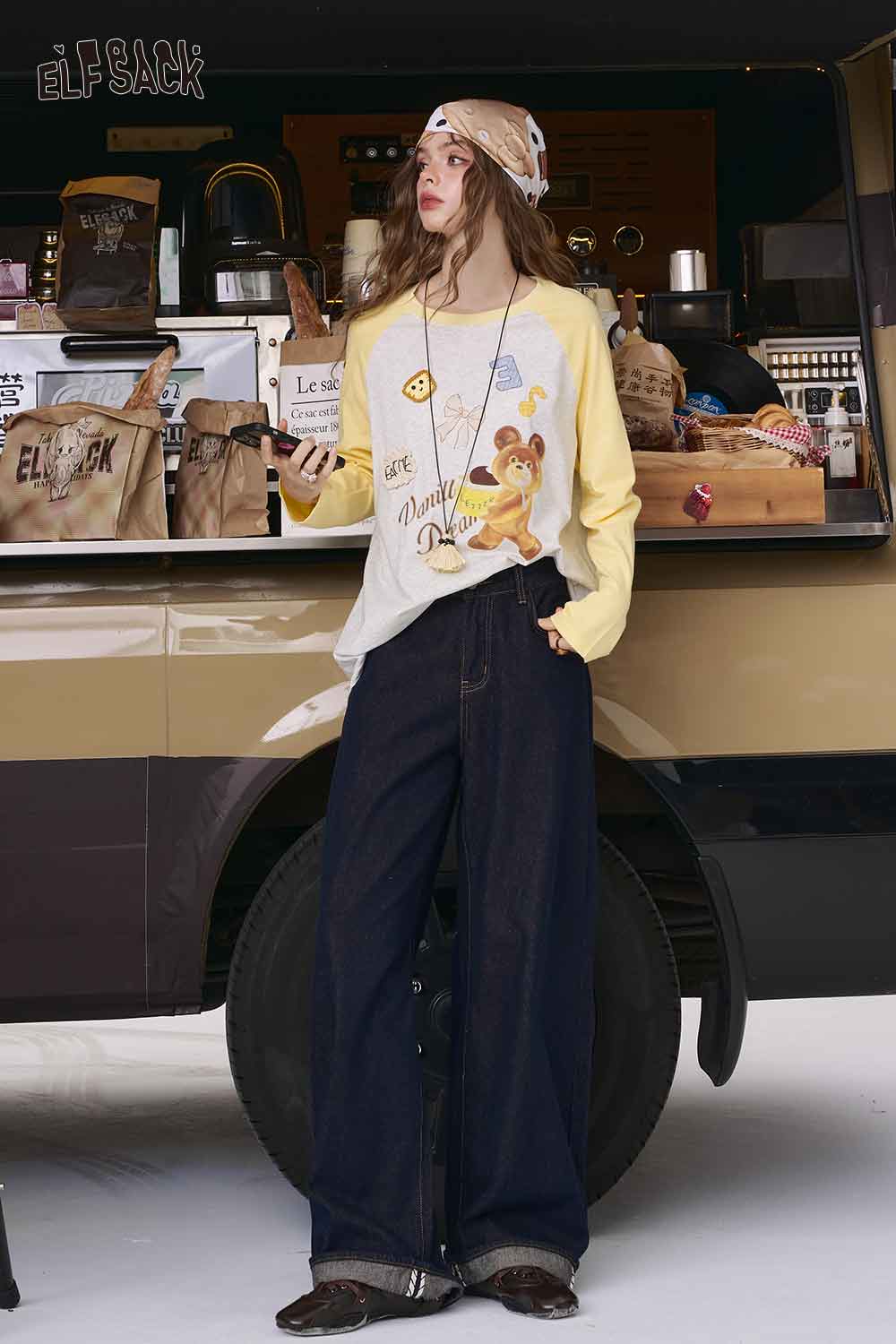 Bear Print Colorblock Raglan Sleeve T-Shirt