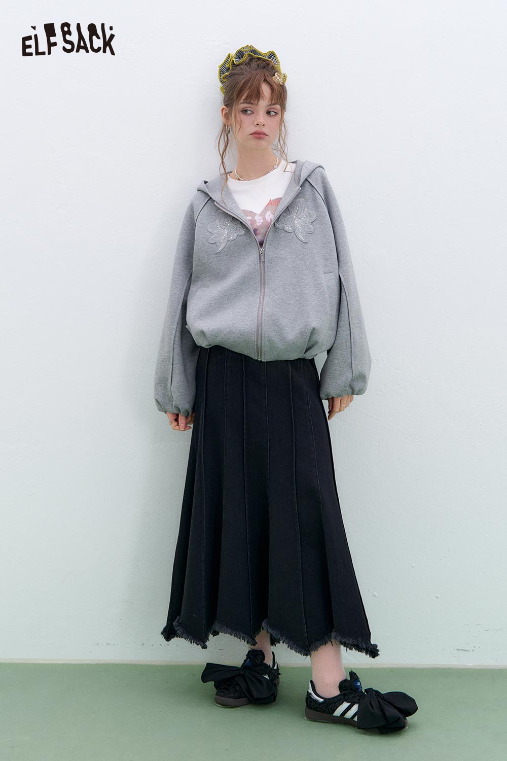 Soft Halloween Denim Raw Edge Asymmetric Hem Maxi Skirt