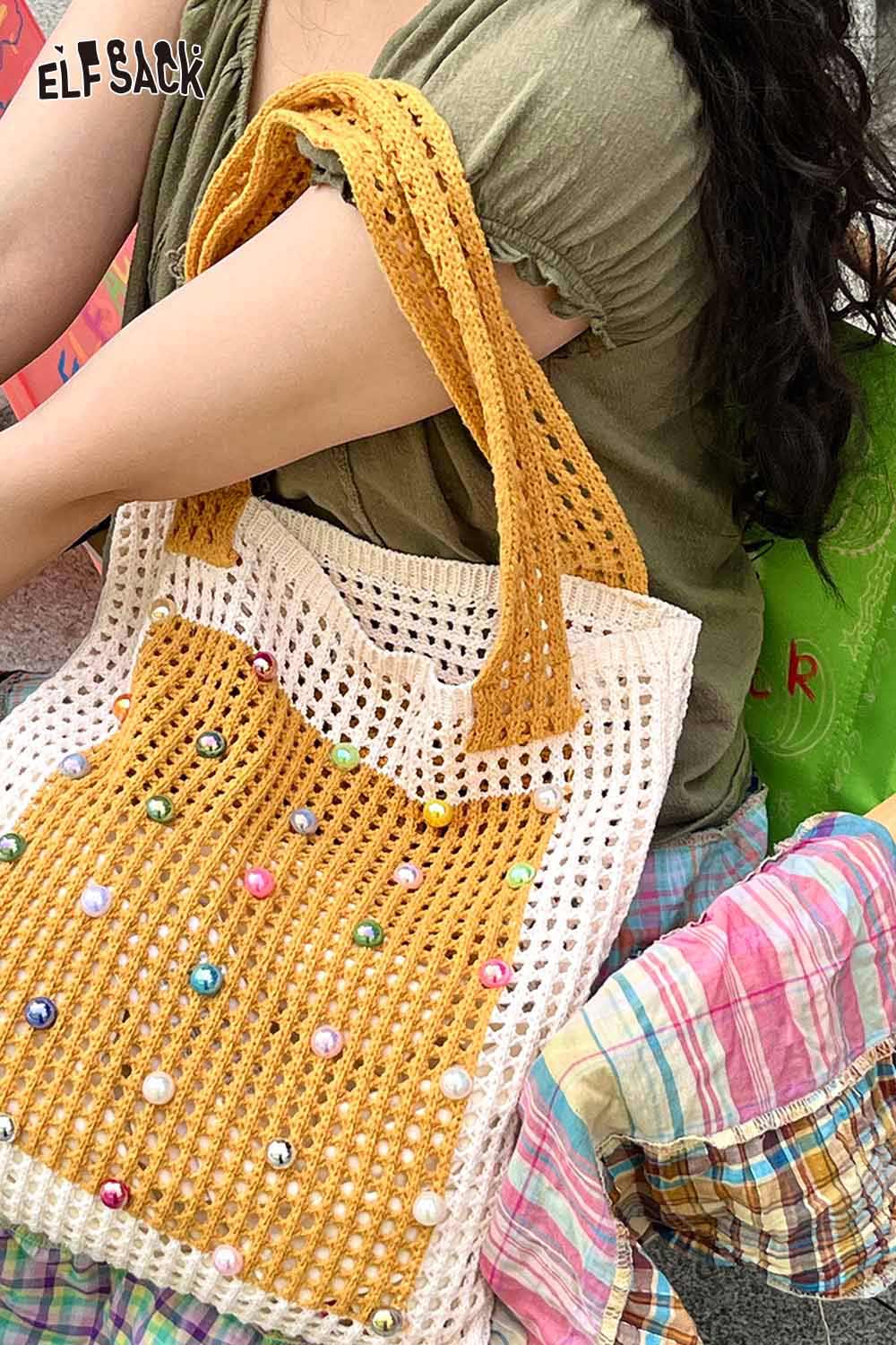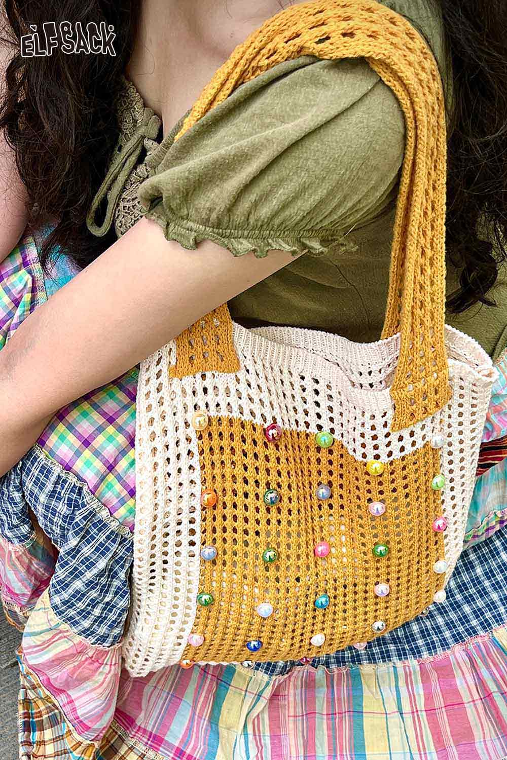 Woven Beaded Tote Bag