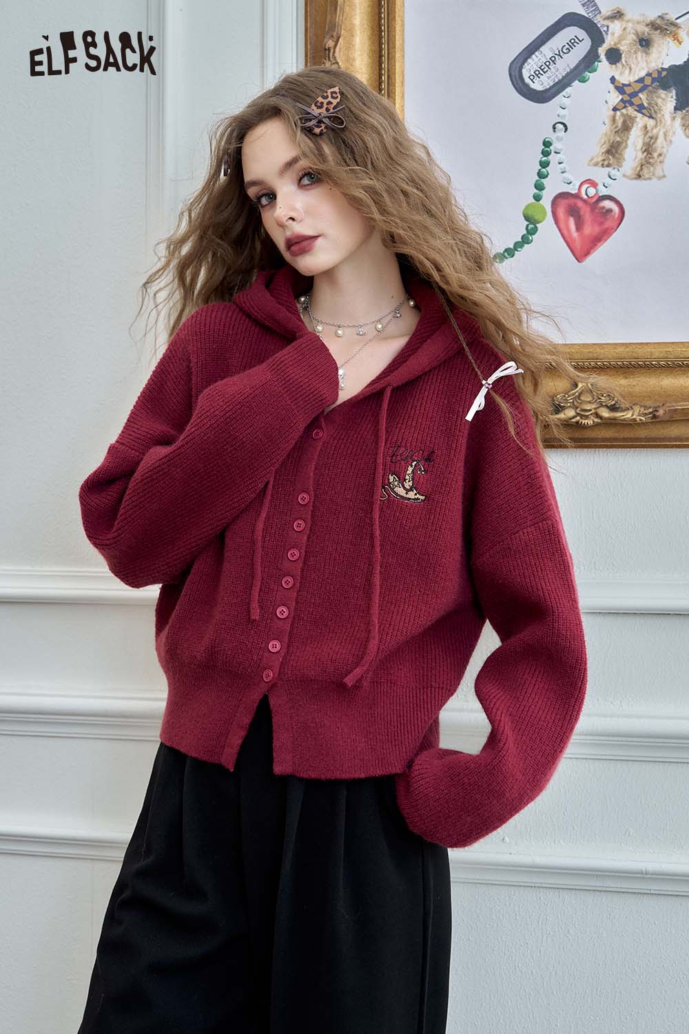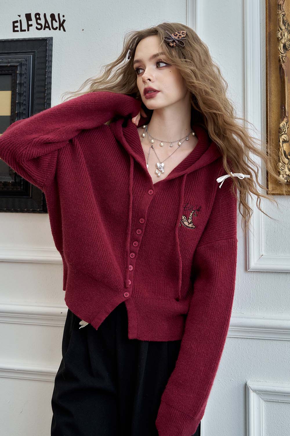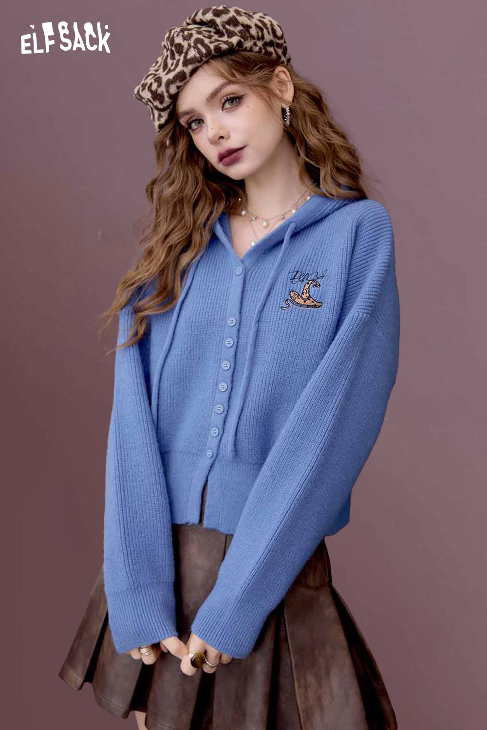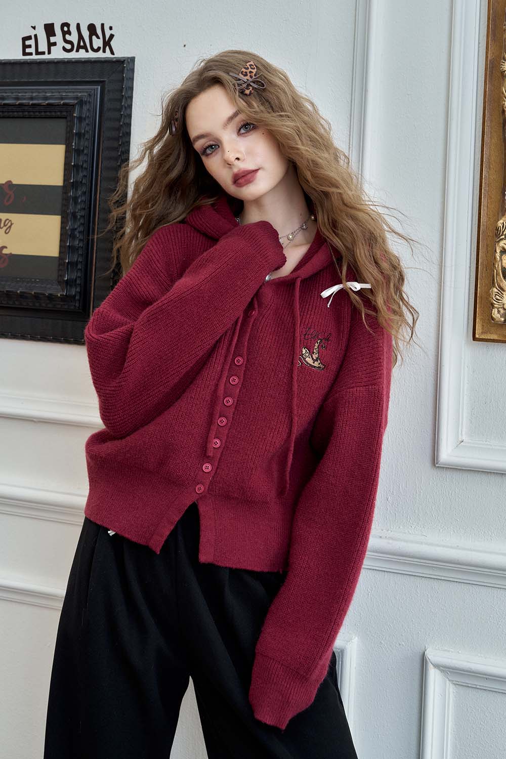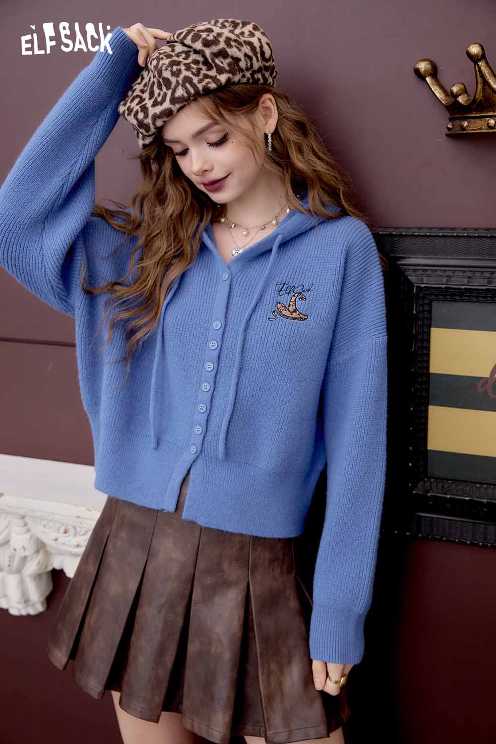 Preppy Soft Embroidery Cropped Hooded Knit Cardigan