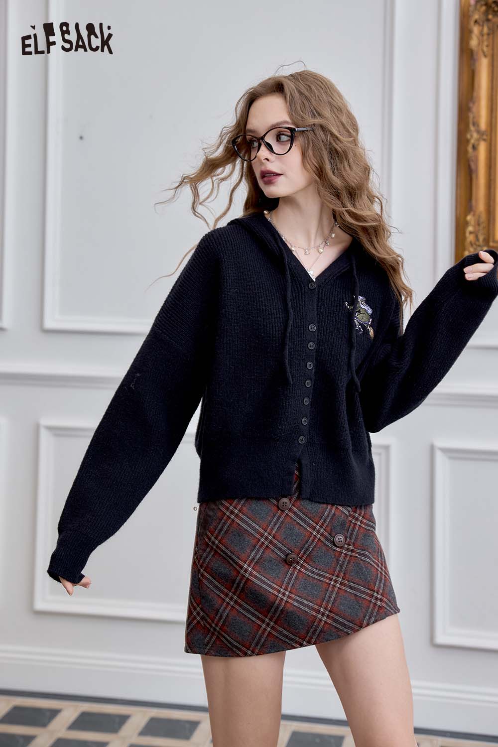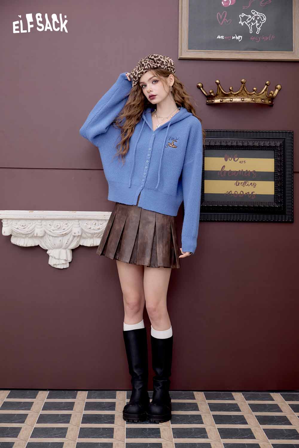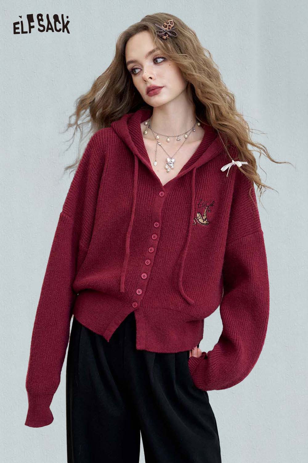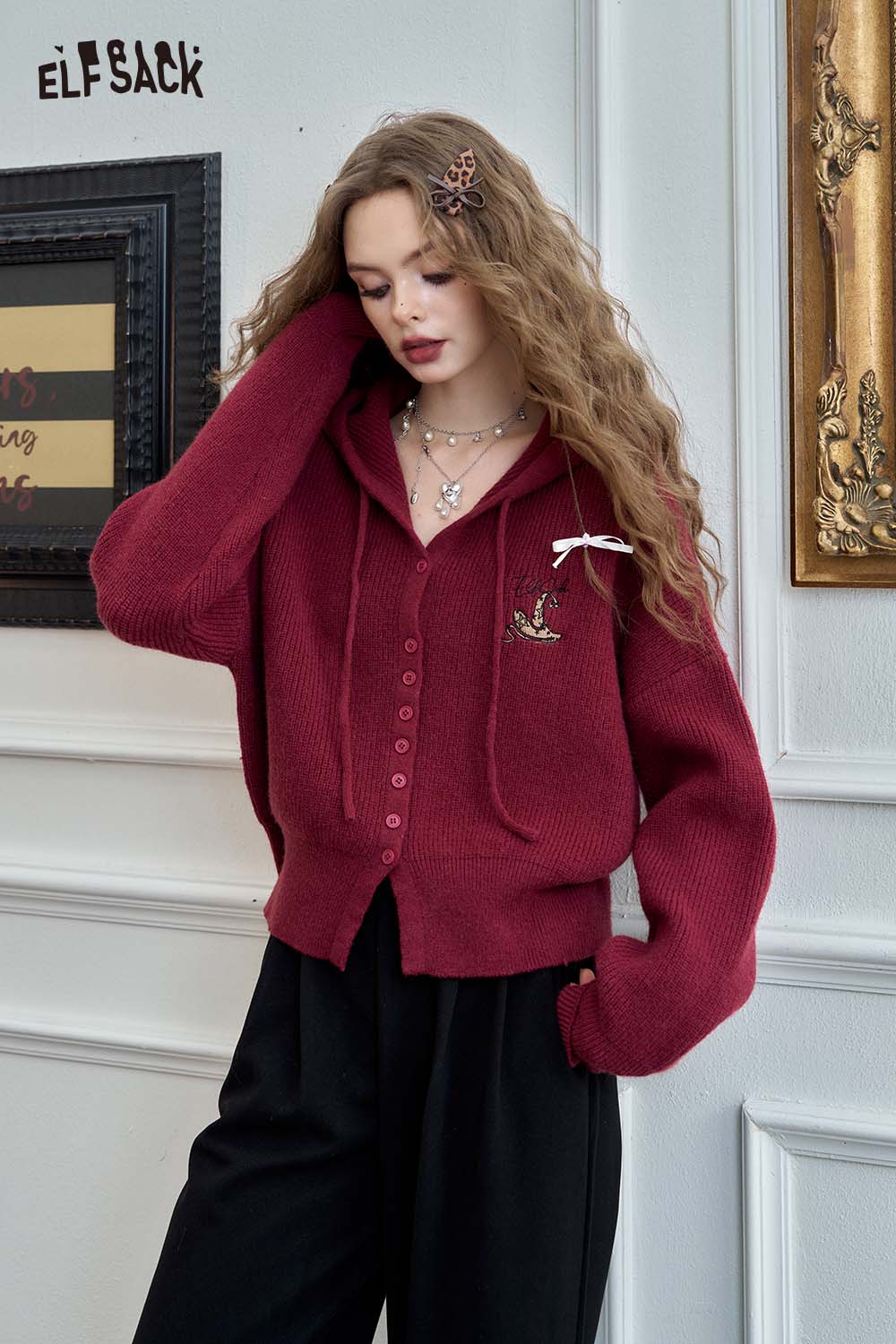 Preppy Soft Embroidery Cropped Hooded Knit Cardigan
